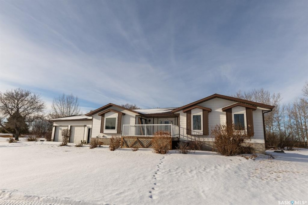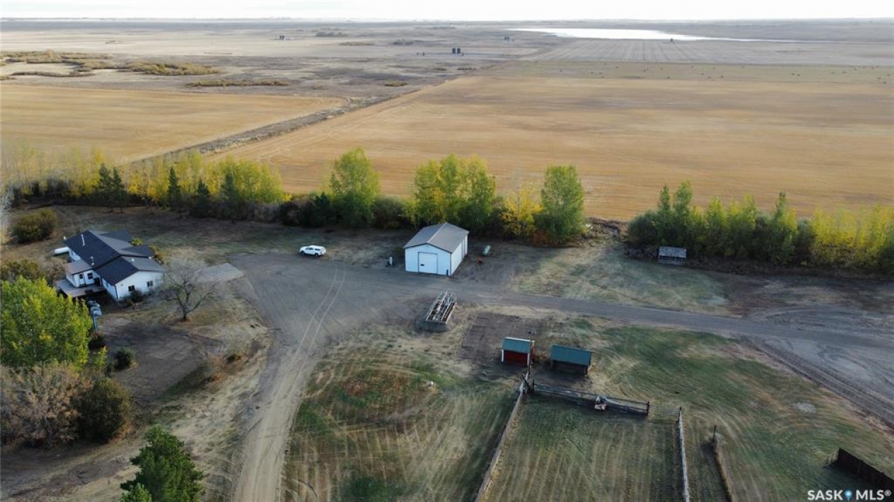 All offers to be received by 5:00 pm. Feb 17th, 2026. This well-developed 10-acre acreage offers a rare combination of comfortable family living and exceptional shop and storage space. The 1,800 sq. ft. home, built in 1995, features five bedrooms and multiple bathrooms, including a 3 piece ensuite, 2 piece bath, laundry at the entrance, a 4 piece main bath, and a 3 piece bath in the basement. The living room offers a propane gas fireplace, while the basement includes a wood-burning fireplace for added warmth and character. Outbuildings are a standout feature of this property. The 28' x 42' insulated shop is propane heated with a concrete floor, 12' x 14' automatic overhead door, and 225-amp service. A heated attached garage measuring 25' x 30' is wired with 40 amps. Additional structures include a 26' x 40' red barn with tin roof and siding, and a 50' x 100' steel Quonset with a 27' w x 16' h door, ideal for equipment and storage. The home is serviced with a 100-amp electrical panel. The yard site is beautifully treed, providing privacy and shelter. Water is supplied by a well (1968) with septic system. School bus service is currently available to Luseland, with prior service to Kerrobert according to the owner. Property taxes have not yet been assessed and are estimated at approximately $4,000 annually. Furnace, water heater a/c approx. 2022. Shingles on house approx. 2015. 2 watering bowls. 1000 gal propane tank at shop, 1000 propane tank at house (house one lasts 1/2-3/4 yr., according to owner), 500 gal propane tank at garage. Well was drilled in 1968, owner does not drink the water, had an RO system under sink, needed to be replaced and owner has moved so never replaced it. Septic tank is probably original (1995) according to the owner. Steve pumps out every fall. Liquids pump out to NE corner. No water issues here. Available for a quick possession A versatile acreage offering space, infrastructure, and a peaceful rural setting.