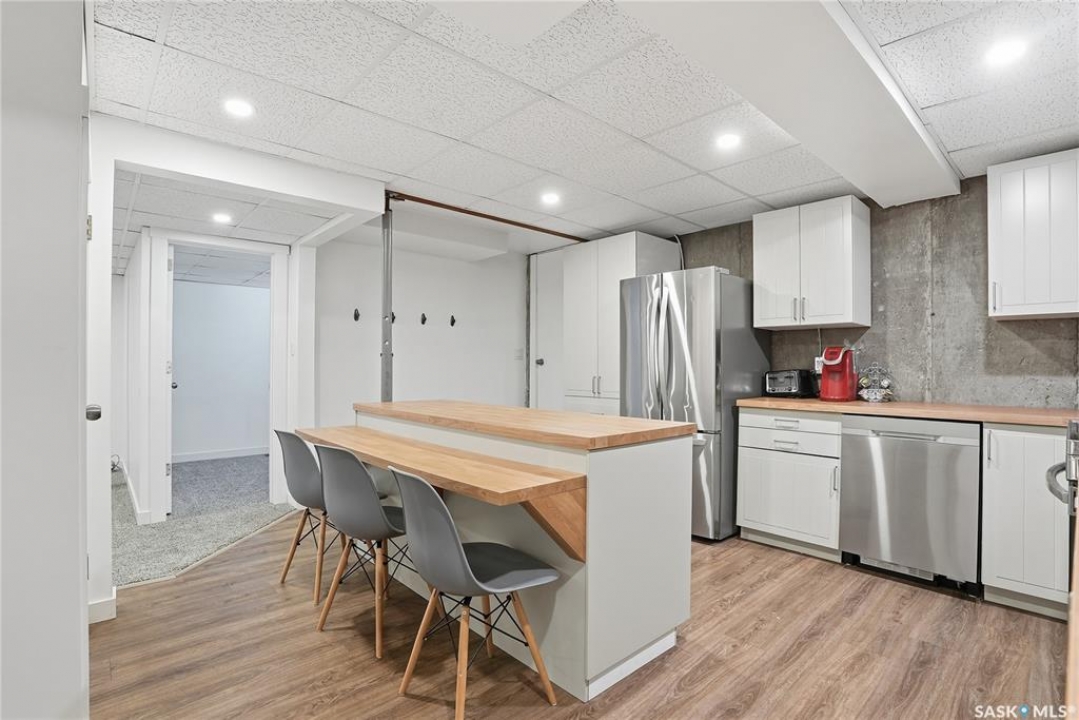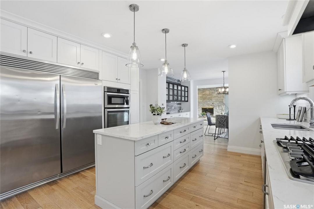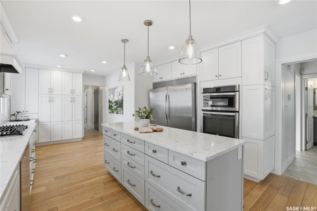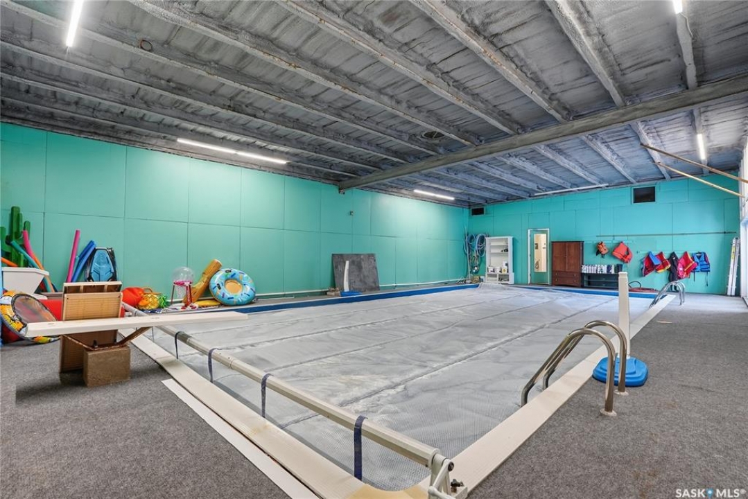 This is not a house you simply walk through. It's a house you experience. Tucked into the heart of Queen Elizabeth, this expansive two-storey redefines what “home” can be. At its core is something rarely found and impossible to forget: a spectacular 30' x 50' indoor pool retreat, complete with its own change room, equipment room, and a three-piece bath just steps away. Separately heated and vented, with doors that open directly to the mature backyard and hot tub, this space was designed for year-round entertaining. Think birthday parties, winter swims, summer nights that spill effortlessly outdoors, and tons of memories. Sunlight pours through oversized windows across the main floor, engineered hardwood and a living room anchored by a wood-burning fireplace. The kitchen is soo spacious and built for real cooking and real gatherings, featuring a gas range, oversized fridge and freezer, and an abundance of cabinetry and drawers that make clutter a non-issue. A main floor office with a nearby two-piece bath adds flexibility for work & guests. Upstairs, three spacious bedrooms provide a true family-level layout, with the primary suite featuring an ensuite with a soaker tub and tiled walk-in shower. A thoughtfully designed room outfitted with a full wall organizer for clothing and a vanity with sink ideal as a dressing room or glam space. Laundry is thoughtfully placed on the second level along with a full bathroom. The basement has been completely renovated into a modern one-bedroom plus den suite with a separate entrance. Behind the scenes, the home is equally impressive: four furnaces (two recently replaced), a new oversized water heater, updated garage door, and most windows replaced. Set on a huge, mature lot (85 foot frontage!) with a single attached garage & single detached garage, this is a home that refuses to fit into a standard category. It's part family haven, part entertainer's dream, part private wellness retreat. Homes like this don't come along often!