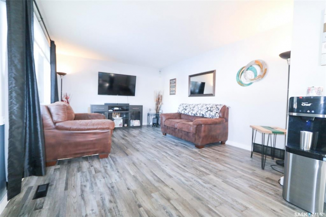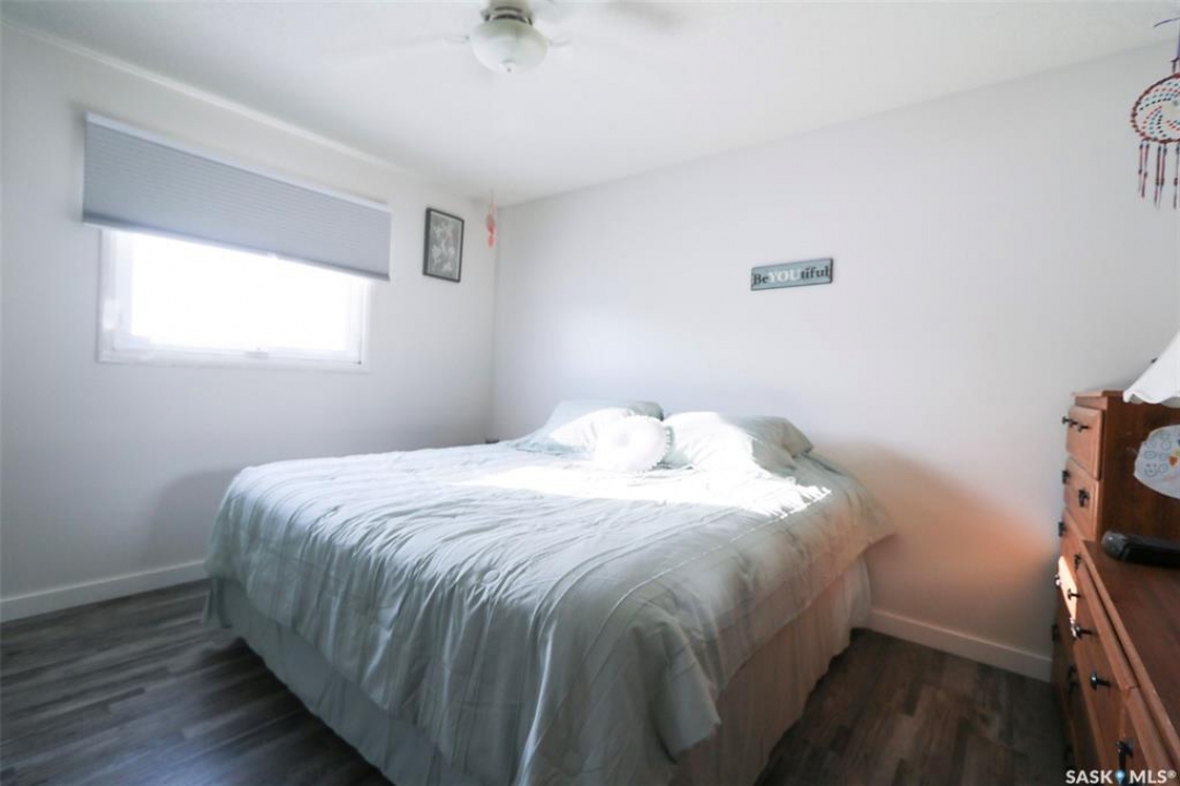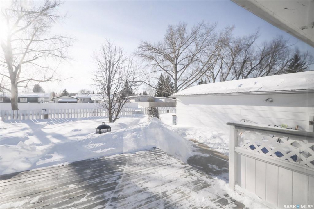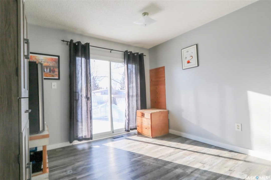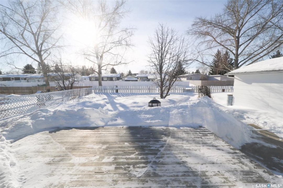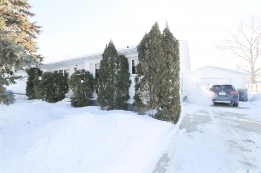 91 Collacott Drive is tucked away on a quiet crescent just down the street from Suncrest College's Trades & Tech Campus, offering a peaceful setting with exceptional walkability. A green space park sits directly across the street for the kids, while another green space with a walking path borders the west side and rear of the property. Enjoy the paved trail system that connects you straight into downtown Yorkton. This well-maintained home features an open and inviting floor plan. Originally a 3-bedroom layout upstairs, it has been thoughtfully reconfigured to a 2-bedroom plus den, creating a bright, sunny space that flows directly out to the deck and backyard—perfect for morning coffee or keeping an eye on the kids. The kitchen offers ample cabinetry, a convenient serving bar for family gatherings, and a large pantry, making it both functional and social. The living room provides a comfortable space to unwind after a long day. The primary bedroom easily accommodates a king-size bed. Downstairs, the fully developed basement includes a spacious rec room, a massive bedroom, a 3-piece bathroom, and plenty of storage. There is also the option to add an additional bedroom if needed. Outside, the yard is private and mature, featuring an older fence and an apple tree. The good-sized garage offers excellent parking and storage. Updates include Shingles 2022, furnace 2008, water heater 2001, windows, and basement bathroom. A great home in a quiet location with green space, walking paths, and convenience all around.