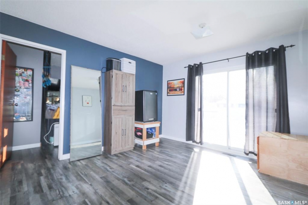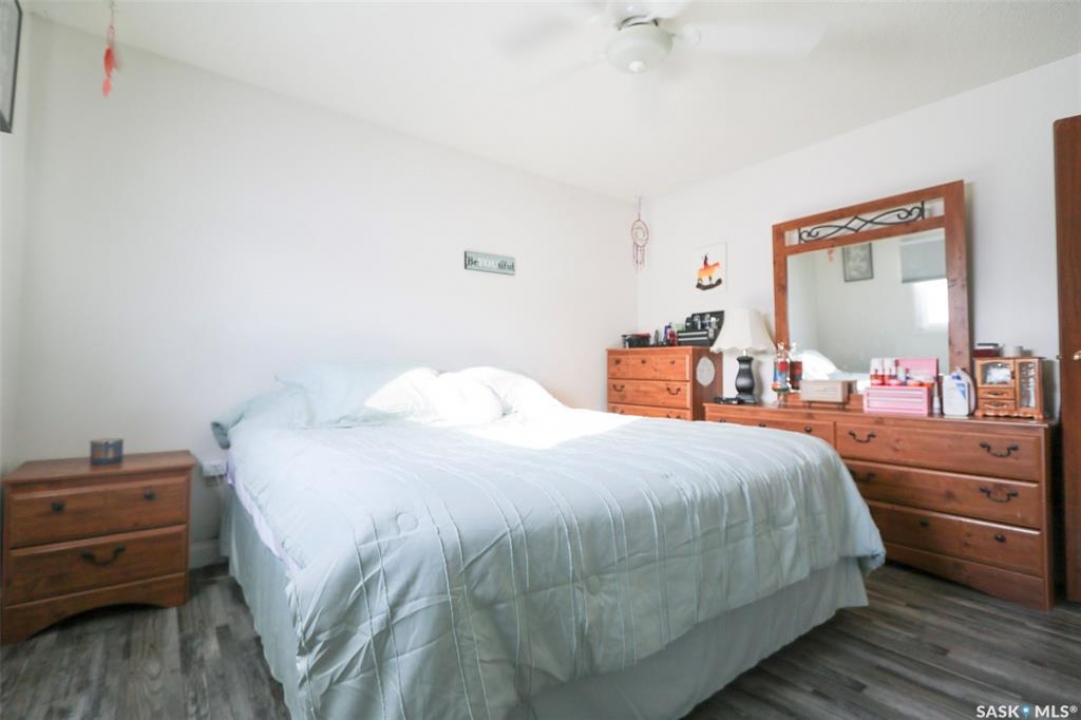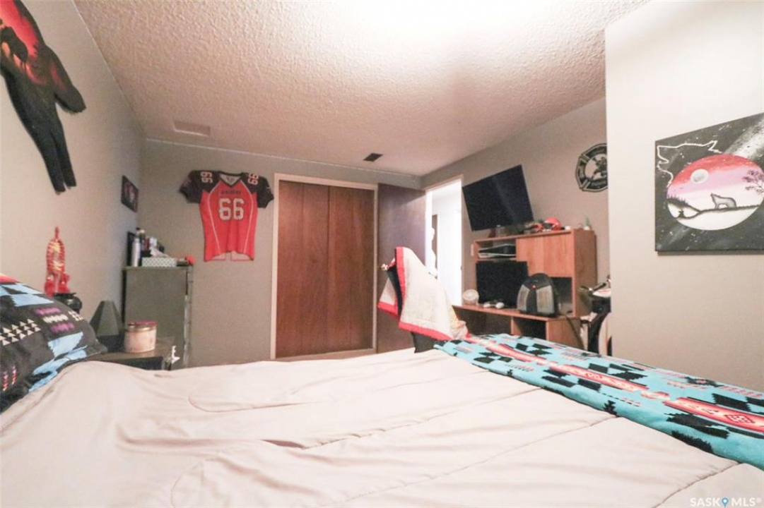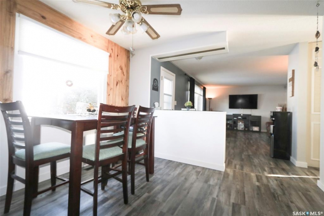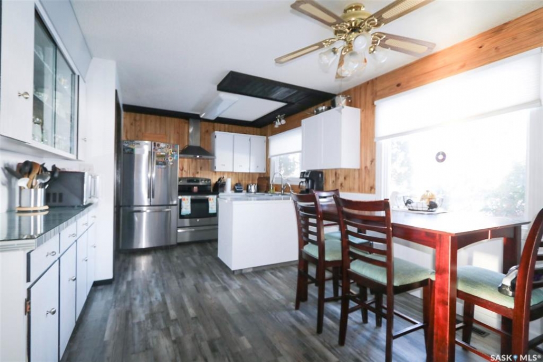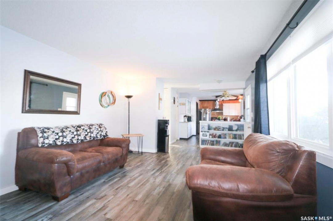 91 Collacott Drive is tucked away on a quiet crescent just down the street from Suncrest College's Trades & Tech Campus, offering a peaceful setting with exceptional walkability. A green space park sits directly across the street for the kids, while another green space with a walking path borders the west side and rear of the property. Enjoy the paved trail system that connects you straight into downtown Yorkton. This well-maintained home features an open and inviting floor plan. Originally a 3-bedroom layout upstairs, it has been thoughtfully reconfigured to a 2-bedroom plus den, creating a bright, sunny space that flows directly out to the deck and backyard—perfect for morning coffee or keeping an eye on the kids. The kitchen offers ample cabinetry, a convenient serving bar for family gatherings, and a large pantry, making it both functional and social. The living room provides a comfortable space to unwind after a long day. The primary bedroom easily accommodates a king-size bed. Downstairs, the fully developed basement includes a spacious rec room, a massive bedroom, a 3-piece bathroom, and plenty of storage. There is also the option to add an additional bedroom if needed. Outside, the yard is private and mature, featuring an older fence and an apple tree. The good-sized garage offers excellent parking and storage. Updates include Shingles 2022, furnace 2008, water heater 2001, windows, and basement bathroom. A great home in a quiet location with green space, walking paths, and convenience all around.