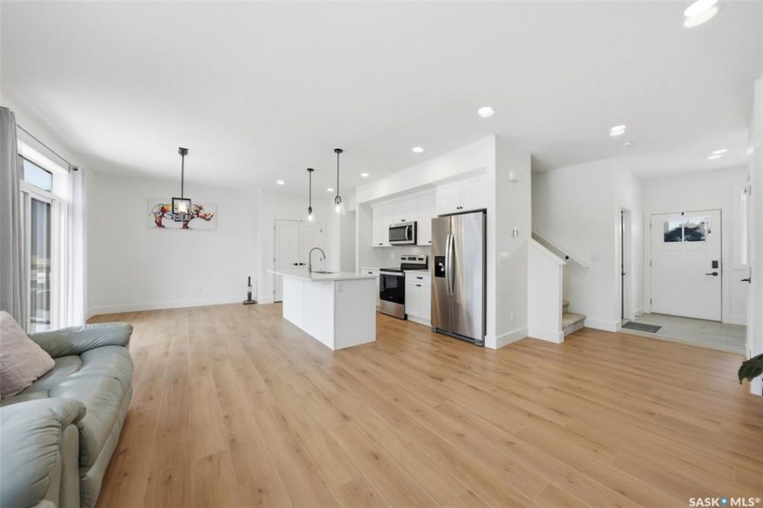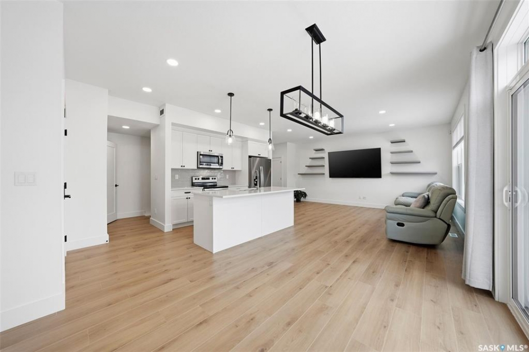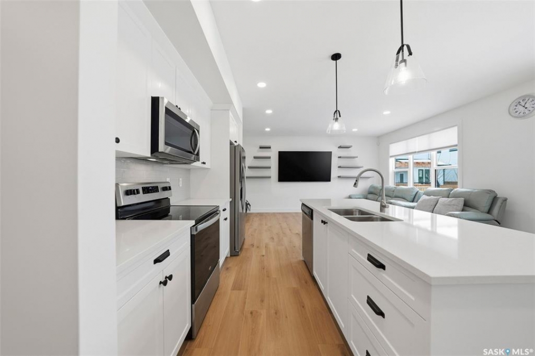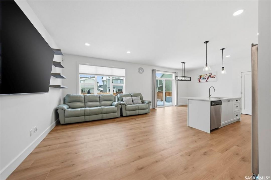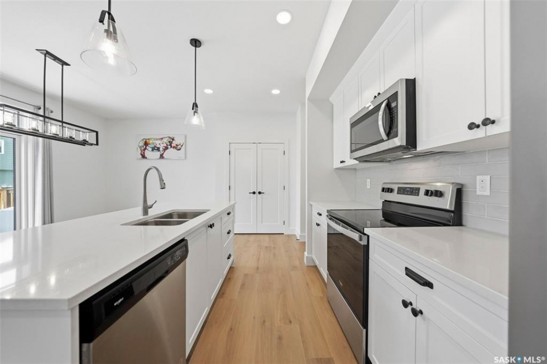 Welcome to 307 Keith Union, quality-built home by Arbutus Properties, offering well-planned layout and West Coast–inspired design. The home features thoughtful selection of custom finishes, including designer lighting package, Scandinavian-inspired hardware, premium tile, wide-plank laminate flooring, quartz countertop, and coordinated backsplash details throughout. The main floor offers inviting front entry with closet and custom built-in bench, leading into open-concept living space with 9-foot ceilings and clearly defined areas. Oversized triple-pane windows bring in abundant natural light and overlook the west-facing backyard, providing excellent afternoon and evening sun. The kitchen is both functional and well-designed, featuring a large island, stainless steel appliance, a range hood vented directly outside, and well-sized pantry for additional storage. Upstairs, you'll find three comfortable bedrooms, bright and spacious bonus room, tiled laundry area, and a main bathroom. The primary bedroom includes walk-in closet and full ensuite. The professionally developed basement continues the home's consistent finish, offering a large family room with laminate floor, an additional bedroom, a 4-piece bathroom with tiled flooring and tile-surround tub, and ample storage space. Both the main floor and basement feature 9-foot ceilings, enhancing the overall sense of space. The extra-large backyard is fully landscaped and fenced, complete with deck & brick patio, children's sand play area, storage shed, and underground sprinkler system. Additional features include insulated double garage and extra-long driveway accommodating up to five vehicles. Further upgrades include high-quality window blinds, central AC, HRV system, and durable James Hardie composite siding. Ideally located within walking distance to two schools, multiple parks, and shopping at Meadows Market, this home offers a strong combination of quality construction, practical design, and convenient location.