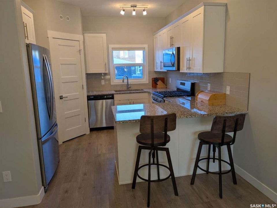 For more information, please click the "More Information" button. Welcome to "The Henry E", a 1,414 square foot, two-storey home on piles built by Glenrose Master Builder circa 2017/2018 with structural warranty protection to November 2029. It features 9-foot ceilings on the main floor; carpet, laminate, vinyl, and tile flooring, premium fixtures, stainless steel appliances, tile back splashes, and Comfortex blinds throughout. It's just steps from parks & walking trails, with schools, Costco, and other shopping only minutes away. The large front entrance and closet area leads to a bright and open dining/living room space with a park view. The corner kitchen facilitates great work flow and a breakfast bar. There is a quartz counter top, gas range, and a large fridge & pantry. The main floor has a 2-piece guest washroom. Upstairs, the spacious master bedroom has a 4-piece en-suite, a generous walk-in closet with wire shelves, and a tv-mount. There are two additional bedrooms, each with a large window. A second 4-piece bathroom and extra large washer/dryer combo with sanitizing features rounds out the top floor. The finished basement has a washer/dryer combo plus Dricore sub-floor panels, an electric fireplace, added insulation, and a suspended ceiling for extra coziness. The secondary rec/guest kitchen sports an induction stove, quartz counter top, built-in dining table/desk, and soft close cupboards. The bedroom is spacious with a large walk-in closet. The 3-piece bathroom has grab bars. Residence has central A/C and vac, a hot water circulation pump, full network wiring, and a generator pass-through. It features a "Unicorn" 20' x 40' / 4-car tandem garage with 9-foot ceilings, two overhead doors, a catch basin, and gas line RI. All grading/landscaping is completed including a vinyl fence with two gates, mature lawns, and a decorative crab apple tree in front.