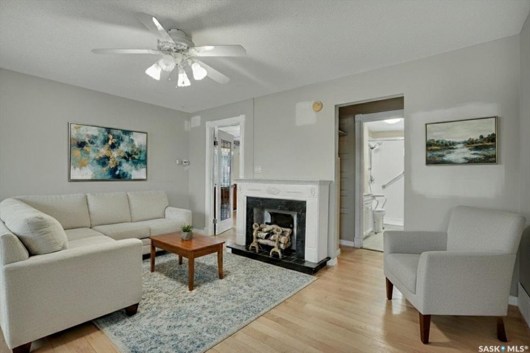 Welcome to 1109 11th Street West, ideally located in the desirable Holiday Park neighbourhood just a few blocks from the river, Riversdale Pool, elementary schools, and parks. This inviting home offers a bright and open main floor layout, beginning with a welcoming living room featuring a freestanding electric fireplace that creates a warm focal point. The living space flows seamlessly into the kitchen, dining area, and a sun-filled family room, complete with a gas stove and an abundance of windows that fill the home with natural light. Off the living room is a versatile office or bedroom, while the primary bedroom and a well-appointed three-piece bathroom with a walk-in shower complete the main level. Wood flooring runs throughout most of the main floor, with carpet in the family room for added comfort. Main floor laundry adds everyday convenience, and several key upgrades have been completed, including updated bathroom and plumbing lines, a newer water heater, and a high-efficiency furnace. Situated on a generously sized 45' by 125' lot, the property is fully fenced, well treed, and includes a detached two-car garage. This home combines character, functionality, and a prime location, making it an excellent opportunity to enjoy the best of Holiday Park living.