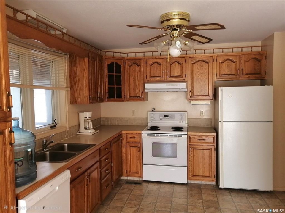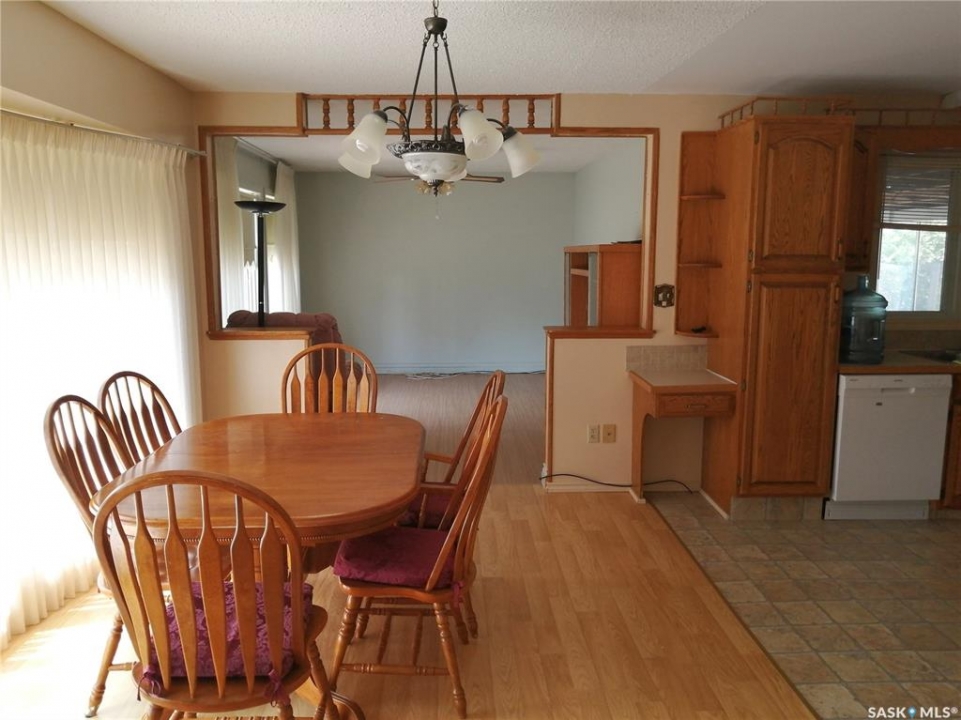 Welcome to this well-maintained 1006 sq. ft. home in the welcoming community of Ponteix. Featuring 4 bedrooms and 3 bathrooms, this property offers a functional layout ideal for families or those needing extra space. The large kitchen showcases beautiful oak cabinetry and flows seamlessly into the open dining and living areas, creating a bright and inviting main living space. South-facing windows fill the home with natural sunlight throughout the day. Enjoy the convenience of main floor laundry, with washer and dryer approximately 2 years old (per Seller). A unique enclosed deck provides additional living space to enjoy year-round. Completing the property is a detached single car garage with attached shed, offering excellent storage options. A great opportunity in a friendly small-town setting. All interior pictures were taken prior to the tenant occupying the home.