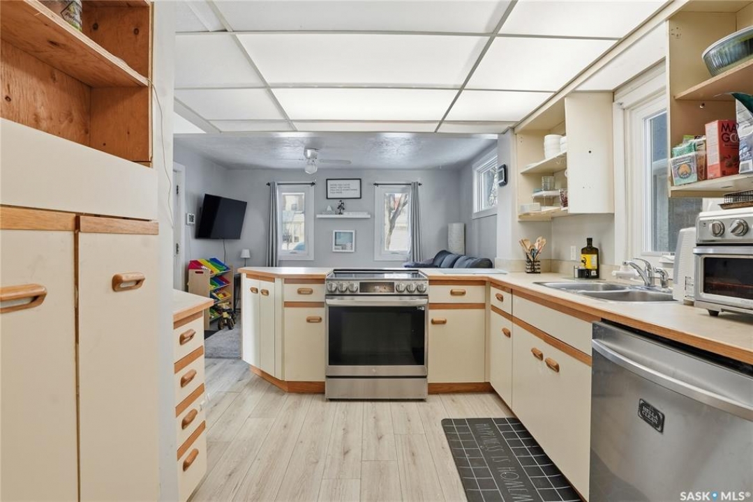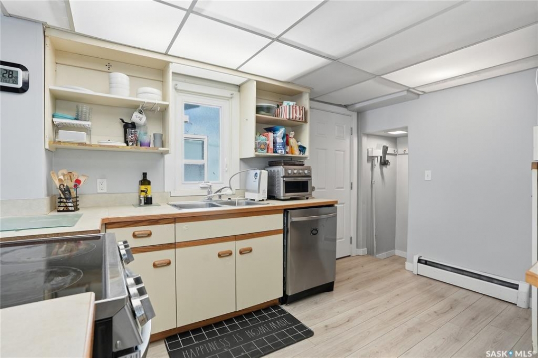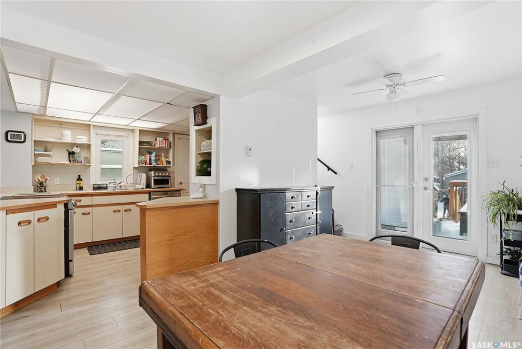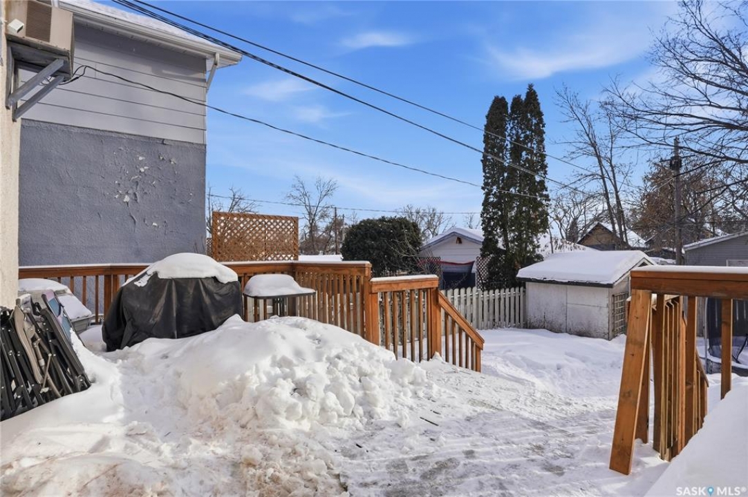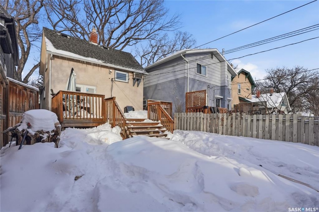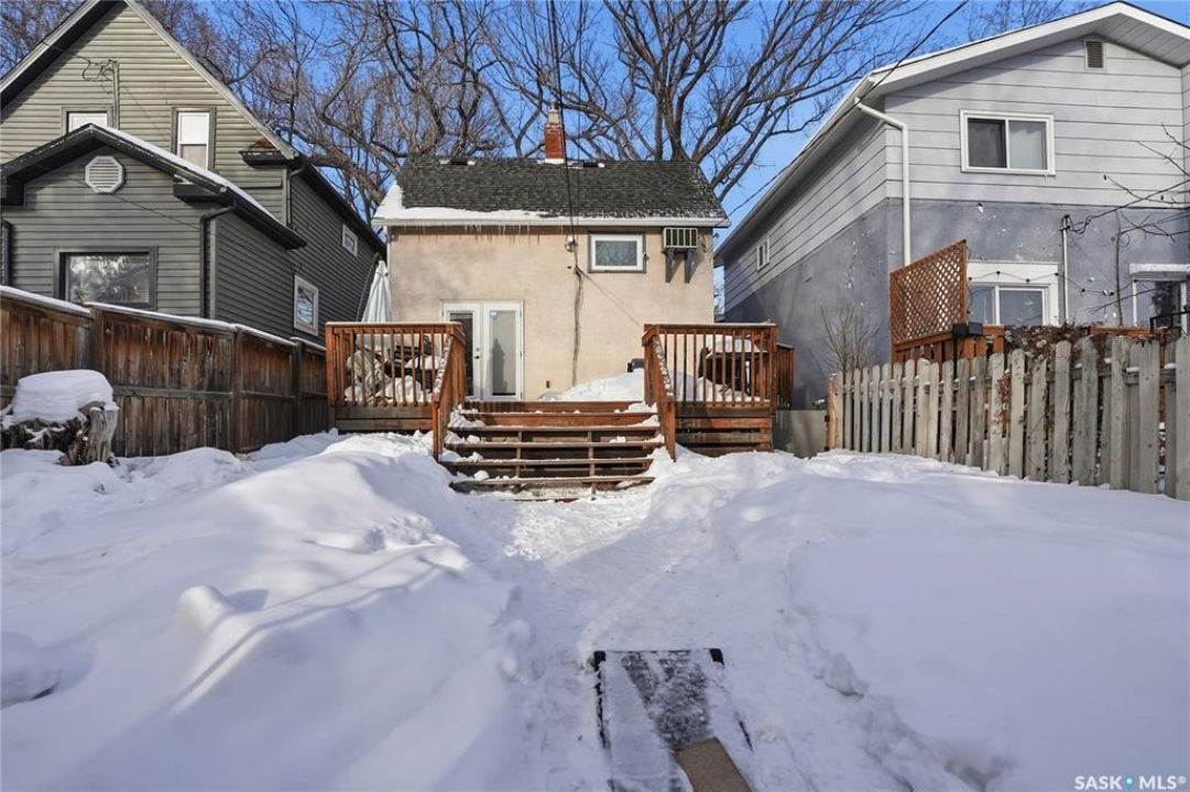 Welcome to 209 29th St – a 980 sq ft 1 � storey character home you've been waiting for. Step inside through the heated front porch, perfect for those cold winter days. The main floor features a spacious dining room and kitchen with plenty of cabinet and counter space for all your cooking and storage needs. Just off the kitchen is a bright, inviting living room with French doors that open onto a large deck and sunny, south-facing backyard. Upstairs you'll find two comfortable bedrooms and a beautifully updated bathroom, with the primary bedroom offering a walk-in closet. The lower level adds even more functional space, including a generous laundry and utility/storage area, a third bedroom with its own walk-in closet, and a second bathroom. Outside, enjoy the convenience of a front driveway for off-street parking plus additional parking access from the rear alley. There's also ample space to build a future garage. Numerous upgrades have been completed, including updated windows, making this home move-in ready while still full of character