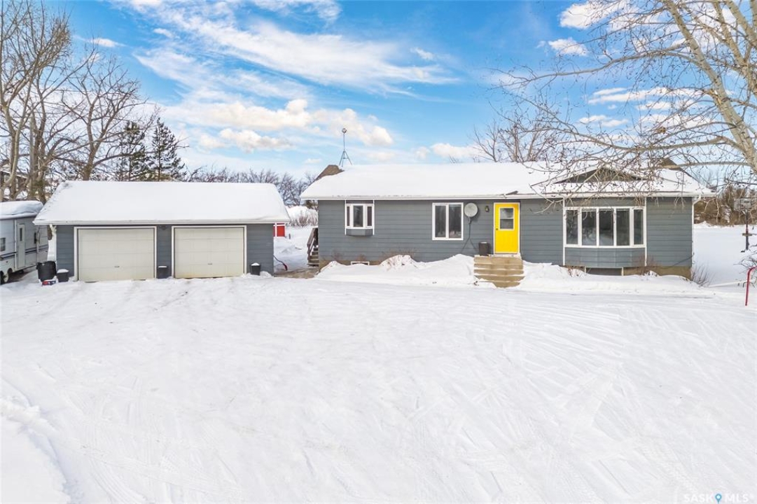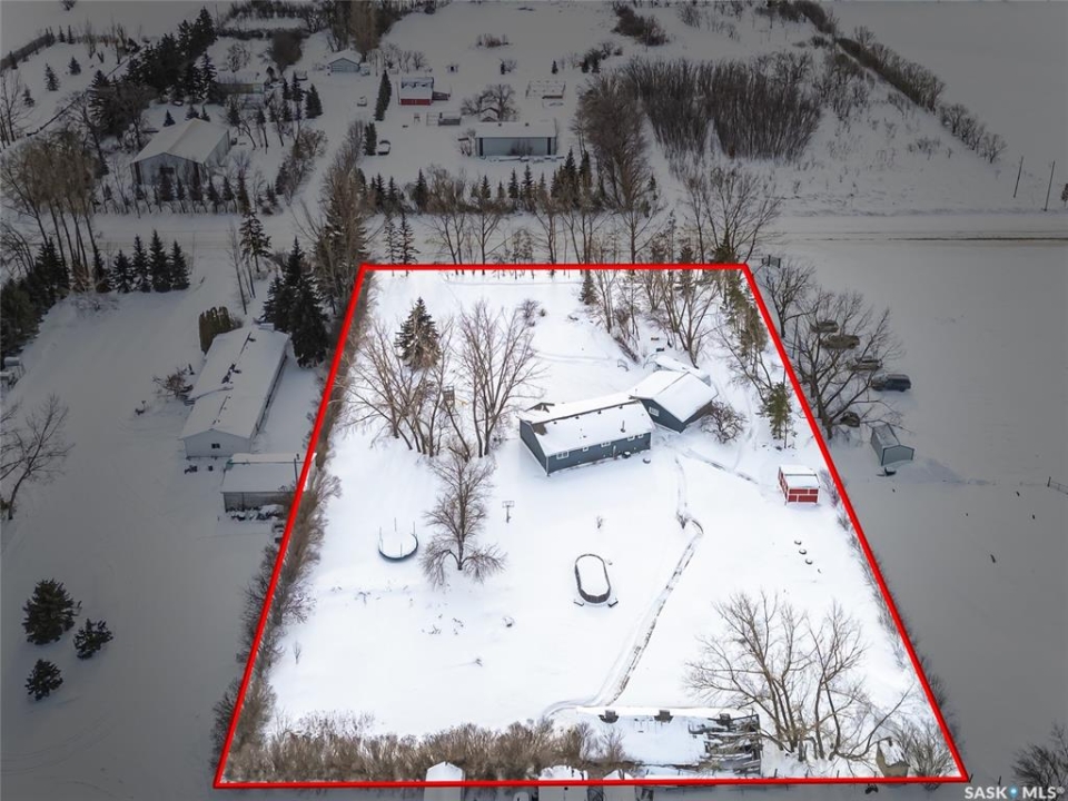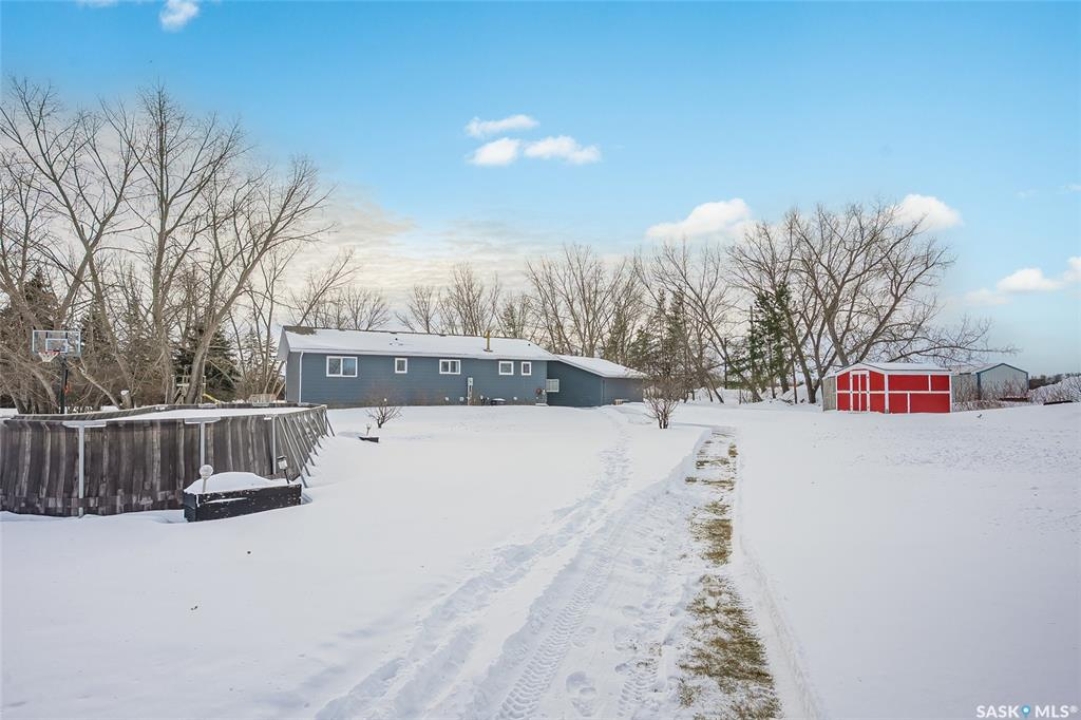 Tucked away in the RM of Rosthern on 1.58 acres, this private country property is surrounded by mature trees, wide open prairie views, and the kind of peaceful setting families love. It offers the perfect amount of space to enjoy acreage living without the heavy maintenance, with plenty of room for toys, outdoor fun, and summer days by the above ground pool. The home was built in 1996 and has seen some updates including newer paint and luxury vinyl plank flooring through the main living area. Upstairs you'll find three bedrooms, including a primary bedroom with a 3 piece ensuite, along with a full 4 piece main bath and convenient main floor laundry. The basement includes two additional bedrooms, one currently used as storage and not fully finished, with no egress windows. A 26x28 insulated detached garage adds great extra space, and the property is equipped with natural gas heat, central air conditioning, central vac, well water with an owned softener, municipal water available at the road, and a septic mound system. A quiet, comfortable acreage with privacy, nature, and those beautiful prairie country views.