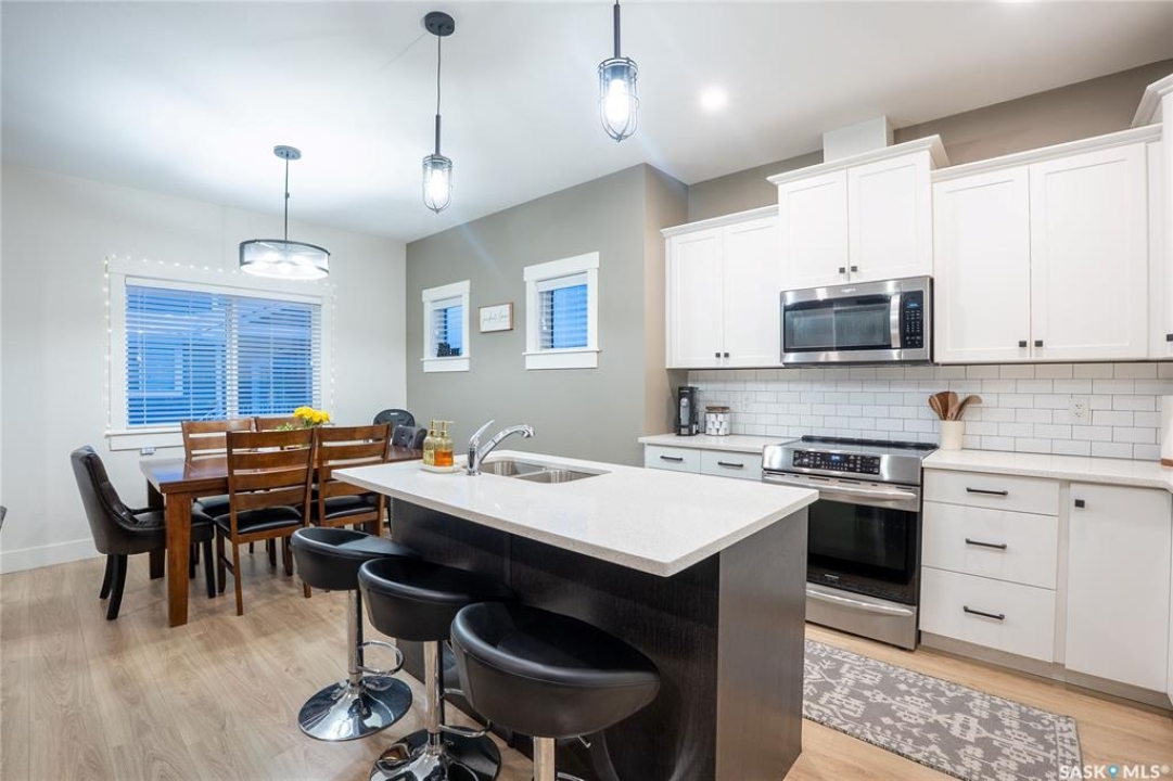 Welcome to 96-900 St. Andrews Lane, a beautifully maintained family home ideally located close to schools, Legends Sports Centre, shopping, walking trails, and other everyday amenities. Built in 2021, this property shows like new and offers modern design with thoughtful upgrades throughout. The main floor features a bright, open-concept layout with 9' ceilings and an abundance of natural light. The stylish kitchen is sure to impress with soft-close cabinetry, quartz countertops, a tiled backsplash, pantry, and upgraded high-end stove and dishwasher (appliances included). The inviting living room is centered around a stunning gas fireplace and opens through patio doors to a covered deck overlooking the fully fenced, landscaped, east-facing backyard. Upstairs, you'll find a spacious bonus room and convenient laundry area. The impressive primary bedroom boasts vaulted ceilings, a walk-in closet, and a luxurious ensuite complete with tiled shower, soaker tub, and dual sinks. Just a few steps up are two additional bedrooms and a full 4-piece bathroom. The basement is open for future development and is roughed in for a bathroom and/or wet bar. Additional highlights include a double attached garage with interior drain, insulation, drywall, and an electric heater (included), a double concrete driveway, and a finished, low-maintenance yard. TVs and TV mounts are also included. Pride of ownership is evident throughout—this home shows exceptionally well. Contact today to arrange your private viewing.
