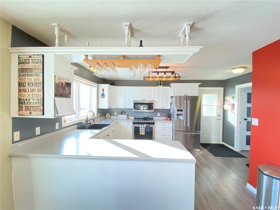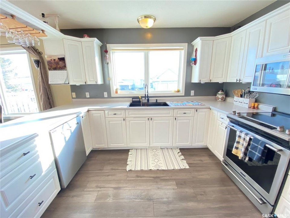 Step into the this home and enjoy the open concept kitchen, dining and living room space. Feel comfort in the east facing living room while relaxing beside the warmth of the new wood burning stove. The main bedroom offers a large ensuite with a dual sink vanity, a jetted jacuzzi tub and heated tile floors. The master suite is completed by a large walk in closet. This raised bungalow also offers a second large room on this floor that could be used as a second bedroom or a large office or crafting space as the home is designed with 3 more bedrooms and 2 bathrooms downstairs. The lower level has a seperate entrance and could easily be converted into a suite - with town approval - if that suits your needs. The property sits on a 70 foot wide lot and the 2 car garage has one door access from the front and the second door access is from the alley. There is also room to park and RV! With additional storage under the deck as well as a storage shed this home is ready to call home. Call today to book your own private tour.