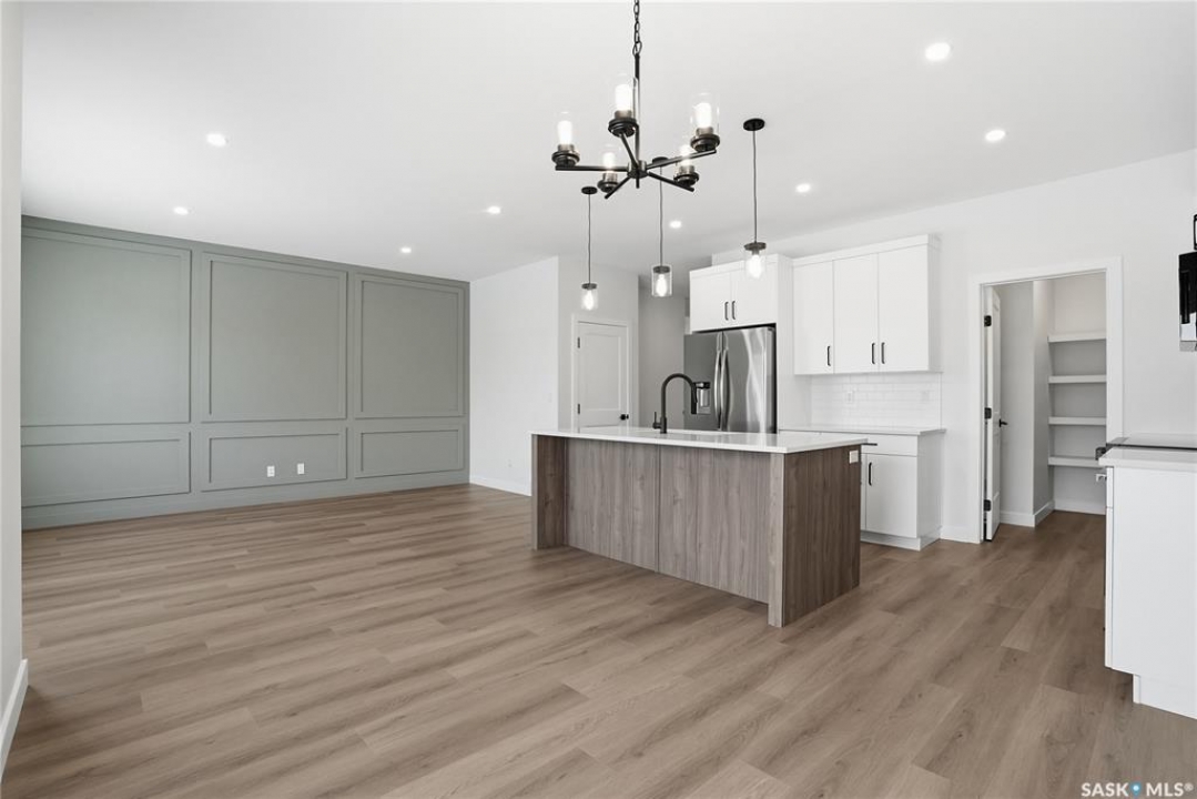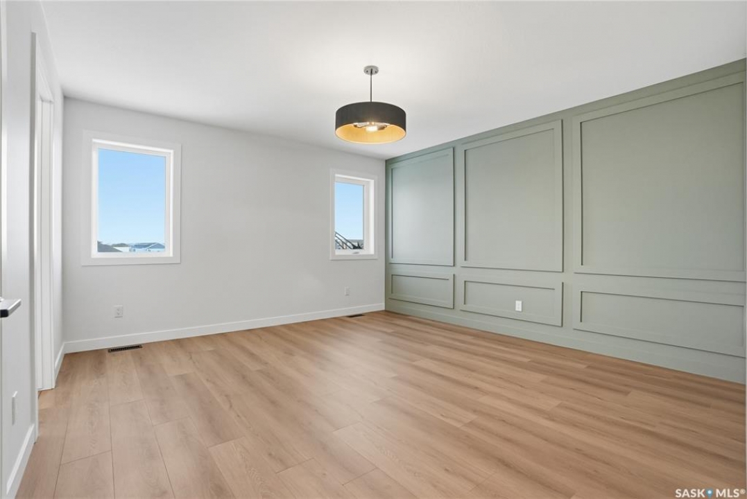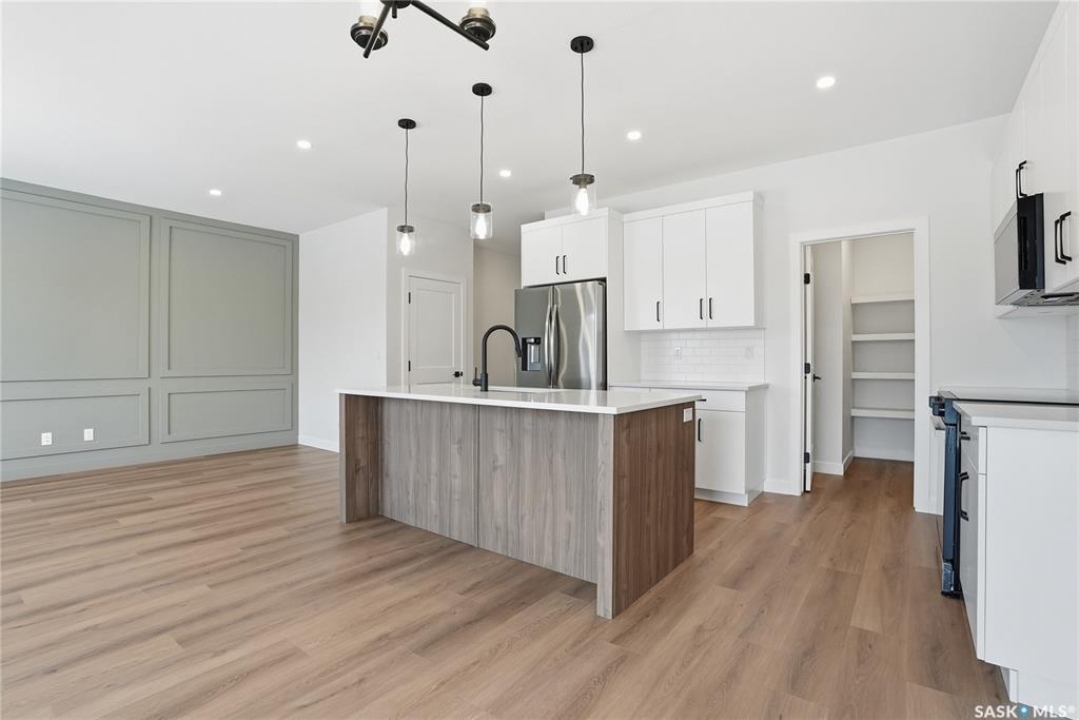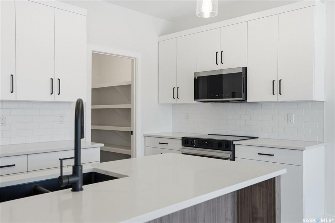 Modern 1,993 sq. ft. two-storey home featuring a rare main-floor bedroom and 3-piece bathroom, ideal for guests or multi-generational living. This 4-bedroom design offers 9' ceilings on the main level, laminate flooring throughout the main and second floors, and ceramic tile in bathrooms with tiled shower surrounds. The kitchen showcases a large quartz island, subway tile backsplash, soft-close cabinetry, walk-in pantry. Upstairs includes additional bedrooms and a well-appointed ensuite with double sinks, soaker tub, and custom tiled shower with glass enclosure. Additional highlights include pot lighting inside and out, upgraded black fixtures, comfort-height toilets, on-demand hot water, HRV, and high-efficiency furnace. Exterior is complete with triple-pane windows, covered front entry, concrete driveway, front landscaping.