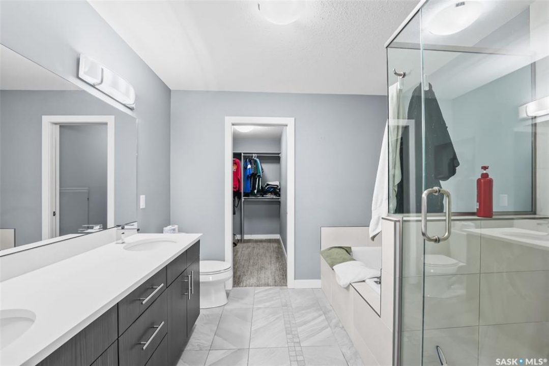 Welcome to 4357 Albulet Dr. This stunning Devereux built two-storey home is 1,970 square foot with the walk-out basement. This house has great street appeal with the stucco and stone combination. Perfectly positioned just steps from Fairchild park, Elementary school, green spaces, and walking paths, this property is ideal for families seeking comfort and convenience. Step inside and be greeted by soaring 10-foot ceilings. The main floor showcases an impressive open-concept layout with beautiful laminate flooring flowing throughout the kitchen, dining room and living room. The kitchen features extensive cabinetry, elegant quartz countertops, a large island perfect for meal prep and casual dining, and a convenient walk-in pantry. The generous living room includes a custom built-in gas fireplace with stylish shelving, while abundant windows fill the space with natural light. The dining area opens to a covered balcony, where you can enjoy your evenings and weekends looking at the green space and the park on the other side of creek. Upstairs, a bright and versatile bonus room above the garage with plush carpeting offers versatility and adapts to your needs as a lounge, a play area, as a home office, or entertainment space. The master bedroom features carpeted floor, large windows, an ensuite with tile flooring, separate shower, corner soaker tub, and dual sinks. The master bedroom also leads to another big balcony. Two additional carpeted bedrooms share a full 4-piece bathroom. The fully developed walk-out basement expands your living space with a 4th bedroom, family room, an office room with barn door, and a 3-piece tiled bathroom. Additional storage and mechanical rooms provide excellent organization. The oversized double attached garage is partially insulated and drywalled, offering exceptional storage. Contact your Realtor to schedule your private viewing today.