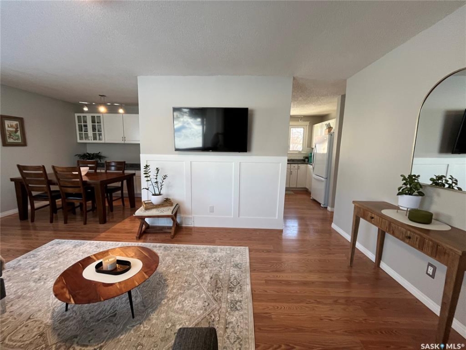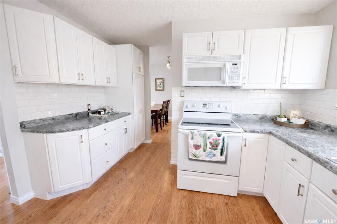 Visit REALTOR � website for additional information. Welcome your family into this modern bungalow that has been completely remodeled. This home features open living space that offers easy flow from main living spaces offering a sense of connectedness and making entertaining easy. Large triple pane windows can be found throughout the main floor offering warm sun light and great views into the front yard green spaces. The kitchen and dining room offer great storage and cooking space with updated cabinets, counters and appliances. A unique feature in this home is the back porch that connects the kitchen deck and basement. Leave muddy boots, back packs, and all your outdoor gear here. The basement is where relaxed living can begin. A large open living space allows workout space, play space, or a second living room to relax and spend time together. There is a bedroom, bathroom, laundry, storage, and a workshop found in the basement. All appliances are being sold with the home. Outside this home has plenty of green space in both the front and back yard. The front yard has matured shrubs, and two custom brick planter boxes that are filled with beautiful perennials. The large brick driveway parks 2 cars comfortably and leads to the one car attached garage. The backyard is fully fenced and has mature trees that offer shade and privacy so that play, and entertaining can we comfortable in the warm summer months. There are a custom build sand box and playhouse, shed, firepit and establish garden space. This home welcomes a new family into a quiet residential area of Melville close to schools, parks, and stores.