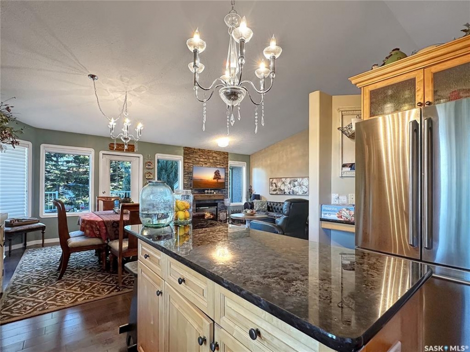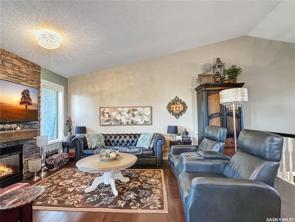 Welcome to this beautifully maintained family home in the friendly community of Balcarres! Offering over 1,800 sq. ft. of main floor living space plus a fully finished basement, this spacious home features 5 bedrooms and 3 full bathrooms—perfect for a growing family or those who love to entertain. The main floor boasts vaulted ceilings and an open-concept layout, creating a bright and inviting atmosphere. The kitchen is a standout with granite countertops and stainless steel appliances, including a fridge, stove, and dishwasher. You'll also find a comfortable living room, dining area, laundry room, den, and more—all designed with functionality and flow in mind. Downstairs, enjoy a large family room and ample storage space, making it ideal for movie nights or a home gym. The home also includes two gas fireplaces, central air conditioning, and central vac for added comfort and convenience. Step outside to a fully insulated double attached garage with an automatic opener. The backyard is a private retreat, featuring a two-tiered deck, sheltered patio, mature trees, garden area, storage shed, and PVC fencing for low-maintenance living. Located just minutes from the scenic Qu'Appelle Valley and nearby lakes, and only an hour's drive to Regina, this home combines small-town charm with easy access to city amenities. Balcarres offers a K–12 school, medical clinic, grocery store, pharmacy, restaurant, lumber yard, and more—everything you need, right in town. Call your favorite local agents to view.