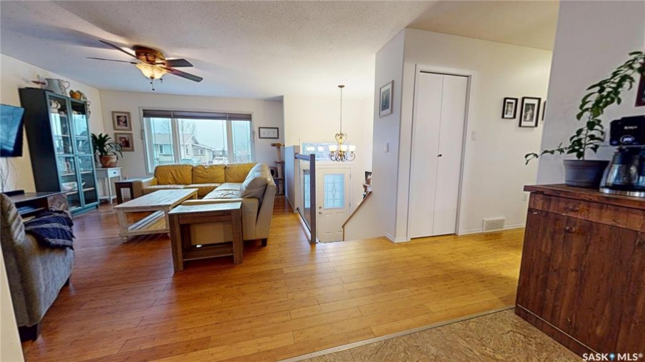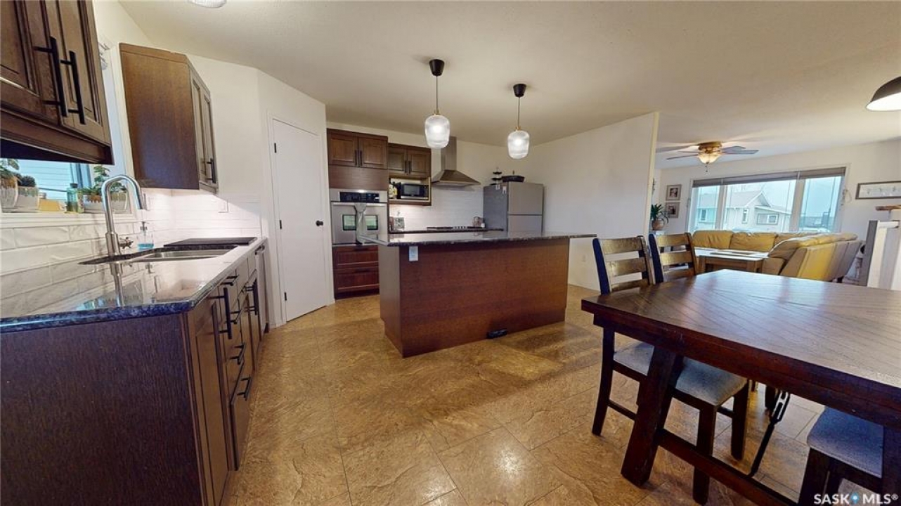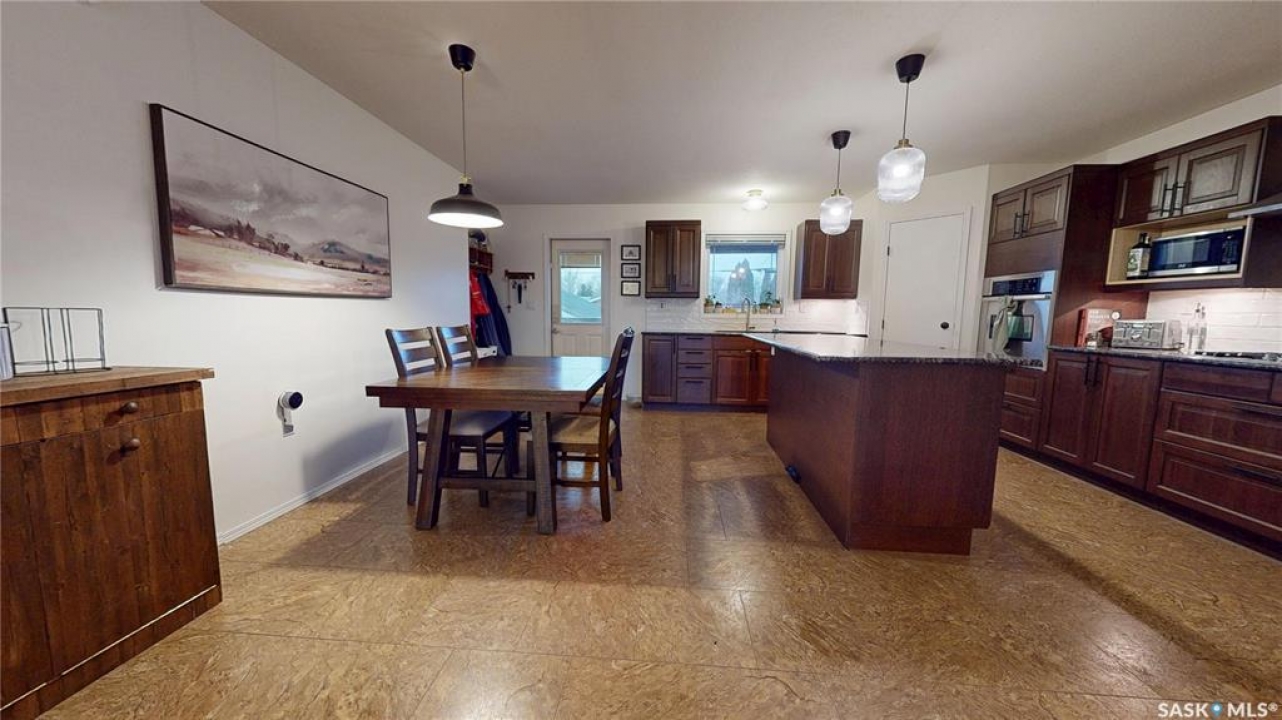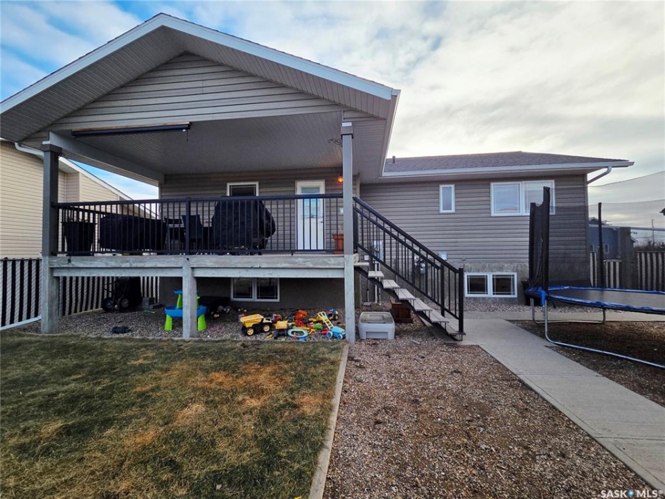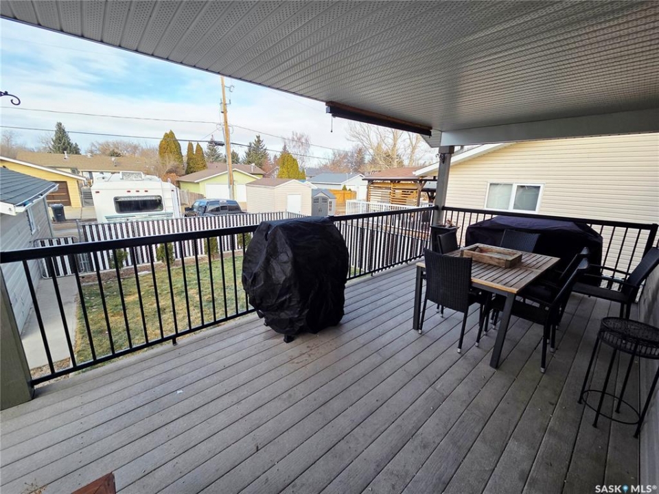 Welcome to 211 Lonsdale Street in Maple Creek. This custom-built, raised bungalow is located in a newer residential area close to schools, recreation, shopping, and a new daycare currently under construction. Tidy and move-in ready, the home features a split-entry foyer and an open-concept main floor with kitchen, dining, and living space offering room for a large table plus island seating, a corner pantry, quartz countertops, countertop range with hood, built-in oven, and a double sink overlooking the covered deck and backyard. The bright living room features engineered hardwood flooring. The primary bedroom includes a walk-in closet and 4-piece ensuite. There are two additional main-floor bedrooms and a 5-piece main bath with double sinks for those busy family mornings. The fully developed basement offers a family room, rec/games area with wet bar and cabinetry—perfect for guests, teens, crafting or hobbies—two more bedrooms, a 3-piece bathroom, and a utility room with designated laundry area, storage, furnace, air exchanger, central vac, and sump pump. Outside, enjoy a large fenced yard ideal for kids and pets, a gravel fire pit area, storage shed, RV or extra vehicle parking, and both a front concrete drive and rear gravel drive. The icing on the cake is the fully insulated, heated garage with plenty of room for vehicles, a workshop, or man cave. Priced to sell, this is a home you won't want to miss.