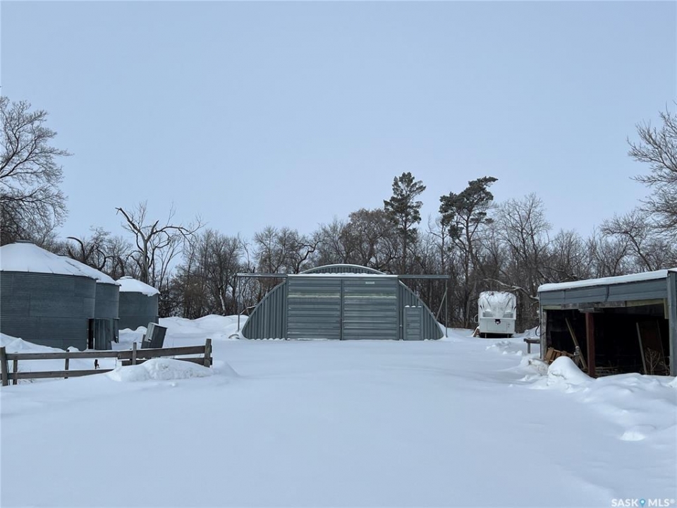 If you've been dreaming of space,privacy, & a property that truly checks every box—this is the acreage that keeps delivering.Located 6 miles North of Esterhazy & 3 miles East, this serene 10-acre parcel offers the ideal balance of country living with convenient access.Property features a 1960 bungalow with a 14'x20' addition, totalling 1645 sq ft of main-floor living space, fully renovated with extensive updates completed primarily in 2025.Home offers an open-concept kitchen,dining,& living area with new cabinetry, flooring, pot lighting & fixtures. The spacious primary suite includes his/hers closets & 3-piece ensuite, complemented by a 4-piece main bath. A NW side entrance leads into a functional mudroom/laundry area. A south-facing patio door off the dining area brings in natural light & easy outdoor access.Basement has been completely re-insulated and drywalled, creating a brand-new space perfect for relaxing evenings. Major mechanical & infrastructure upgrades include electrical cable from the transformer, 200-amp service, Trane furnace,Venmar HRV system,upgraded gas line with three future connections, automatic sewer pumps, a comprehensive water system, water softener, iron filter, pressure system, RO unit with separate drinking tap, and a 50-gallon hot water heater. All walls have been reinsulated, smoke detectors updated to current code & modern lighting installed throughout.The water well, drilled in 1962 to 175 feet with a 4” casing, produces approximately 14 gpm. Exterior amenities include a 40' x 60' quonset (wired and finished with 4” of new gravel),round bins,wood bins, a chicken coupe with subpanel, expansive garden space, & a 26'x30' detached garage (uninsulated with concrete floor). Additional features include hot & cold exterior water taps & the addition is supported by 11 piles with engineered trusses.While there are still a few finishing touches to complete, this property offers an exceptional foundation to create a truly one-of-a-kind acreage.