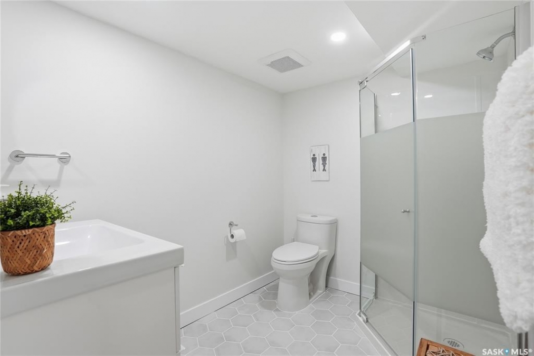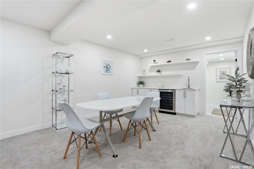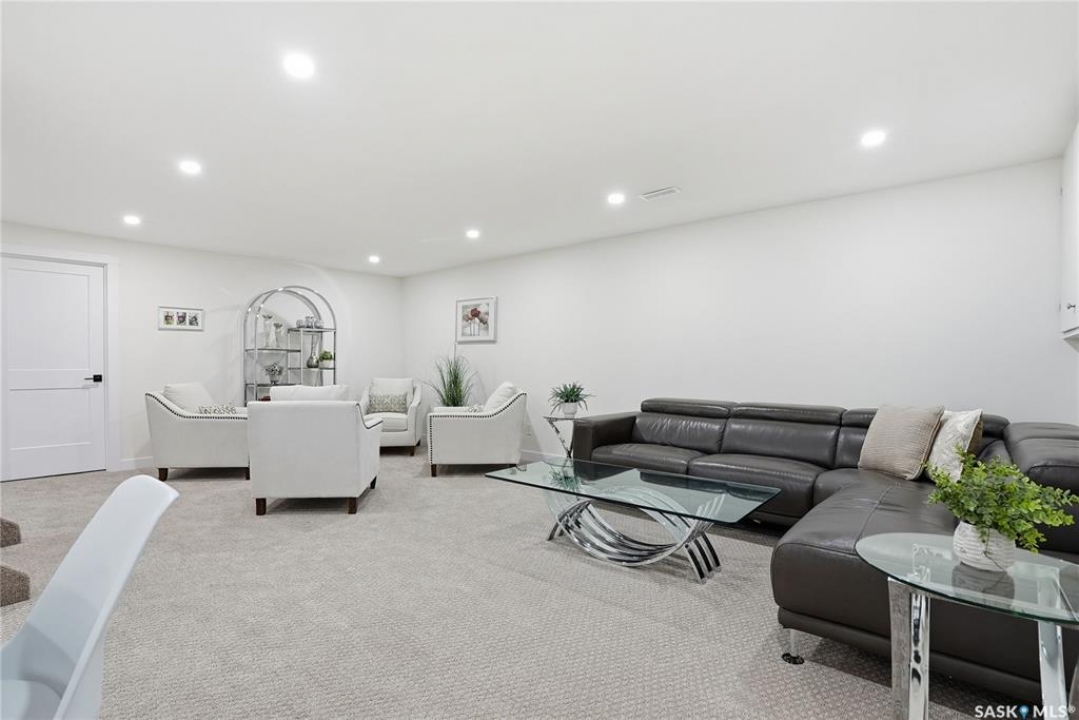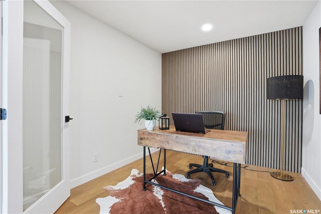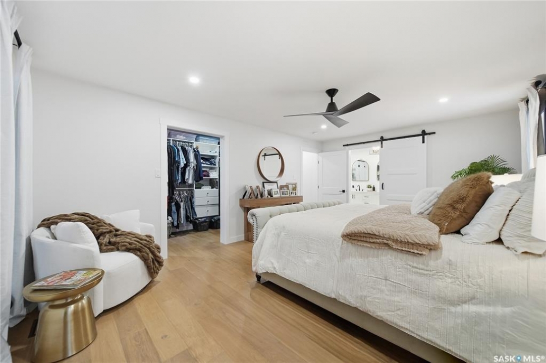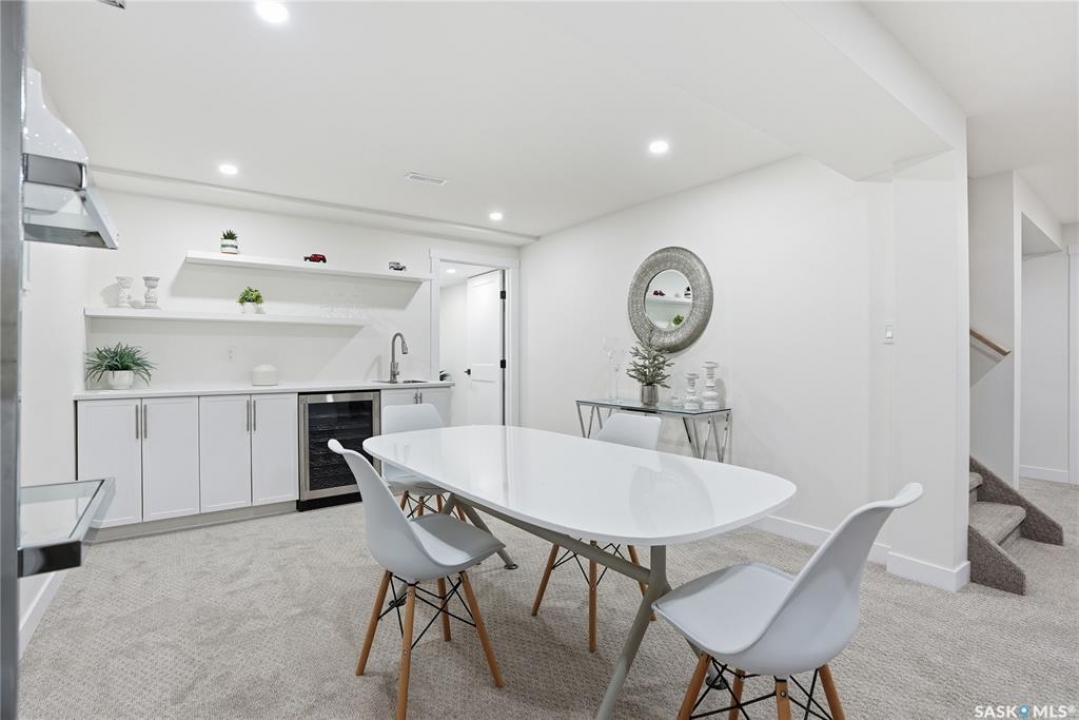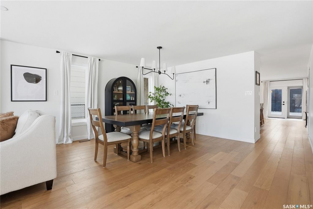 CHECK ON THE VIDEO ABOVE! Timeless style and exceptional craftsmanship define this stunning 2,691 sq. ft. bungalow in prestigious Lawson Heights, offering river views and overlooking Meewasin Trail. Welcome to 115 Whiteswan Drive, where a grand foyer with soaring ceilings creates an inviting first impression. Sun-filled living and dining areas showcase breathtaking views and feature a striking custom warm-toned wood feature wall with a sleek linear gas fireplace, ideal for both everyday living and entertaining. Beautiful new warm-coloured hardwood flooring flows throughout the main floor, enhancing the home's elegant, cohesive design. A private main-floor office with glass doors is perfect for working from home. The executive kitchen impresses with white cabinetry, an expansive island, quartz countertops, and a fully equipped butler's pantry with all new stainless steel appliances, including double refrigerators, double ovens, gas stove, beverage fridges, tall wine cooler, and warming oven—designed for hosting and convenience. The breakfast nook features a south-facing window seat, while the adjoining family room opens to outdoor living. The spacious primary bedroom (19' x 13') offers a large walk-in closet and a spa-like 5-piece ensuite. Two additional well-proportioned bedrooms share a 5-piece bath, along with rare main-floor storage and extra cabinetry. The newly fully developed lower level provides a wet bar, extra bedroom, bright 3-piece bathroom, gym/exercise space, and generous storage. Mechanical upgrades include a high-efficiency furnace and on-demand water heater. Enjoy breathtaking sunrise views from the front of the home, then unwind in a sun-filled, private backyard retreat featuring a privacy wall, stamped concrete patio, stunning brick fireplace, tranquil water fountain, lush landscaping, brand new fencing, and a shed—a truly secluded oasis.