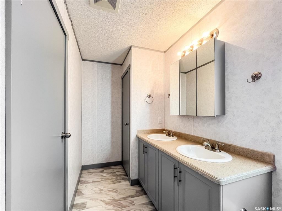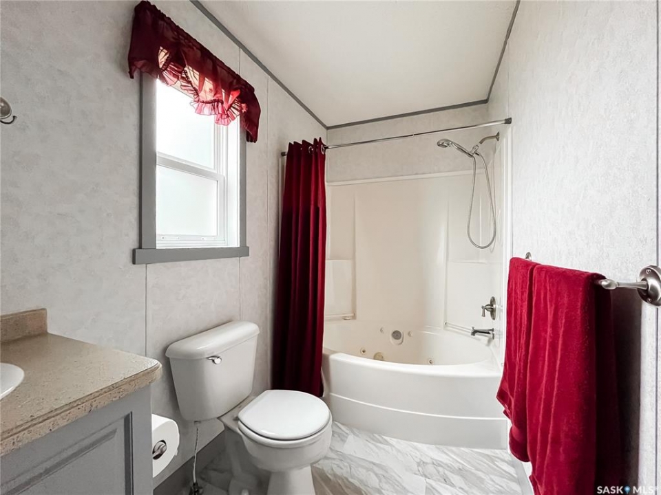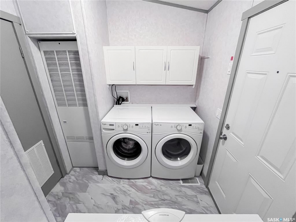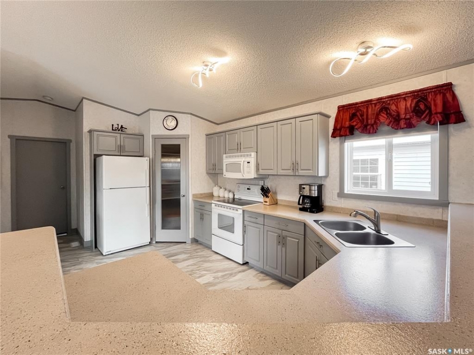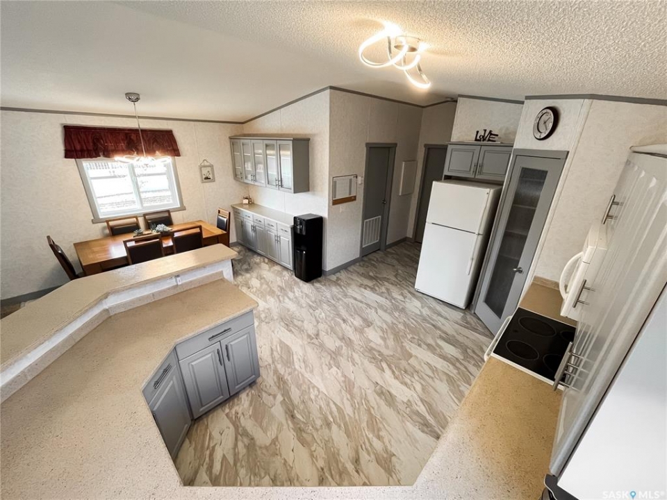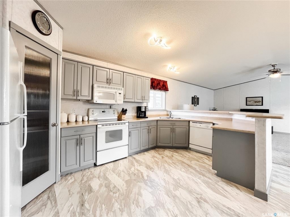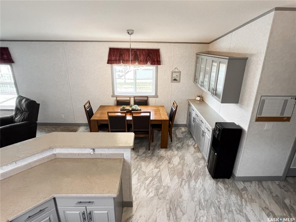Welcome to 89 Prairie Sun Court! This fabulous 1,520 sqft modular home offers a bright, open-concept layout with a vaulted ceiling, that's perfect for families or anyone craving spacious, single-level living. Step inside, you're greeted by the open concept living room, dining area & kitchen offering updated carpet & vinyl plank(2018) throughout. Flooded w/ natural light & enhanced by newer, modern light fixtures, this space feels as bright & inviting as it is functional. You'll be amazed at the large pantry & incredible amount of cupboard space (full wall in dining area), especially for a modular home. Whether it's everyday meals or hosting friends & family, this kitchen is designed to impress! Now, let's talk about the primary bedroom! It's tucked away on the north side for extra privacy & features a generously sized closet & an amazing 5-piece ensuite w/ his-and-hers sinks, a jacuzzi tub/shower combo & linen closet. The other 2 bedrooms are spacious - both offering ample closet space. This home is packed w/ practical perks too: energy-efficient double-pane PVC windows, central air conditioning, a new water heater(2025) & a water softener. Next, the laundry room—complete w/ a storage closet & features a handy secondary entrance leading straight to the backyard. The two-tier deck is made for BBQs, or simply unwinding while taking in a stunning sunset. There's even a storage shed included in the sale to keep all your tools & toys organized. Worth noting - the skirting has been spray foam insulated in the past 3 years, so floors inside stay extra warm. Additionally, the park fees include water, and the property taxes are incredibly affordable at just $35 per month. Don't miss out on this incredible opportunity to own an affordable home in a wonderful neighbourhood on the outskirts of Swift Current.
