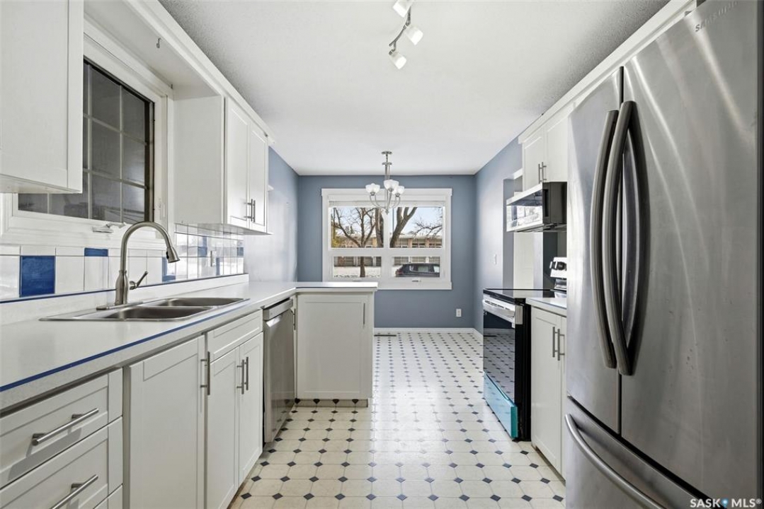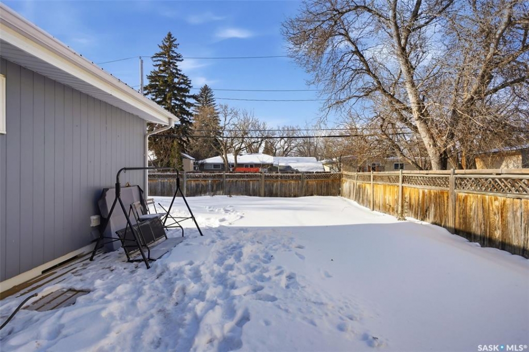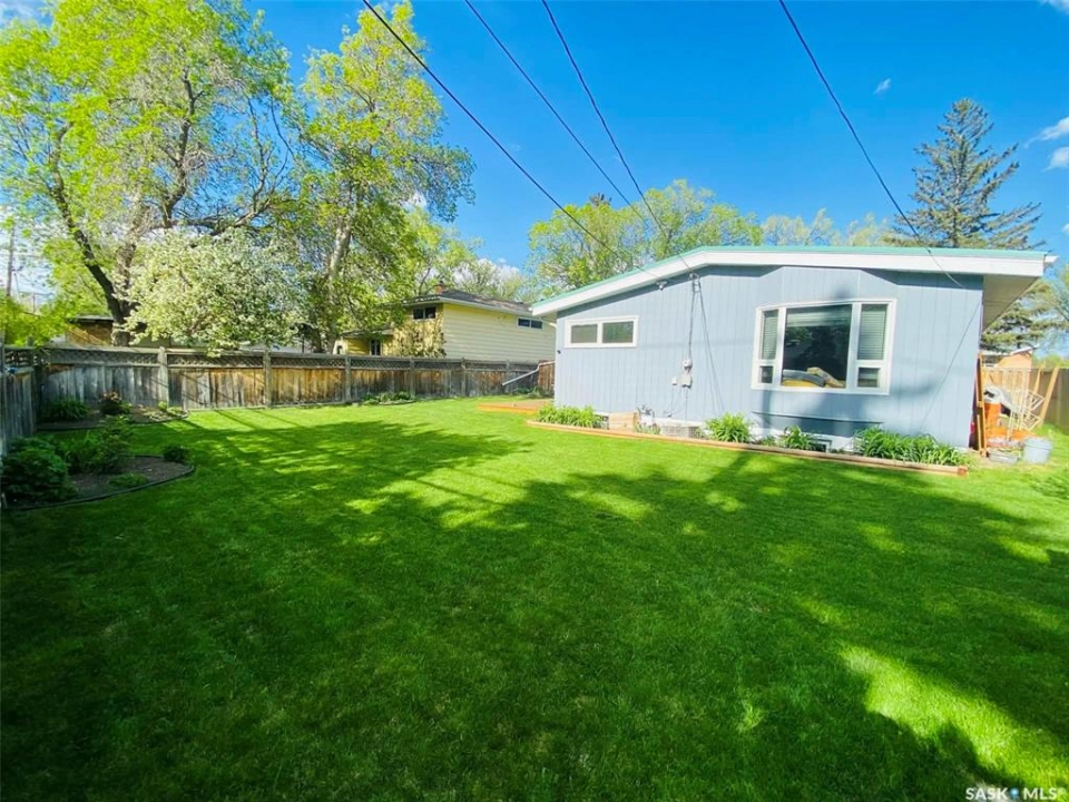Beautiful 4-bedroom, 2-bathroom bungalow in the heart of Whitmore Park. This well-kept 1,134 sq ft home offers great curb appeal, an attached single garage (converted from a carport in 2024), and a long list of updates completed by both the previous and current owners. Recent improvements include: windows, window treatments, kitchen cabinet doors, backflow valve, front and backyard landscaping, and a concrete driveway (2018). Additional upgrades by the current owner feature LG ThinQ dishwasher, washer, and dryer (2022), stainless steel deep laundry sink, over-the-range microwave (2022), closet shelving (2022), LG ThinQ stove (2024), basement window (2024), roof professionally cleaned (2023), regrading completed in 2024, and the 2024 carport-to-garage conversion. Inside, you are welcomed by a spacious living room highlighted by large windows that fill the space with natural light. The kitchen and dining area are thoughtfully separated from the main living space, offering added privacy. The main floor features hardwood flooring throughout, three generous bedrooms, and a 4-piece bathroom complete with a deep soaker tub. The primary bedroom boasts a large window and excellent natural light. The professionally developed full basement adds even more versatility, offering an additional bedroom, a recreation room, a bonus room, and a 3-piece bathroom—ideal for extended family, guests, or extra living space. Located in the highly desired neighbourhood of Whitmore Park, this home is close to multiple schools, the University of Regina, and a wide range of south-end amenities including restaurants, Southland Mall, gas stations, and grocery options. The concrete double driveway provides ample parking, while the lovely fenced backyard and side deck offer a perfect space for gardening, relaxing, and family gatherings. A wonderful opportunity in a fantastic location. A must-see.