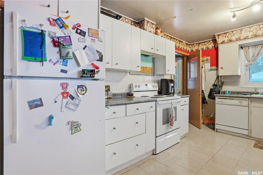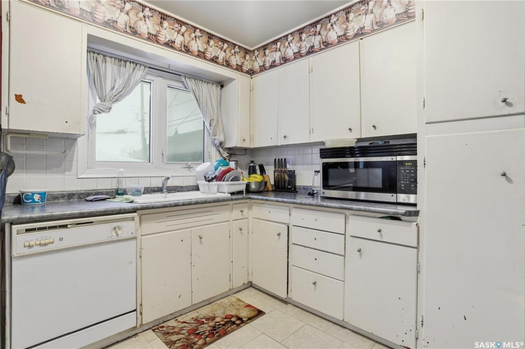 Welcome to 4111 McPhail Ave!! Great opportunity to build sweat equity in this bungalow located in the desirable Lakeview neighbourhood of Regina. Offering over 1,000 square feet of living space, this home features 3 bedrooms and 2 bathrooms, providing plenty of room for a growing family. The main floor you are greeted to a large living room with hardwood flooring that leads onto the spacious eat in kitchen. There are 3 bedrooms and a full 4-piece bathroom that completes the main floor. The basement offers a large recreation room and a three-piece bathroom that requires some finishing touches. Two additional bedrooms (windows not egress) are located downstairs, along with plenty of storage space. There is a single detached garage in the very large backyard. This home has a great layout and generous space throughout, it is ready for your personal touch and offers excellent potential to become your next home.