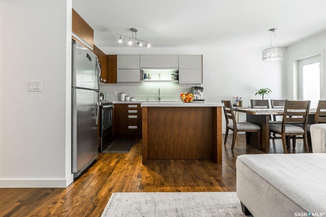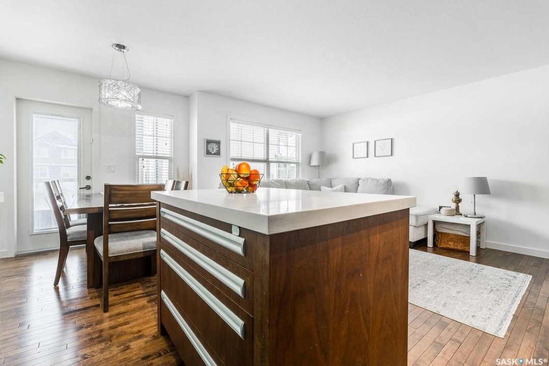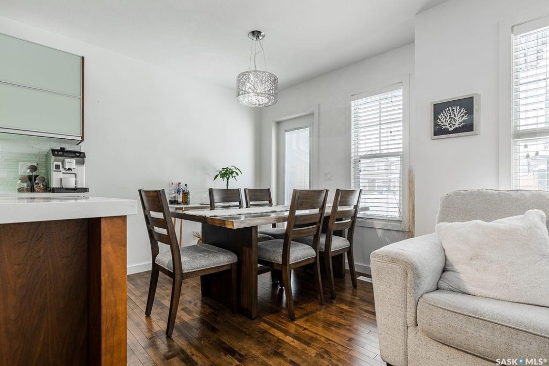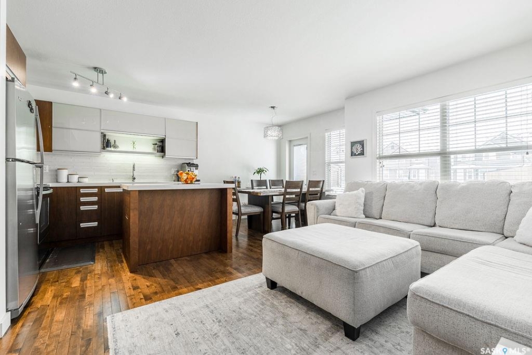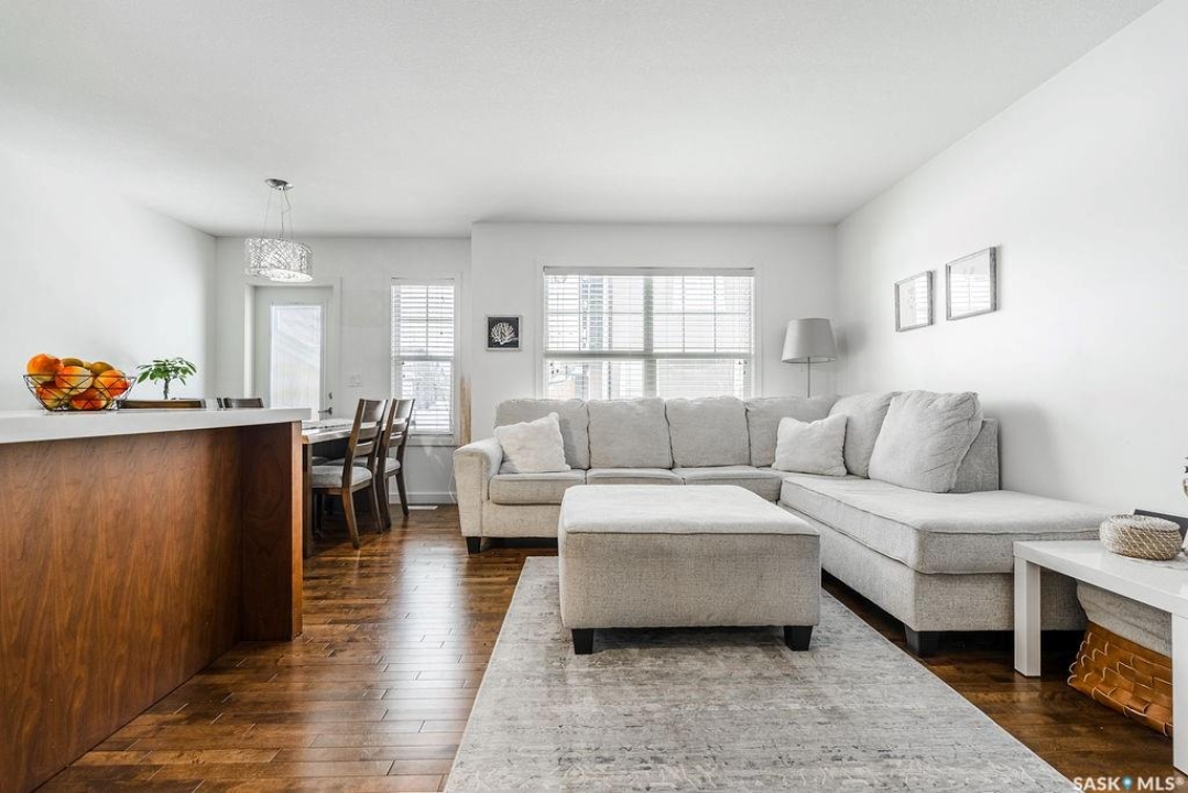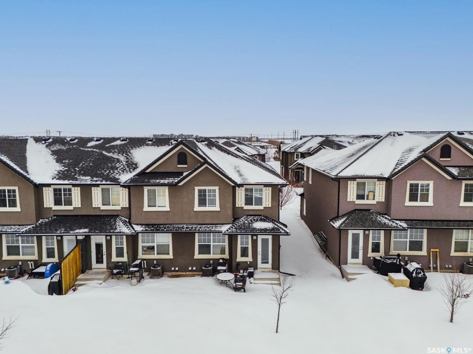 This 3 bedroom, 2 bathroom townhouse offers 1,260 sqft of modern, low-maintenance living. Inside, you'll love the contemporary finishes, including trendy New York–style cabinetry with soft-close doors and drawers, quartz countertops, glass tile backsplash, and stainless steel kitchen appliances. Past the dining area is a patio door that leads to your own outdoor space and access to all of the green space behind the home for kids to run and play. The open main living and kitchen area features hardwood flooring. A 2-pc powder room and direct access to the attached garage complete the main floor. Upstairs, there are three generously sized bedrooms and a 4-pc bathroom that acts as an en-suite as well. A single attached insulated garage adds even more everyday convenience. The unfinished basement hosts the laundry and is yours to develop, providing excellent potential for additional living space, a home gym, or future value. Located on a quiet crescent in the pet-friendly Jasmine complex, this Willowgrove home is close to schools, shopping, parks, and all amenities.