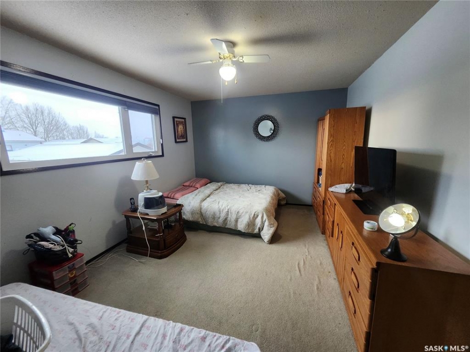 This solid 2+2 bedroom family home offers great bones and a dry, well-maintained basement. Triple-pane PVC windows, updated in 2006, remain in excellent condition, and the home is equipped with an updated high-efficiency furnace. The main floor features a mostly open layout with large windows that bring in abundant natural light, a solid oak kitchen, two bedrooms, and a bright four-piece bathroom. The fully developed basement provides additional living space with a spacious family room centered around a natural brick, wood-burning fireplace that adds warmth and character. Two generously sized basement bedrooms both offer excellent natural light. The basement has no history of water issues and stays dry thanks to the weeping tile system, with smooth concrete in outstanding condition throughout. The exterior of the home is well maintained and finished with low-maintenance X-90 siding and stucco. Landscaped front yard offers ample curb appeal, with backyard is ideal for outdoor enjoyment, featuring a large garden area, fruit trees, mature pine trees, two storage sheds, and a double detached garage.