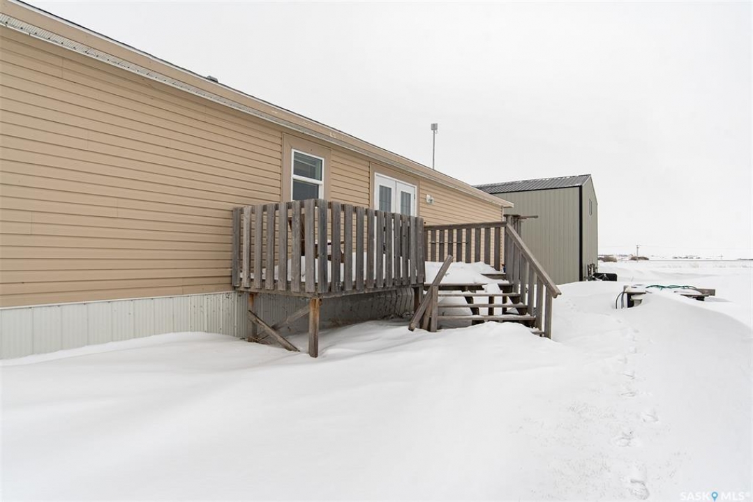 Located near Kandahar just minutes from Wynyard, this well-kept 3 bedroom, 2 bathroom mobile home sits on 1.9 acres offering space, privacy, and comfortable country living. The home features a cozy fireplace, functional layout, and a versatile bonus room ideal for an office, playroom, or extra living space. Enjoy beautiful prairie sunsets from the west-facing back deck, plus a covered front area that provides sheltered entry and a relaxing spot to unwind. The yard provides plenty of room for gardening, recreation, or outdoor storage, and the owners have recently planted 150 hybrid poplar trees, creating a future shelterbelt for added privacy and wind protection. A major highlight is the 24 x 32 shop with 16-foot walls, perfect for vehicles, projects, storage, or hobby use. This property offers the peace of rural living with the convenience of a short drive to town amenities, schools, and services.