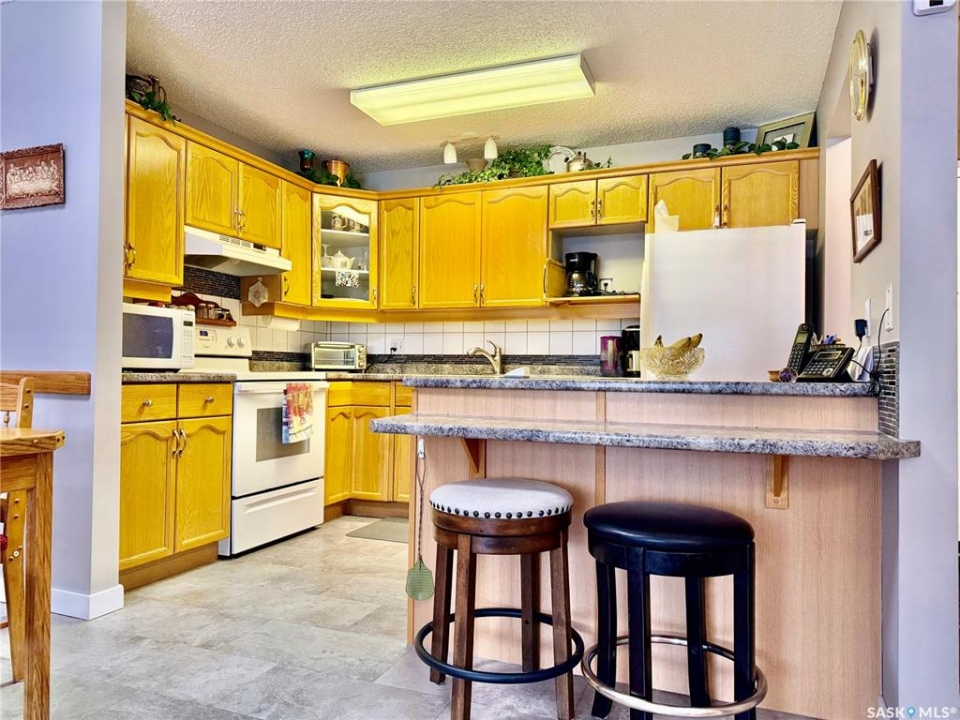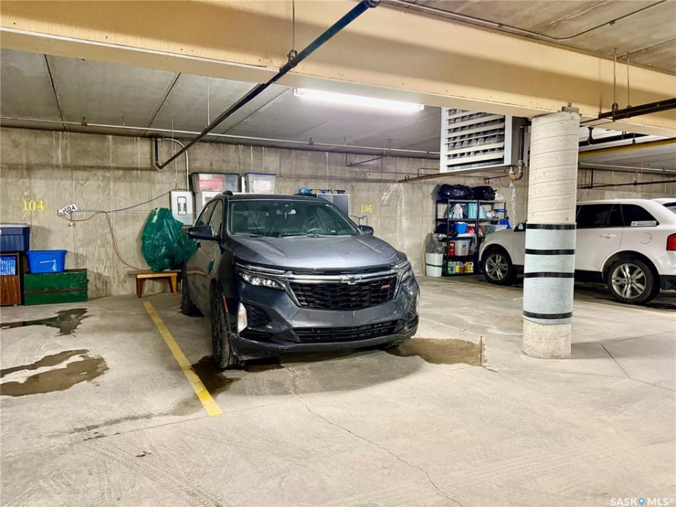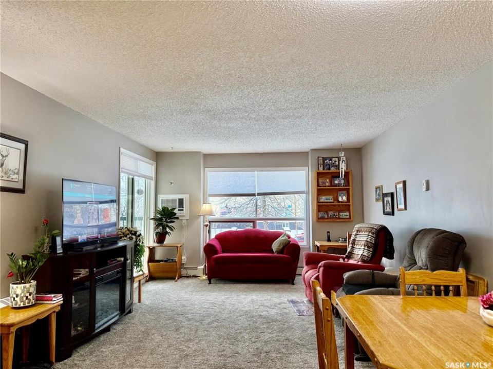 Enjoy beautiful sunsets from this well-appointed 2-bedroom condo in Village Green, conveniently located close to downtown Humboldt. A welcoming entry opens into a bright, open-concept kitchen & dining area designed for both everyday living and entertaining. The kitchen features oak cabinetry, updated countertops, & a functional island complete with eating counter and built-in storage drawers. The adjoining dining area flows seamlessly into the living room, creating an inviting and comfortable layout. There are multiple hallway closets for storage. The living room is filled with natural light from large windows & patio doors that lead out to the balcony—an ideal spot to enjoy evening sunsets or relax with your morning coffee. Both bedrooms are well sized, with the primary bedroom offering a walk-in closet. A 4-piece bathroom with tub/shower features newer flooring and a clean, modern feel. In-suite laundry adds everyday convenience and includes shelving. This unit includes one heated underground garage parking stall with a storage cabinet, as well as an additional parkade storage locker. Updates include: kitchen & bathroom countertops, fridge, and select light fixtures in 2013. Kitchen, hallway, and bathroom flooring were updated approx. 3 years ago, while the living room carpet is approximately 2 years old. The stove is about 7 years old, the built-in dishwasher approx. 2-3 years old, and several rooms have been painted over the past few years. This well-maintained building boasts a variety of amenities, including a comfortable common room for socializing & relaxing, a guest suite, elevator access, wheelchair accessibility, & secure heated underground parking. A fantastic opportunity for low-maintenance condo living in a convenient location—call today to arrange your private viewing. Form 917 - Direction Regarding Offer Presentation - There shall be no presentation of offers as per the Seller's instruction until 1:00 p.m. on mm 02 dd 09 yyyy 2026.