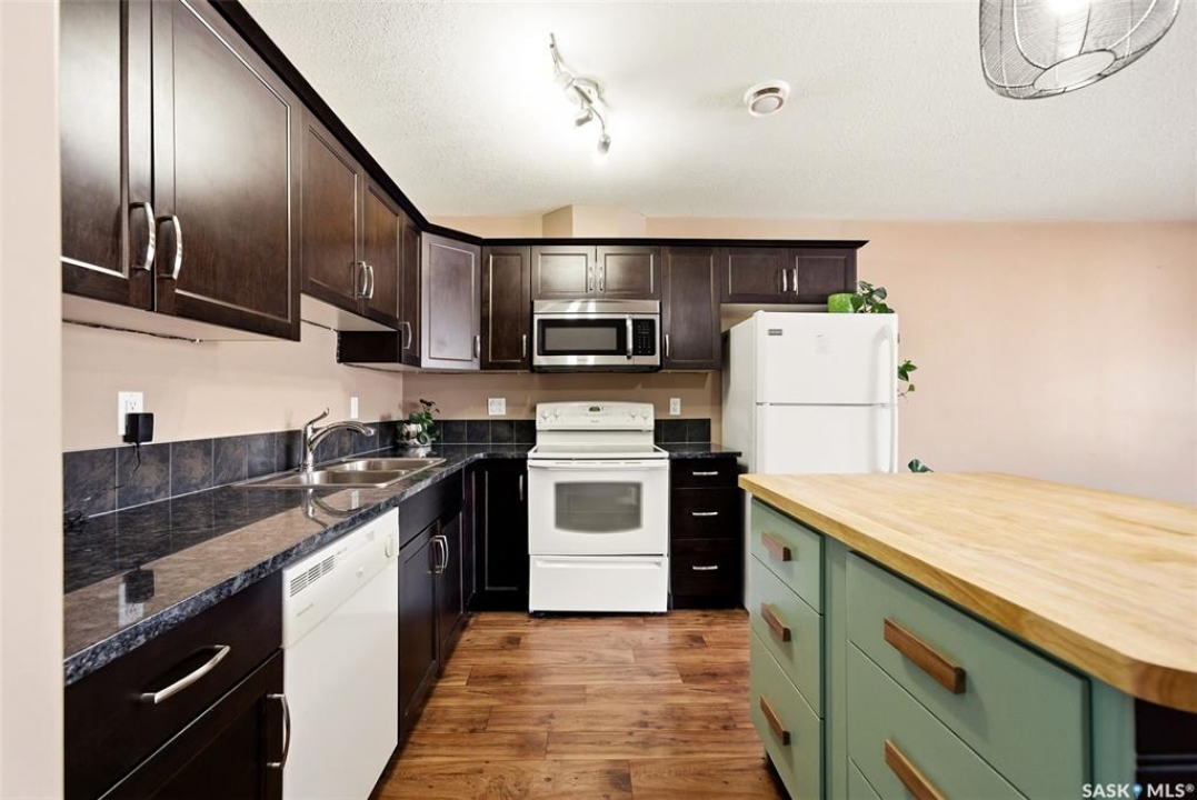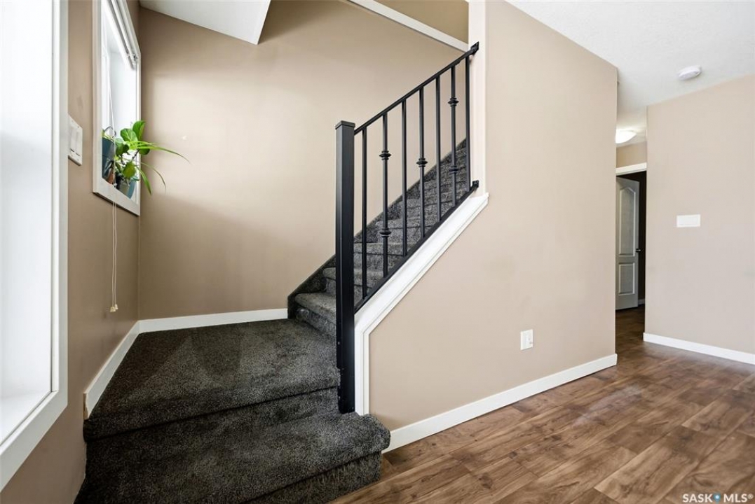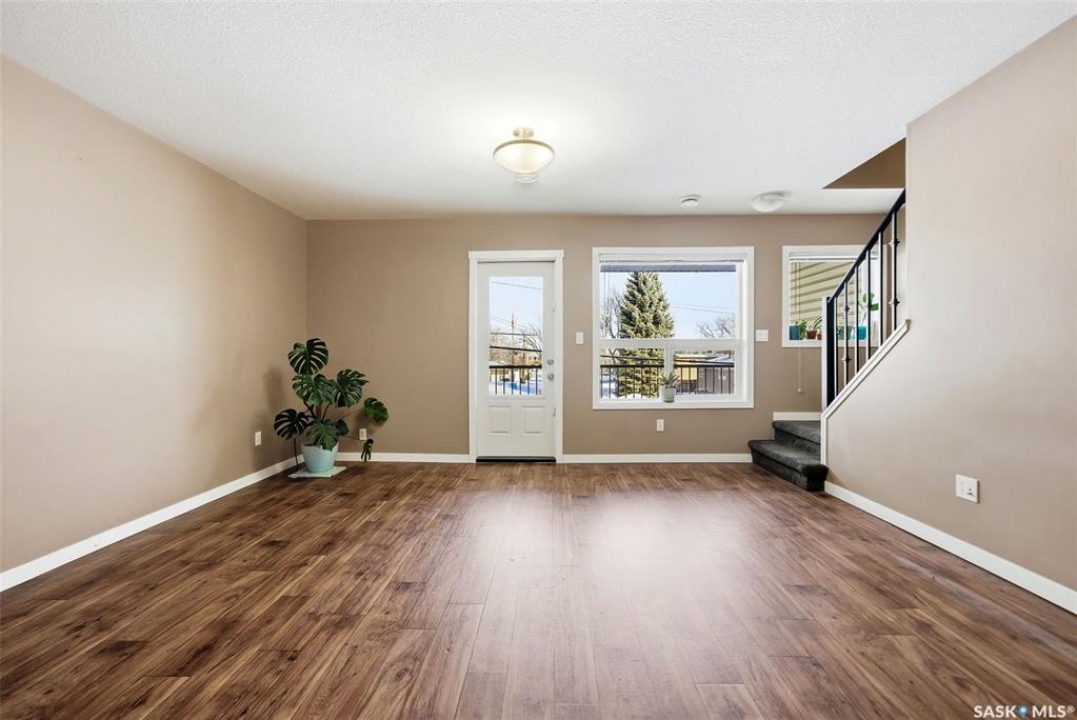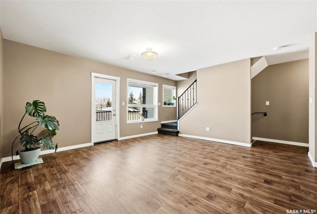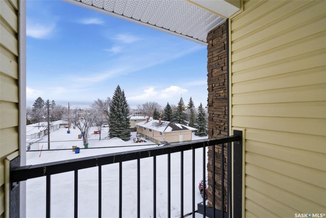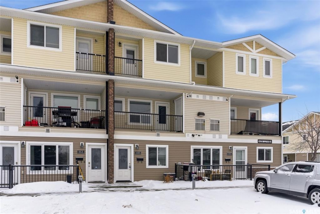 Welcome to #110-1210 Empress Street! This well-appointed 2-bedroom, 3-bathroom townhouse-style condo located in the heart of a quiet, established Rosemont neighbourhood. Built in 2013, this home offers a functional multi-level layout with thoughtful finishes throughout. The main floor features mid-brown hardwood laminate flooring, large windows that fill the space with natural light, a convenient 2-piece bathroom, and a well-designed kitchen with stainless steel appliances, granite countertops, and rich espresso cabinetry. From the kitchen, step out to your private patio—perfect for summer evenings or morning coffee. Upstairs, the primary bedroom includes a spacious walk-in closet and a 4-piece ensuite. The second bedroom offers its own private balcony, while an additional 4-piece bathroom, laundry closet with stackable washer and dryer, and linen storage complete the upper level. This unit comes with two electrified parking stalls directly in front of the door and is part of a well-maintained complex featuring a play structure. Condo fees include: snow removal, lawn care, building maintenance, garbage and recycling, electricity for parking stalls, and reserve fund contributions. Pets are permitted with restrictions on size and number. Ideally located just two blocks from No Frills and Shoppers Drug Mart, half a block from Martin Collegiate, and within walking distance of Luther High School, Rosemont and Walker Elementary schools. Enjoy nearby access to A.E. Wilson Park and scenic walking and biking paths, with quick connections to Lewvan Drive, Harbour Landing, downtown Regina, and Rochdale Boulevard. A fantastic opportunity to enjoy low-maintenance living in a family-friendly, well-connected community.