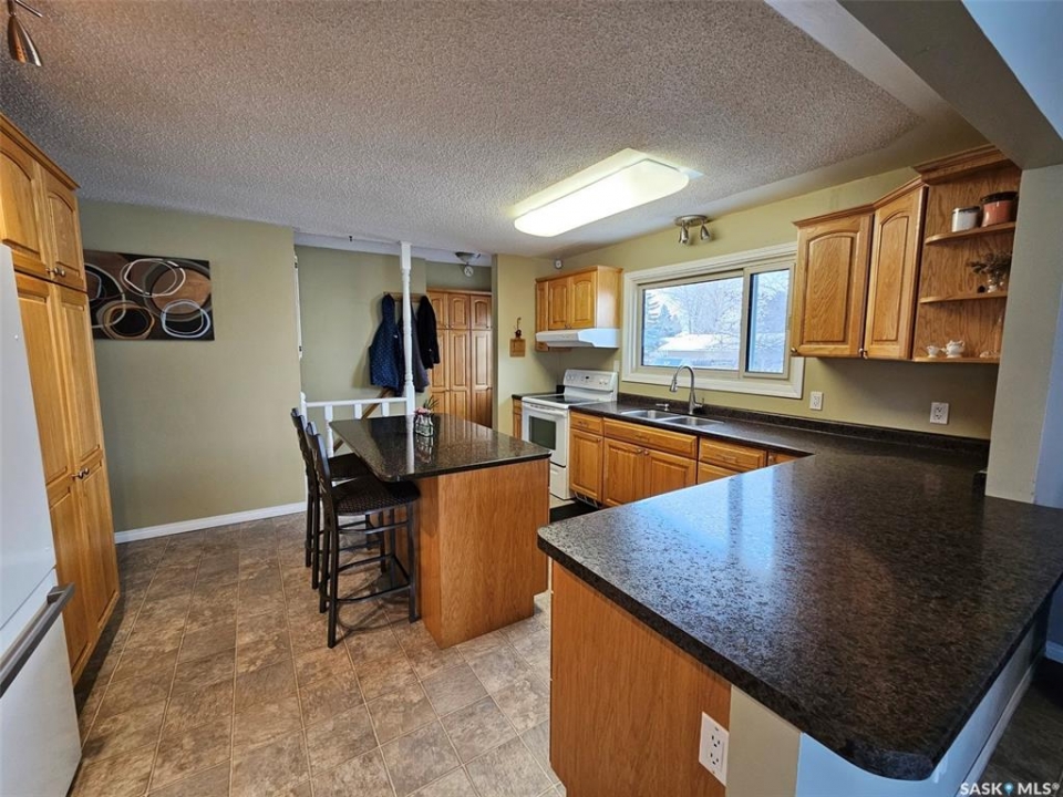Welcome to 35 Mountain Drive, a spacious and modernized 4-bedroom home on a large, fully fenced corner lot boasting many features including a bright south-facing sunroom with vaulted cedar ceiling provides an inviting entry and additional living space. The main level features an open layout with an extensive island kitchen, dining area, and living room with large bow windows. Patio doors and backyard access lead to a raised deck with natural gas BBQ hookup overlooking the private yard. The renovated kitchen offers quartz island, ample cabinetry, pull-out drawers, pantry, and organizers. Upstairs includes three bedrooms, an updated 4-piece bath, and a generous primary bedroom with double closets, 2-piece ensuite, and laundry chute. The lower level offers a cozy family room with natural gas fireplace, a 4th bedroom or den, spacious laundry with folding counter, and renovated 2-piece bath. An additional level provides a rec room, utility space with high-efficiency furnace (2010), 60-gal hot water tank (2016), and cold storage. The fenced backyard features RV parking, 8' x 12' shed, raised garden beds, and fire pit. A single detached garage with motorized door adds convenience. Upgrades include kitchen reno (2013) and metal roof (2022). A great home in a desirable location—schedule your private viewing today.
