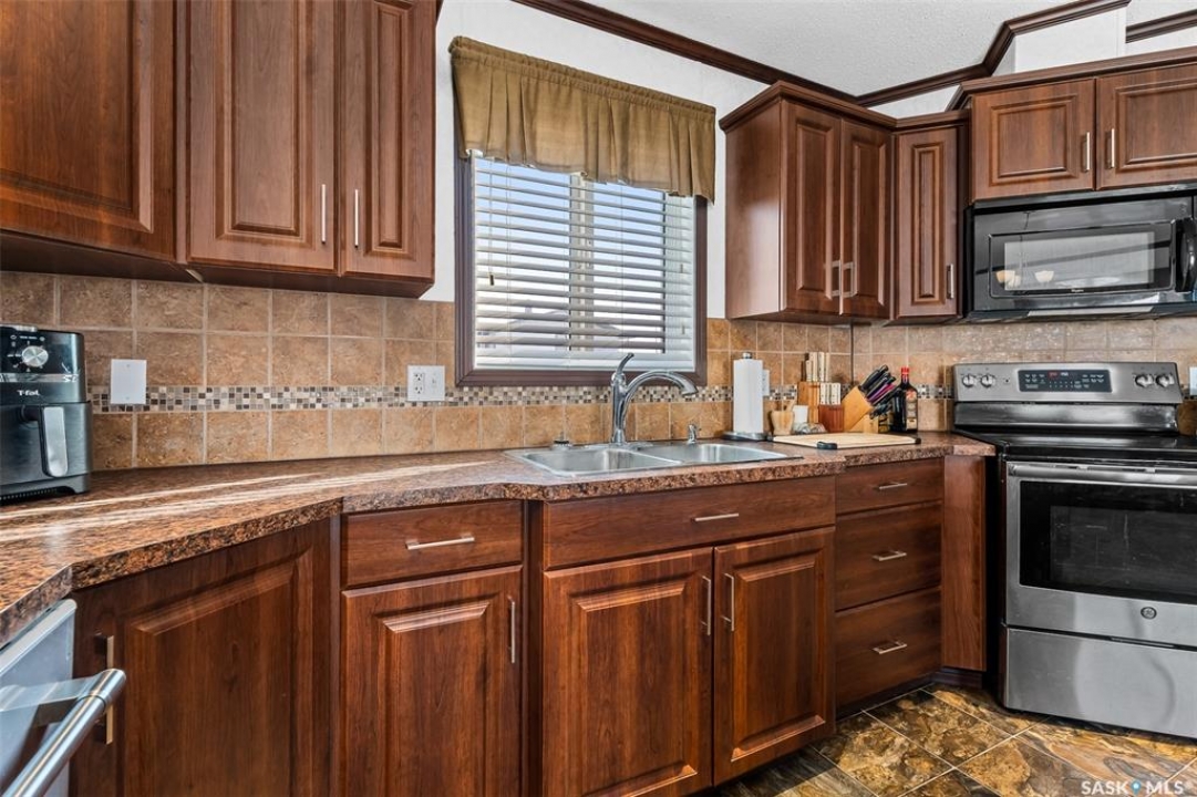 Looking for modern and easy living in the bustling town of Chamberlain? This 2012 modular home boasts 3 beds / 2 baths and more than 1,500 sq.ft.. This home is situated on a huge corner lot which is 3 separate lots (78' x 130') giving you lots of space for both parking and a large backyard! Coming inside you are greeted by a nice size foyer with a coat closet. You then enter the spacious living space - complete with vaulted ceilings! The open concept living, dining and kitchen are sure to be the heart of the home! The kitchen boasts lots of cabinets / counter space, a walk-in pantry, an island and a stainless steel appliance package. Off the kitchen we find a mudroom complete with laundry setup and access to your backyard. At one end of the home we find a massive primary suite with a walk-in closet and a huge 4 piece ensuite boasting a huge corner soaker tub! This primary suite is hard to compare! At the other end of the home we have 2 more good sized bedrooms along with a 4 piece bathroom. The backyard is fully fenced, features a deck and patio - the perfect place for pets and kids to hang out! The bustling town of Chamberlain is located right along Highway #11 between Saskatoon and Regina - located about 30 minutes from Moose Jaw and 50 minutes from Regina. Reach out today to book a showing!
