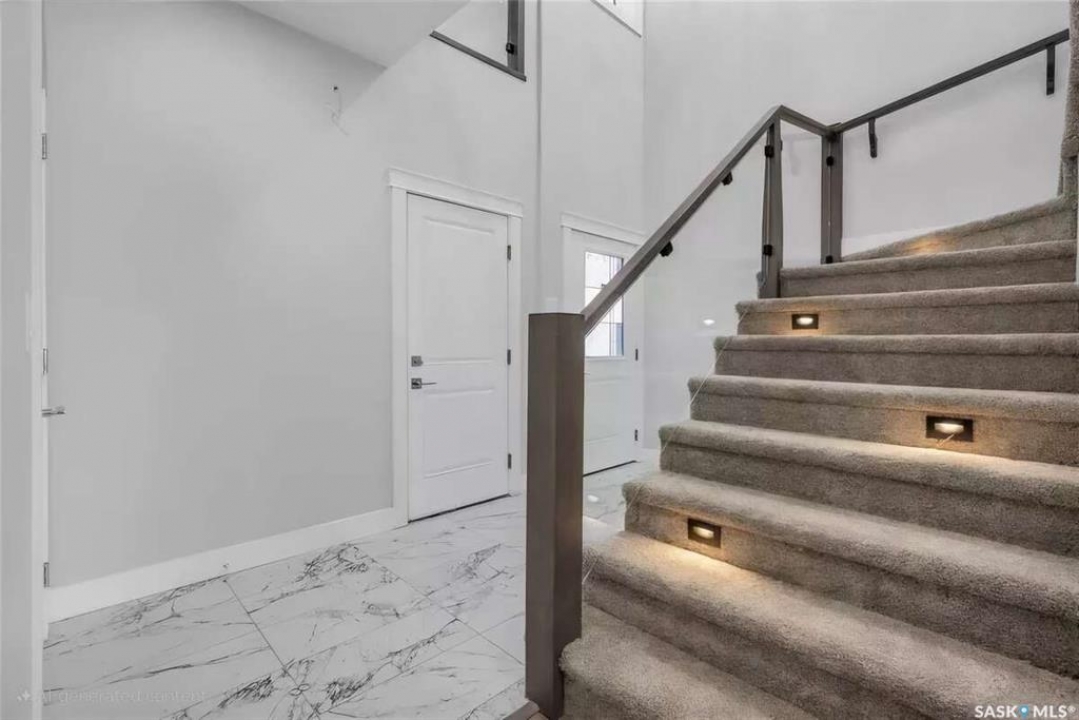 For more information, please click the "More Information" button. Welcome to this beautifully crafted custom home located in the heart of Brighton, one of Saskatoon's most sought-after communities. Thoughtfully designed with space, light, and comfort in mind, this home offers an ideal balance of elegance and everyday functionality. The striking tall front entry creates an impressive first impression, leading into a grand double-height foyer filled with natural light and open sightlines. The open-concept main floor is perfect for both family living and entertaining, featuring a spacious living room with a modern fireplace and large windows that flood the space with sunlight. The dining area flows seamlessly into the kitchen, making everyday meals and hosting effortless. The gourmet kitchen is both stylish and practical, offering premium cabinetry, elegant finishes, and generous counter space. A fully equipped spice kitchen adds exceptional convenience, ideal for preparing aromatic or oily dishes while keeping the main kitchen clean and show-ready. Upstairs, the home is designed with families in mind, offering four well-appointed bedrooms and a versatile bonus room suitable for a home office, media room, or play area. The primary suite serves as a private retreat with a large walk-in closet and a stylish 4-piece ensuite. Two additional bedrooms share a convenient Jack & Jill bathroom, combining comfort and practicality. From the elegant staircase overlooking the foyer to the abundance of natural light throughout, this home feels bright, welcoming, and timeless. Located close to parks, walking paths, schools, and amenities, this is a perfect opportunity for families seeking a modern, high-quality home in one of Saskatoon's best neighborhoods.