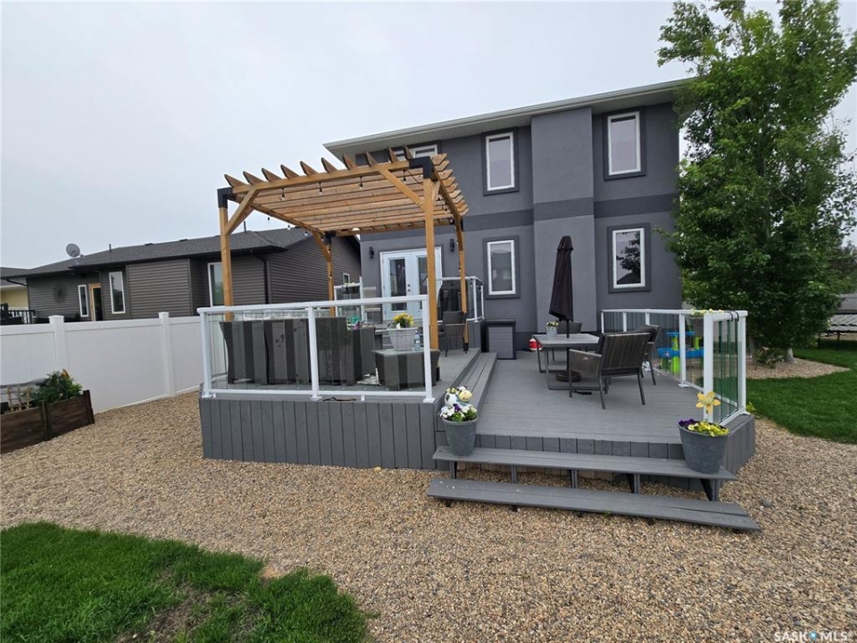 Welcome to this spacious and well-appointed 6-bedroom, 4-bathroom home offering 2,191 sq. ft. of living space over two levels, plus a fully finished basement. Built in 2011, this grey stucco home sits on an oversized lot in one of Weyburn's most family-friendly neighborhoods, close to schools, parks, and walking paths. Step inside to a bright and versatile den just off the front entry - perfect for a home office, sitting room, or additional living space. A convenient half-bath, laundry area, and direct access to the attached double garage complete this main-level layout. The heart of the home is the open-concept kitchen, featuring tile floors, a central island with seating, ample cabinetry, and excellent sightlines to the dining room. Whether hosting guests or enjoying a quiet meal, the adjoining dining area is a perfect gathering spot. Patio doors lead to a large back deck overlooking a fully fenced yard, complete with a play structure—ideal for summer BBQs with the kids and pets. The cozy living room includes a fireplace, creating a warm ambiance that's perfect for everyday living or entertaining. Upstairs, a bonus area at the top of the stairs offers great flexibility as a media room, homework hub, or kids' play zone. Three well-sized guest bedrooms and main bath provide accommodation and convenience for family or guests. The spacious primary bedroom features a walk-in closet and a private 4-piece ensuite, offering a quiet retreat at the end of the day. The fully finished basement adds even more living space, boasting a large family room - great for movie nights or game days, two additional large bedrooms, a 3-piece bathroom, and a spacious utility/storage room for all your seasonal and household needs. With thoughtful design, modern finishes, ample space for the whole family, and a fantastic location in Weyburn's desirable northeast corner, this move-in-ready home is a true standout. A must-see for anyone looking for comfort, space, and a welcoming neighborhood.