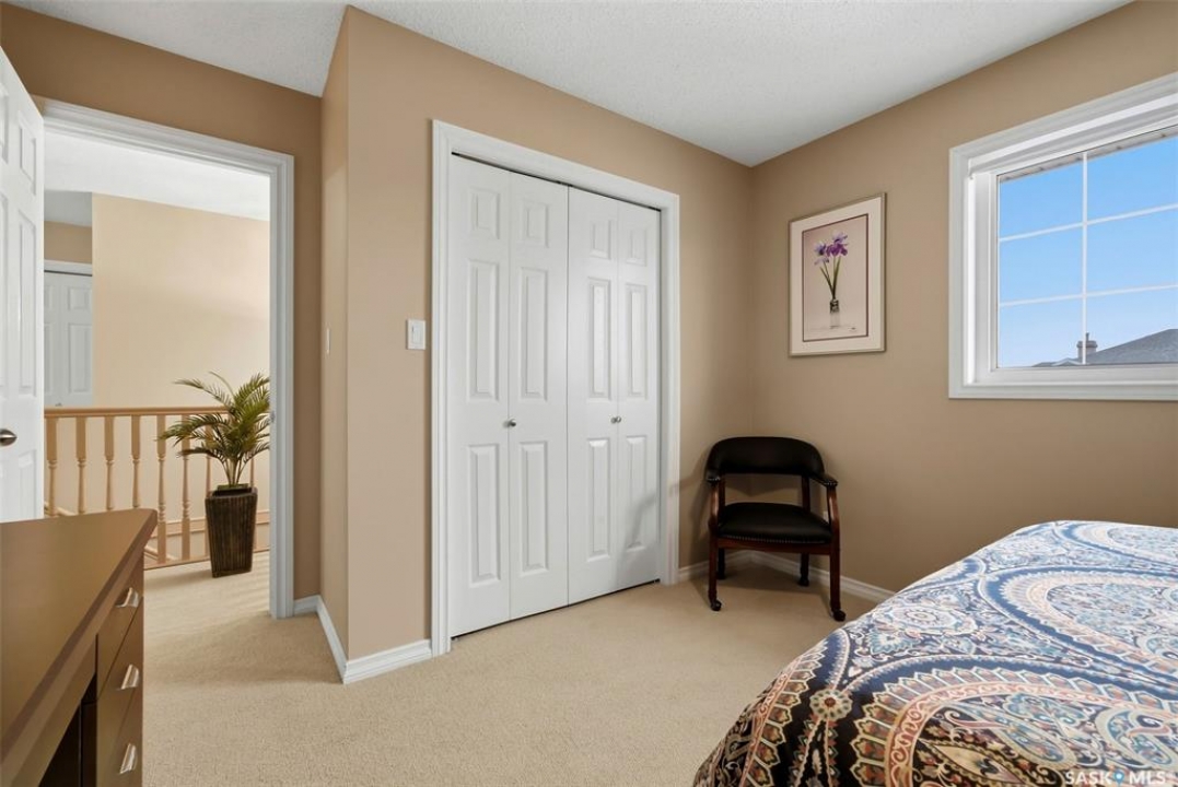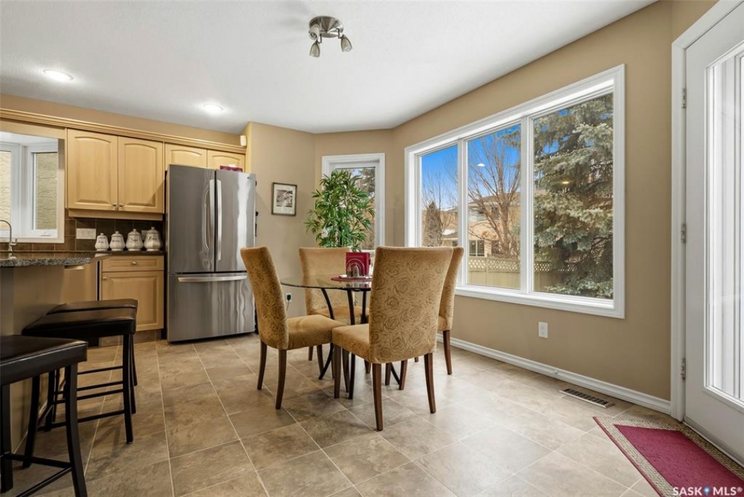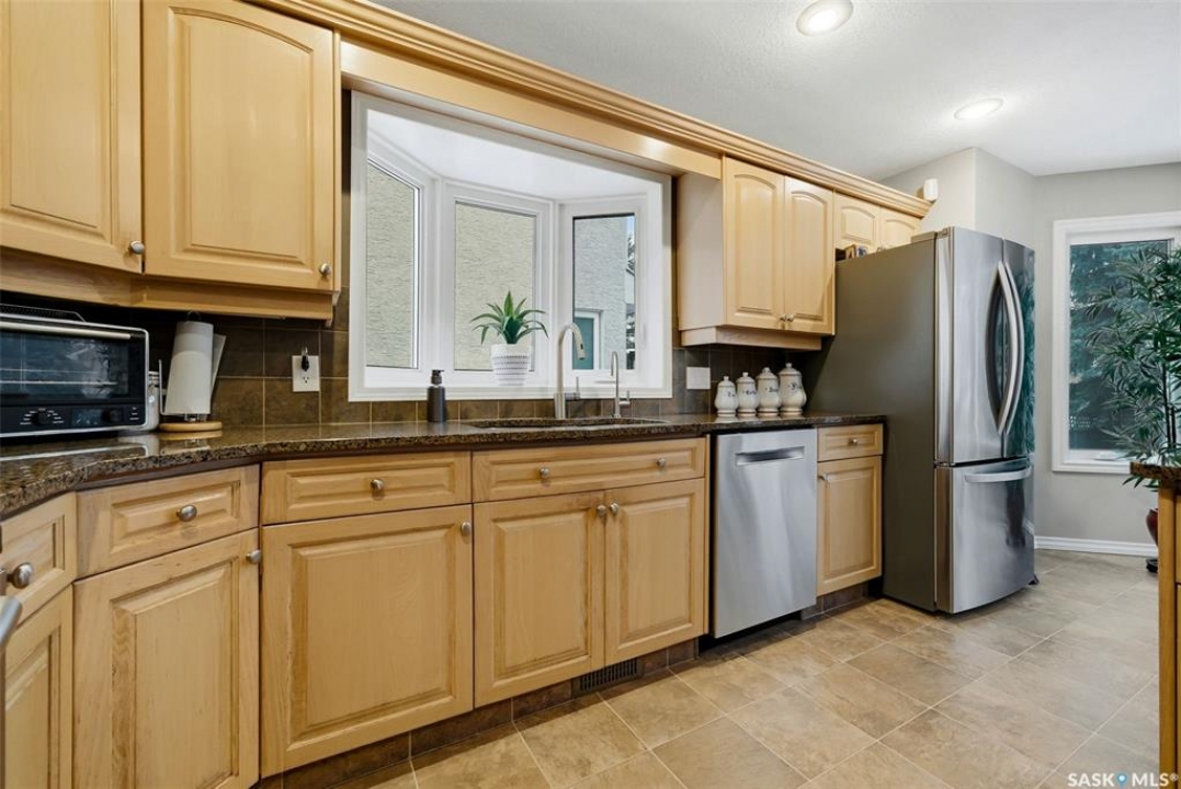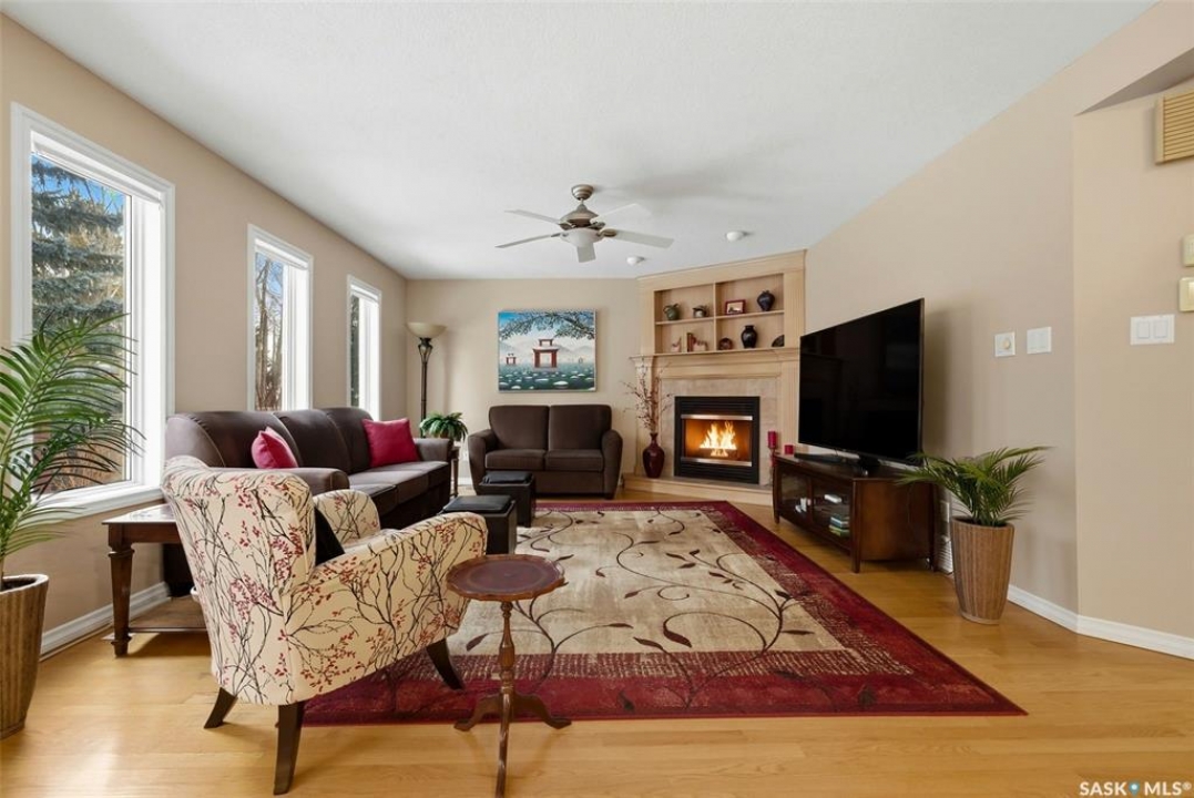 Located in a highly desirable neighbourhood, this impressive 2,510 sq. ft. custom built Munro home offers exceptional space, functionality, and family-friendly living. With 5 bedrooms, including two featuring custom built-ins, and a huge primary suite, this home is perfect for growing families or those needing flexible work-from-home space. The welcoming foyer features a built-in bench and opens to a bright formal living room with a large picture window and one of two gas fireplaces, flowing seamlessly into the formal dining area. Hardwood floors continue into the family room, where the second gas fireplace is complemented by built-in shelving. The spacious kitchen offers abundant cabinetry and counter space with granite countertops, plus a sunny eating nook with direct access to the beautifully landscaped backyard and patio—ideal for entertaining and family gatherings. The main floor is completed by a convenient half bath/laundry room and direct entry to the double attached garage. Upstairs, the oversized primary bedroom is a true retreat, featuring a walk-in closet and a luxurious ensuite with soaker jet tub. Three additional bedrooms complete this level, including one with built-in desk and storage, along with a full four-piece bathroom. The developed basement with a large recreation room, a framed fifth bedroom, and a beautifully renovated additional bathroom finishes off the lower level. The utility room includes built-in shelving, two high-efficiency furnaces (2011), central vacuum and attachments, triple pane windows on all levels installed in 2021. Shingles were replaced in 2015. A rare opportunity to own a spacious, well-maintained home in such a fantastic location. This one truly checks all the boxes.