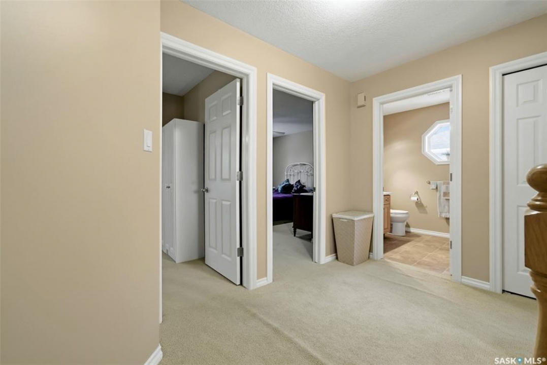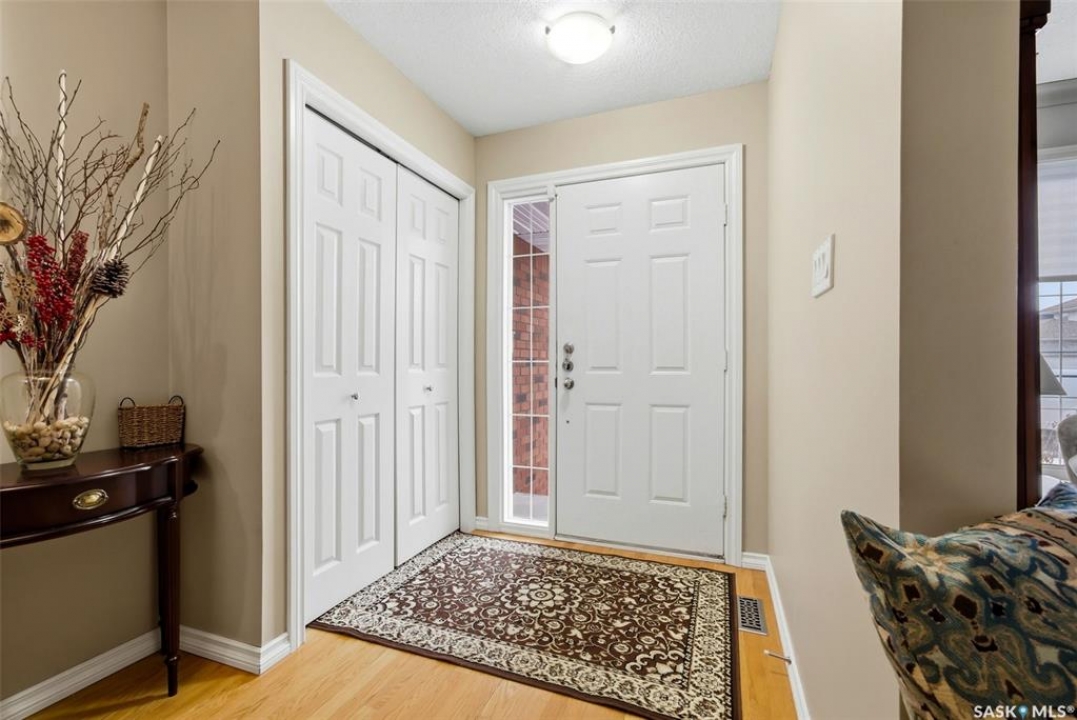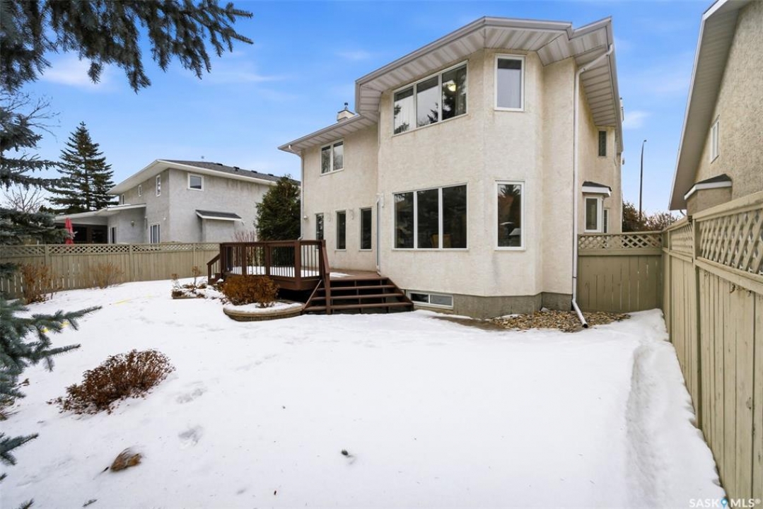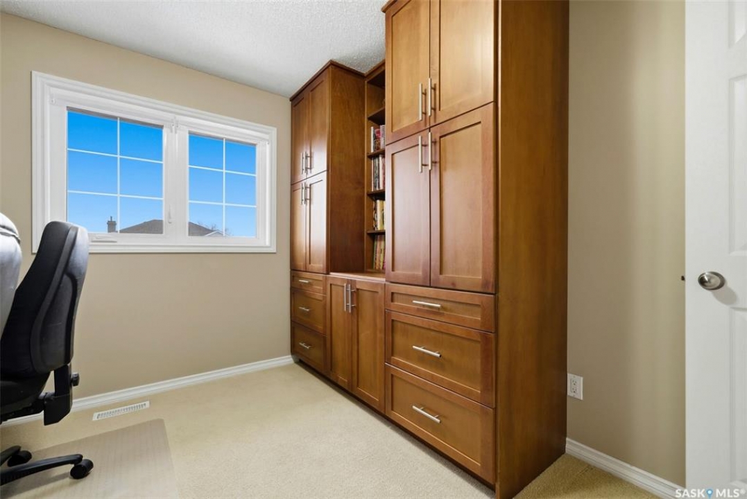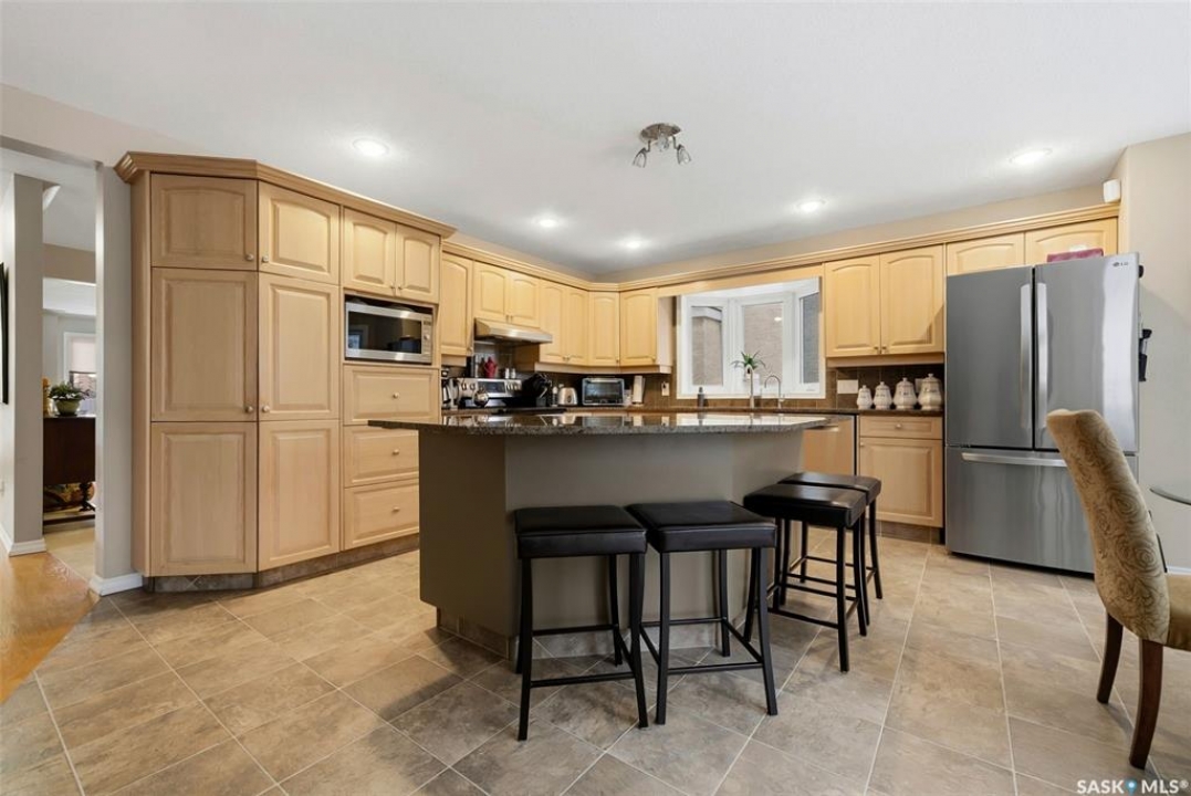 Located in a highly desirable neighbourhood, this impressive 2,510 sq. ft. custom built Munro home offers exceptional space, functionality, and family-friendly living. With 5 bedrooms, including two featuring custom built-ins, and a huge primary suite, this home is perfect for growing families or those needing flexible work-from-home space. The welcoming foyer features a built-in bench and opens to a bright formal living room with a large picture window and one of two gas fireplaces, flowing seamlessly into the formal dining area. Hardwood floors continue into the family room, where the second gas fireplace is complemented by built-in shelving. The spacious kitchen offers abundant cabinetry and counter space with granite countertops, plus a sunny eating nook with direct access to the beautifully landscaped backyard and patio—ideal for entertaining and family gatherings. The main floor is completed by a convenient half bath/laundry room and direct entry to the double attached garage. Upstairs, the oversized primary bedroom is a true retreat, featuring a walk-in closet and a luxurious ensuite with soaker jet tub. Three additional bedrooms complete this level, including one with built-in desk and storage, along with a full four-piece bathroom. The developed basement with a large recreation room, a framed fifth bedroom, and a beautifully renovated additional bathroom finishes off the lower level. The utility room includes built-in shelving, two high-efficiency furnaces (2011), central vacuum and attachments, triple pane windows on all levels installed in 2021. Shingles were replaced in 2015. A rare opportunity to own a spacious, well-maintained home in such a fantastic location. This one truly checks all the boxes.