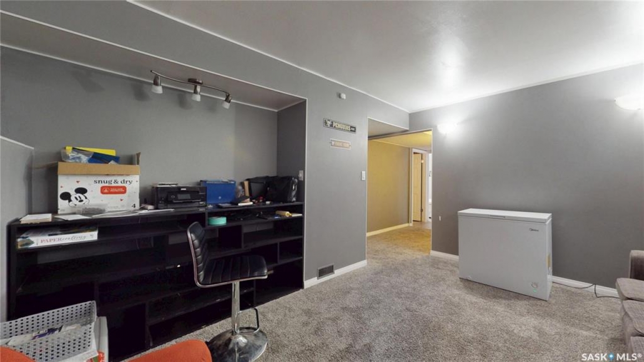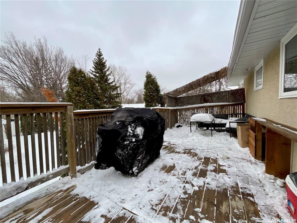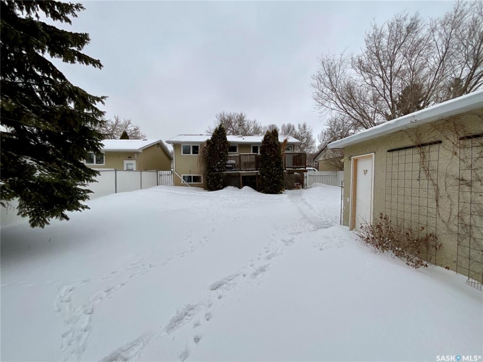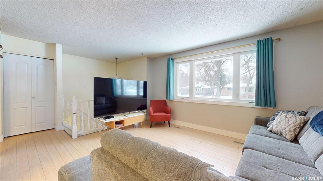 Welcome to this well-maintained bi-level home in Glencairn, offering a functional layout and great value for first-time buyers, families, or investors. The main floor features a bright living room, an eat-in kitchen with ample cabinet space, two bedrooms, and a full 4-piece bathroom. Durable laminate flooring runs through much of the main level. Downstairs, the fully developed basement adds valuable living space with a spacious recreation room, additional bedroom, den, storage area, and laundry located in the utility room. The home is heated by a natural gas forced-air furnace and includes central air conditioning for year-round comfort. Outside, you'll find a fully fenced yard with deck, lawn front and back, mature trees, and a single detached garage with concrete drive providing a total of three off-street parking spaces. Conveniently located close to schools, parks, shopping, and east Regina amenities, this home is move-in ready with room to add your own touches.