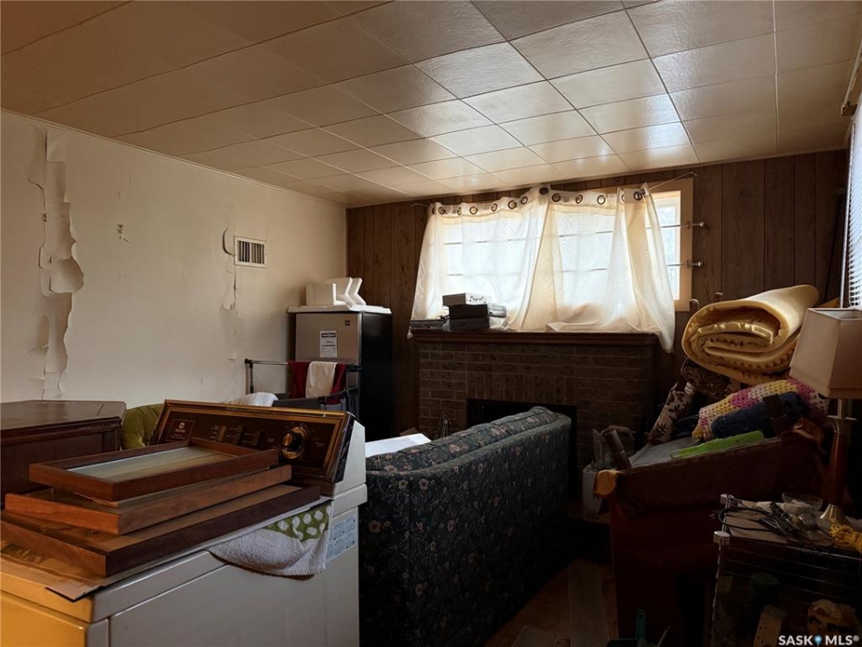 Welcome to this well-located home in a quiet and desirable South Hill neighbourhood. Situated on a large corner lot with mature landscaping, this property offers space, privacy, and excellent proximity to family-friendly amenities. A playground is located right beside the home, a convenience store and the Cornerstone School is just a couple of blocks away. The main floor features a decent size living room with large picture window, two bedrooms, a full bathroom, a spacious eat in kitchen with a built-in cabinet and lots of cupboards, and an abundance of original woodwork that adds character and charm throughout the whole main floor. An attached porch/sunroom overlooks the fully fenced backyard, providing a comfortable space to relax and enjoy the outdoors. The basement offers a wide stairwell for easy furniture access and includes two dens, a family room, and plumbing in place for a future bathroom. The basement does require some renovating, presenting a great opportunity for buyers to add value and customize the space to their needs. Outside, the property includes a single detached garage with heater -sold “as is” -off-street parking, a patio area, and a brick firepit—ideal for outdoor entertaining. Most furniture, appliances, and household items are included in the sale with no warranties or representations. Property is being sold “as is.”
