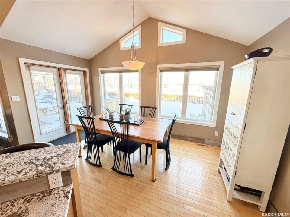 Welcome to 785 Washington Drive — a stunning custom-built bungalow on the edge of Weyburn with wide-open prairie views. This A-frame style home offers tonnes of living space with a bright, open main floor centered around a show-stopping floor-to-ceiling stone fireplace. The great room flows beautifully into the kitchen and dining area, complete with custom cabinetry and massive windows that bring the outdoors in. The primary suite is its own retreat with deck access, walk-through closets, and a spa-like ensuite. Two additional bedrooms, a full bath, and a large bonus loft space round out the main level. Downstairs, the huge in-floor heated basement offers endless options for entertaining, workouts, media space, plus two more bedrooms and a flex room. Outside, enjoy the two-tier deck, custom pergola with swing, underground sprinklers, and gas hookups — perfect for relaxing or hosting. This home has seen extensive updates, including granite countertops, updated flooring, custom shower, new shingles, fresh paint throughout, new lighting, high-efficiency furnace, on-demand water heater, and more. Big home, beautiful views, and tons of upgrades — this one truly has it all. Reach out to your favourite Agent to book your private showing.