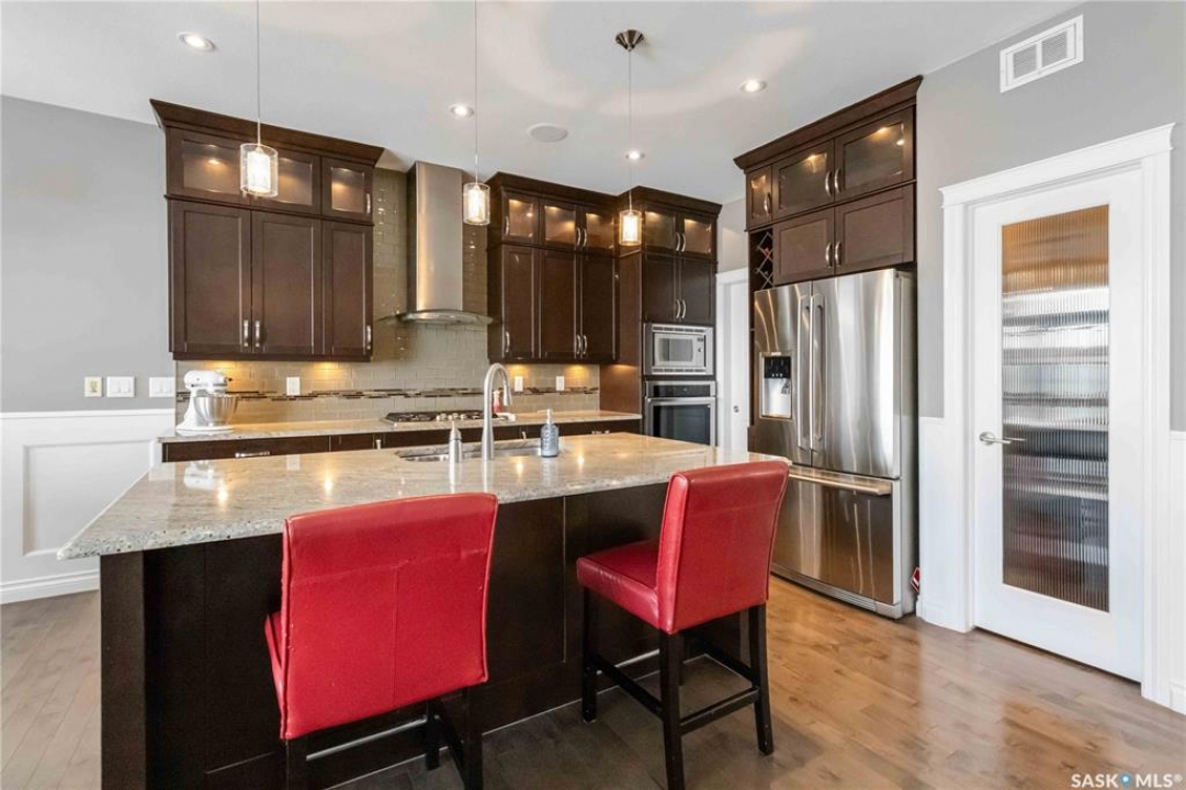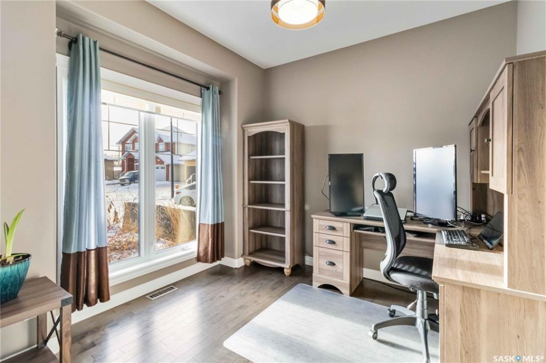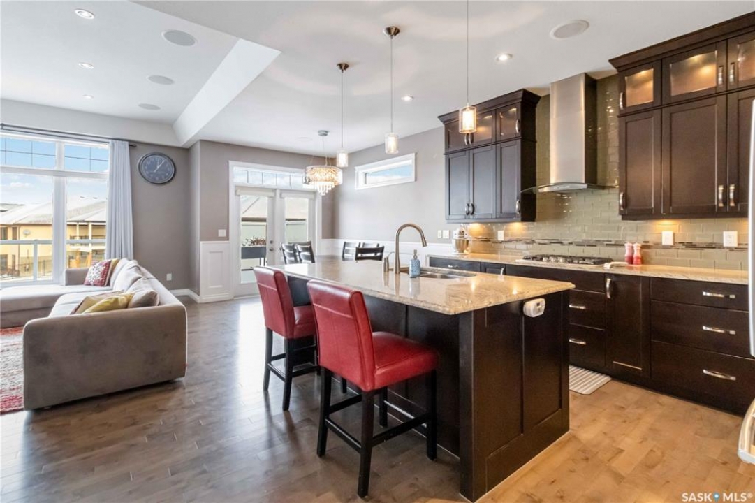 This custom 1,617 sq. ft. walkout bungalow in Willowgrove, perfectly positioned on a quiet terrace and backing the park. Bright, open main floor with den off the foyer, large living and dining spaces, and a gas fireplace with custom cabinetry overlooking green space. Kitchen offers ceiling height cabinets, granite countertops, a large island, walk in pantry, and built-in oven. Primary suite features a soaker tub, tiled shower, and walk in closet second bedroom and full bath complete the main level. Hardwood flooring throughout all main living areas and bedrooms no carpet. The walkout basement is spacious and filled with natural light, featuring a 3 sided gas fireplace, custom wet bar with sink and dishwasher rough in, two additional bedrooms, and a full bathroom. High quality laminate installed on the stairs and throughout the lower level. Additional upgrades include 9' ceilings on both levels, built in sound system in most rooms, granite throughout, central air, and central vac. Low maintenance front landscaping, upper deck and lower patio for enjoying park views and sunsets. Close to schools, walking paths, and shopping an ideal blend of location, luxury, and functionality.