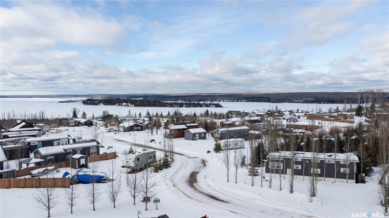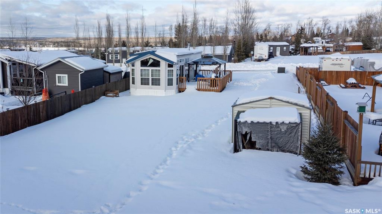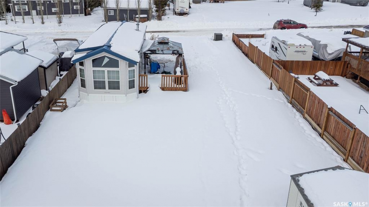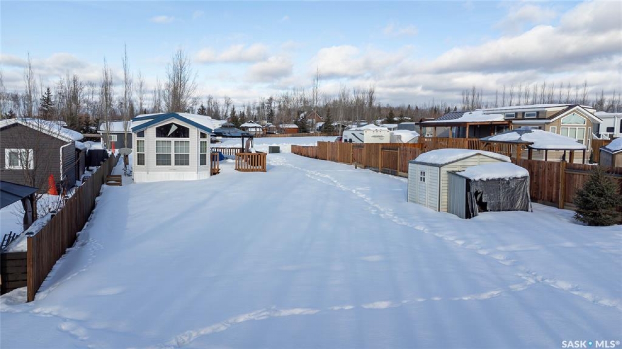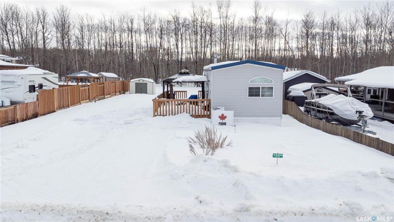 A fantastic all season escape at Lac Des Iles in Lauman's Landing. This beautiful park model trailer offers an easy retreat with the comforts of home. A full-length deck with gazebo backs onto the trees, creating a private and relaxing outdoor space, and the living room also has a southern exposure and a view of the forest. Furniture is included, so you can arrive and start enjoying right away. The layout is designed to sleep up to eight people comfortably, with built-in wardrobes in each bedroom, extra storage under the primary bed, double bunks in the second bedroom, and lofted ceilings for excellent headroom. A pullout in the living room adds even more flexibility for guests. There is a full hook-up RV spot for visitors, an 8x8 storage shed for your toys, and a woodshed to keep firewood handy for evenings around the backyard fire pit. The lake and a playground are just a short walk away, perfect for kids and adults alike. This property is only about 10 minutes to Goodsoil for groceries and essentials. Golf enthusiasts are minutes from Northern Meadows Golf Club, a well-regarded 18-hole course. It's approximately 45 minutes from Cold Lake and Meadow Lake, just over 4 hours to Edmonton and around 4 hours to Saskatoon for a full range of services and amenities. Whether you are looking for a seasonal getaway or a low-maintenance retreat, this property checks all the boxes.