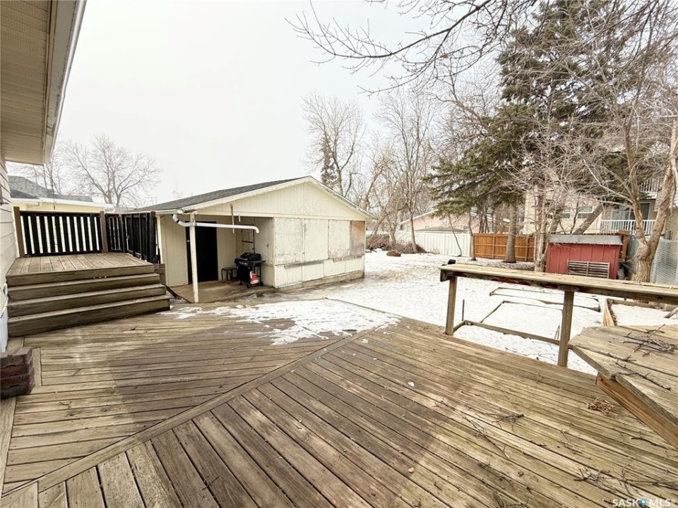Welcome to 223 4th Street, right in the heart of downtown Weyburn! This home features a modern, updated kitchen with stylish cabinetry, countertops, and stainless steel appliances. Just off the kitchen is a bright, cozy living room, plus two good-sized bedrooms and an updated 4-piece bathroom on the main floor. Downstairs offers extra space for the family with a rec room for the kids, a third bedroom, a renovated 3-piece bathroom, and laundry with plenty of storage. Out back, you'll love the private, fully fenced yard—perfect for pets—complete with a two-tiered deck, shed, single garage, and a great fire pit area for relaxing evenings. Priced right and move-in ready, this is one you'll want to see. Call your favourite agent to book a showing!