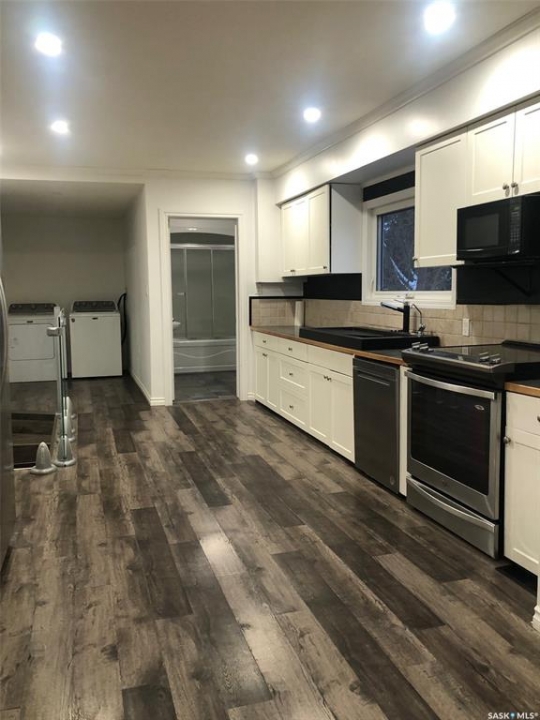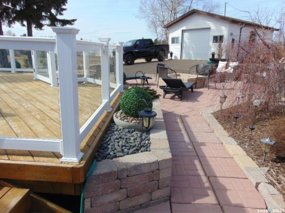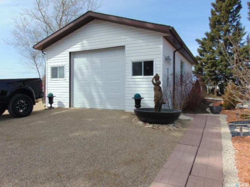 PARADISE AWAITS YOU IN THE TOWN OF NORQUAY SK!... Welcome to 224 Service Road. Upon arrival you are greeted to an exquisite design and unique parklike setting capturing beauty with modern day design. Do you dream about having a luxurious back yard with a state of the art patio area? This beautiful oasis is sure to tick off all the boxes boasting professional landscaping and meticulous design throughout! The spectacular views can be viewed along the edge of town on an elevated massive lot measuring 75' x 234'. Upon entry quality meets your eye... a spectacular wrap around deck, glass railing with a custom patio/firepit finished in quality stone, barkman products and tall majestic spruce trees that overlook the lush greenery of such a dreamy escape!. The backyard expands way back to an orchard of cherry, grape, saskatoon and apple trees as well as the detached 20 x 30 insulated garage with automatic garage door opener. Inside enjoy the fresh and brightly lit interior that features vaulted ceilings and skylights while cozying up to the wood burning fireplace. A large foyer upon entry connects to the open concept design leading to a state of the art functional kitchen featuring stainless steel appliances, built in dishwasher and Blanco Modex M60 granite sink. The main floor has been extensively updated with new paint, flooring, triple pane windows, kitchen cabinets, electrical, lighting, patio doors, and added insulation. Featured is main floor laundry and a second laundry facility in the basement. With 2 bedrooms, 2 baths and 1,156 square feet of living space this would make a great starter or retirement home. Norquay provides all basic amenities; k-12 school, gas station, grocery & hardware store, restaurants, and much more! One must view to appreciate, call for more information or to schedule a viewing. Taxes:$2,200/year. Heating; Natural gas/forced air; RO town water and town sewer.