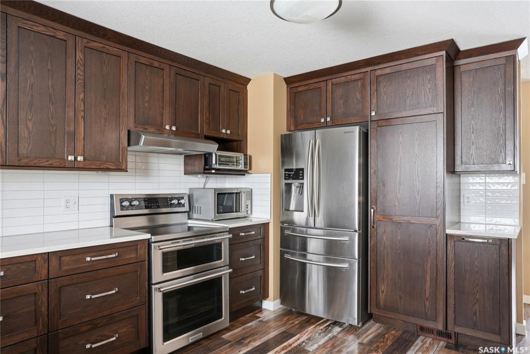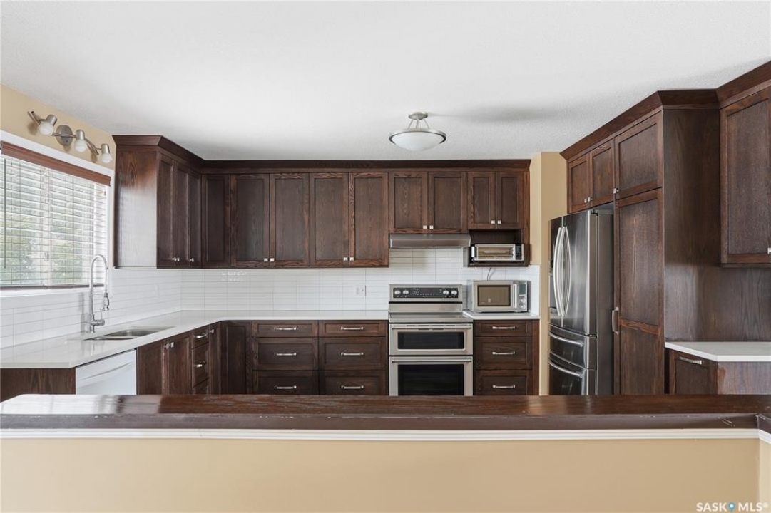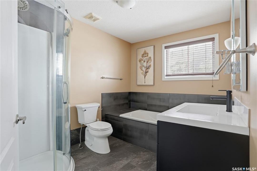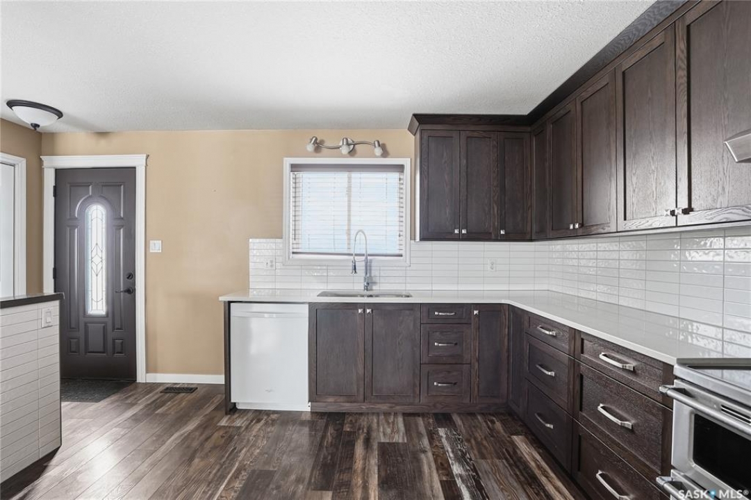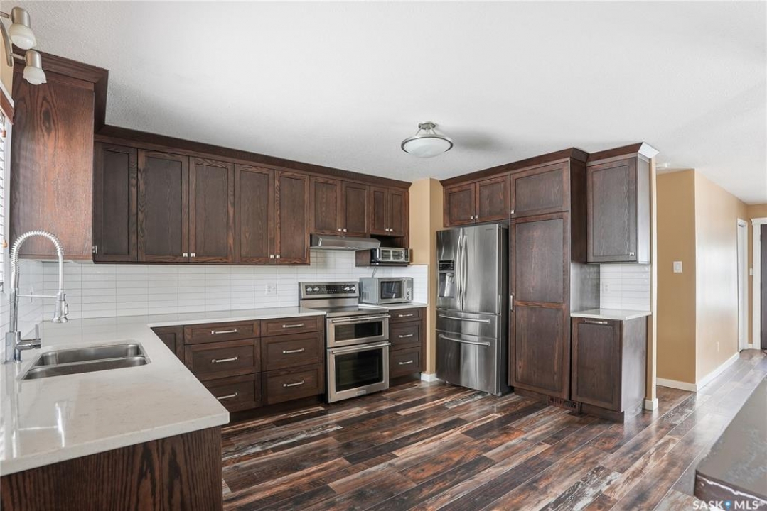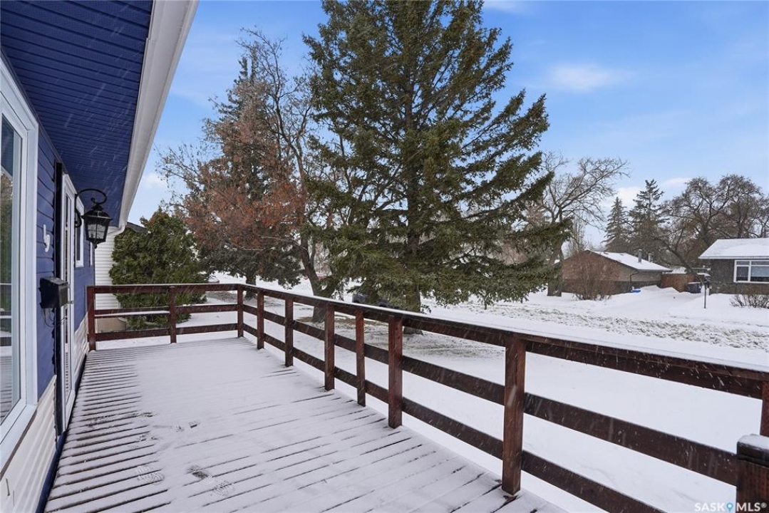 Great Family Home in Martensville! This 1,140 sq ft, 4-bedroom bungalow offers a bright and open floor plan. Step into a spacious entry and a large living room open to a beautiful kitchen featuring newer cabinets, quartz countertops, a pull-out pantry, and stainless steel appliances. The generous dining area has garden doors to the deck, perfect for outdoor entertaining. The primary bedroom includes a walk-in closet, and the main bathroom has been upgraded with a soaker tub and a freestanding shower. The lower level just needs some finishing touches but already includes a large family room, two bedrooms, a bathroom foundation, laundry and plenty of storage. Outside, you'll enjoy a lovely large mature yard, a wraparound deck, and a double drive-thru garage. This well-maintained home has seen many recent improvements, including a newer kitchen and bathroom, newer flooring, shingles, deck, water heater as well as upgraded windows and a maintenance-free exterior. An excellent location in Martensville!