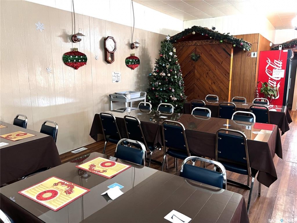 The only restaurant for miles around. Both the Chinese and Western dishes are extra delicious. Well know for it's friendly and timely service this restaurant is immaculate. A place where the locals meet for coffee, to dine in or to takeout they are never disappointed with the food or the service. The dining area is large an holds 12 tables and has 2 bathrooms. There is also plenty of room in the dining room to set up a row of steam tables for a smorg. The kitchen is very well organized and the equipment has been well maintained. Need a place to live no problem the living quarters at the front of the building has 2 bedrooms, living room and bathroom. Fox Valley is a busy community is SW Sask. with lots of young families. The surrounding farming community along with the town make up a population that is very supportive of the restaurant. All measurements ae approximate and all information is supplied by SAMA and the Owner's and can be verified by prospective Buyer's.