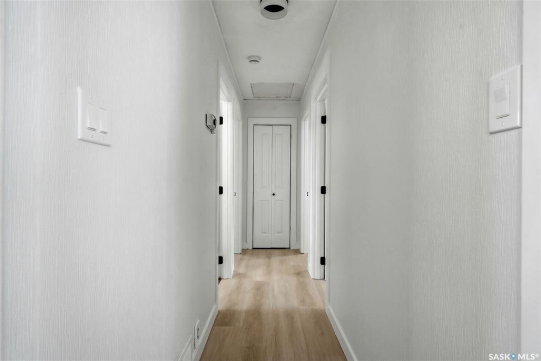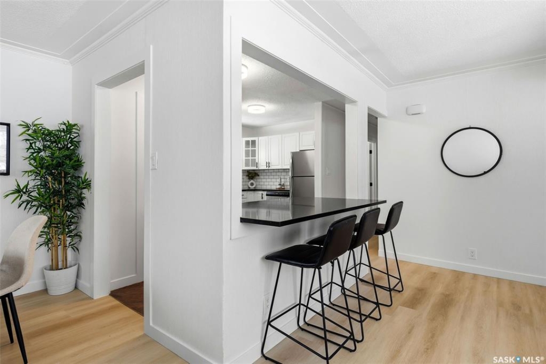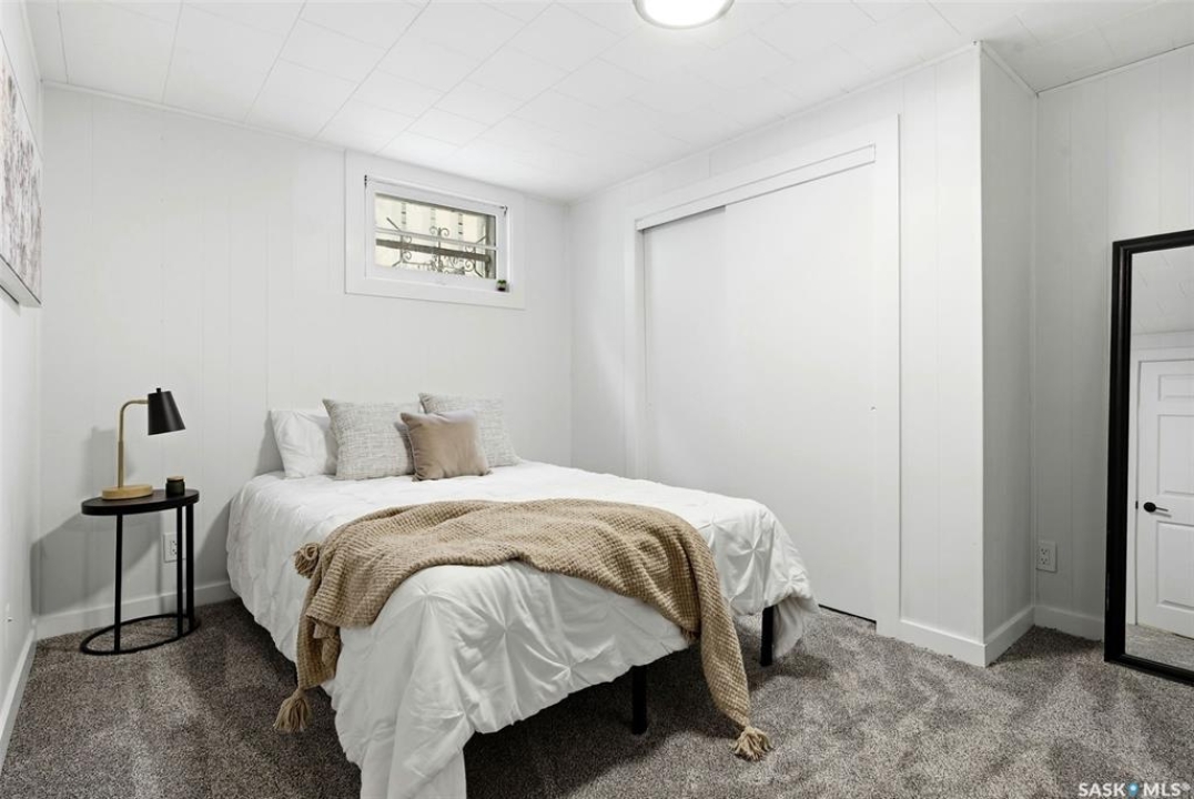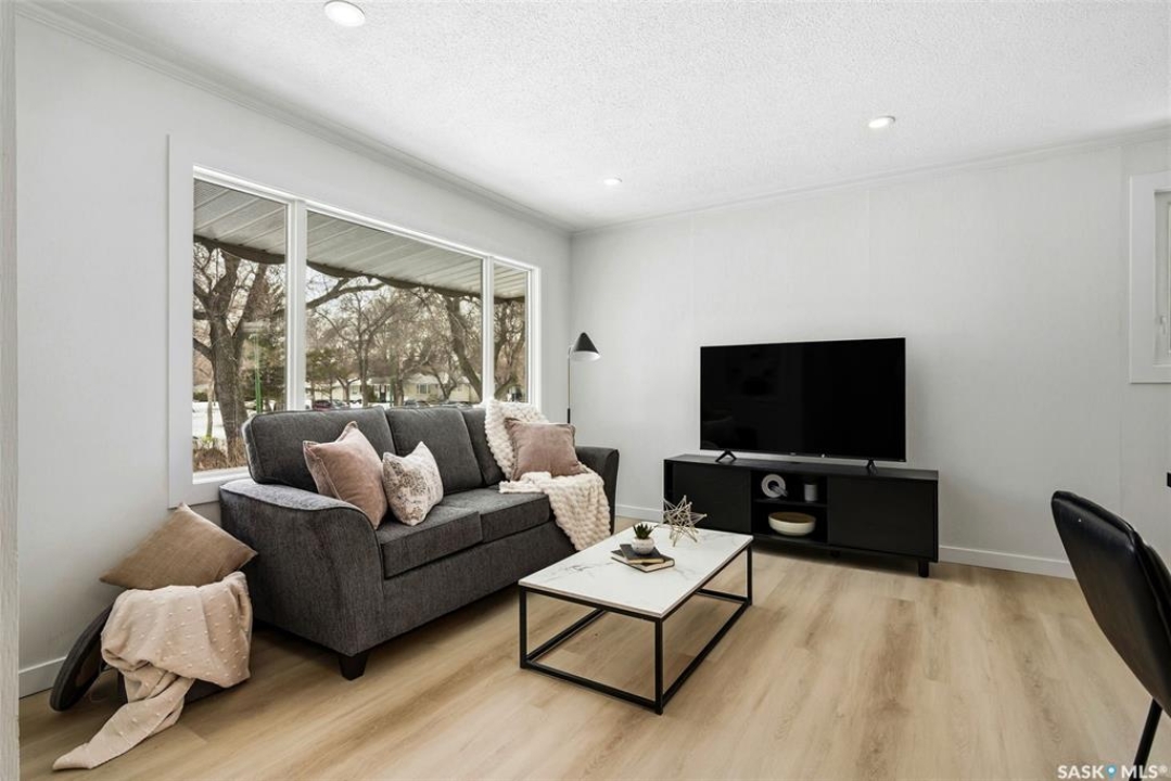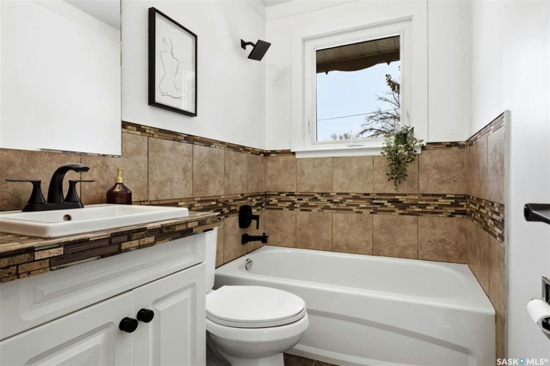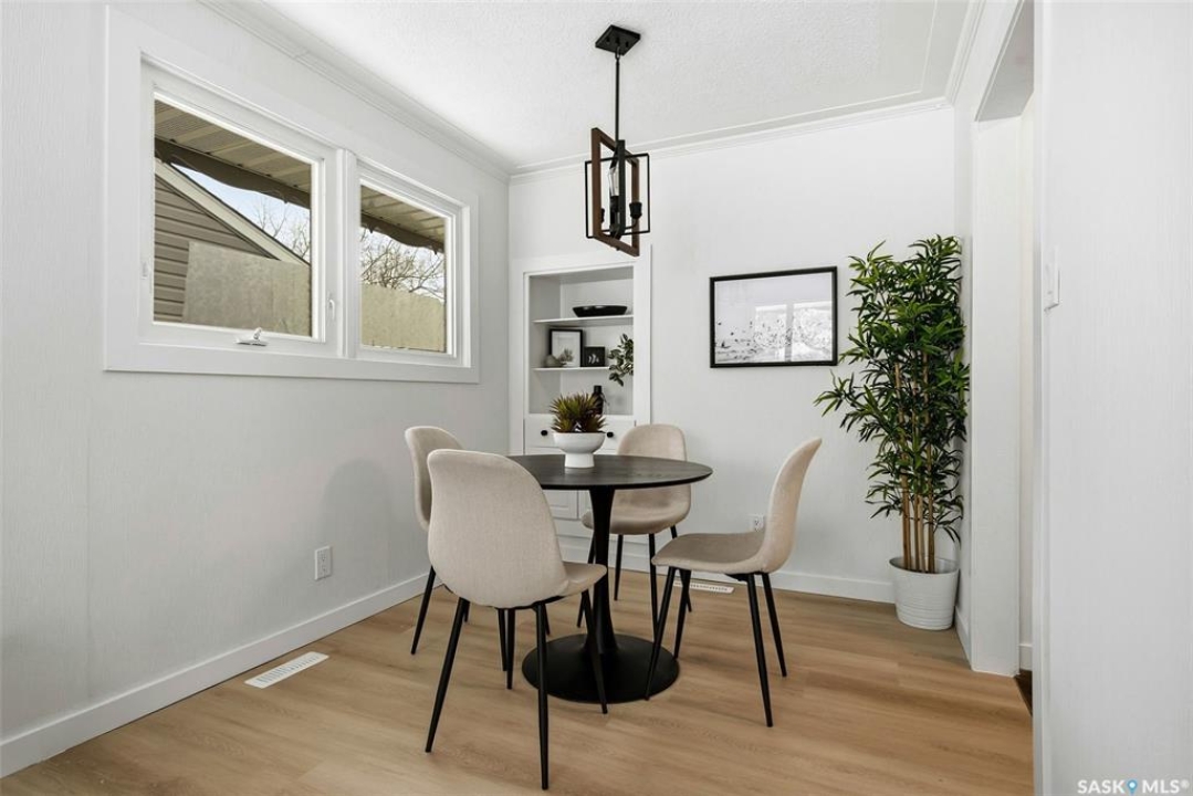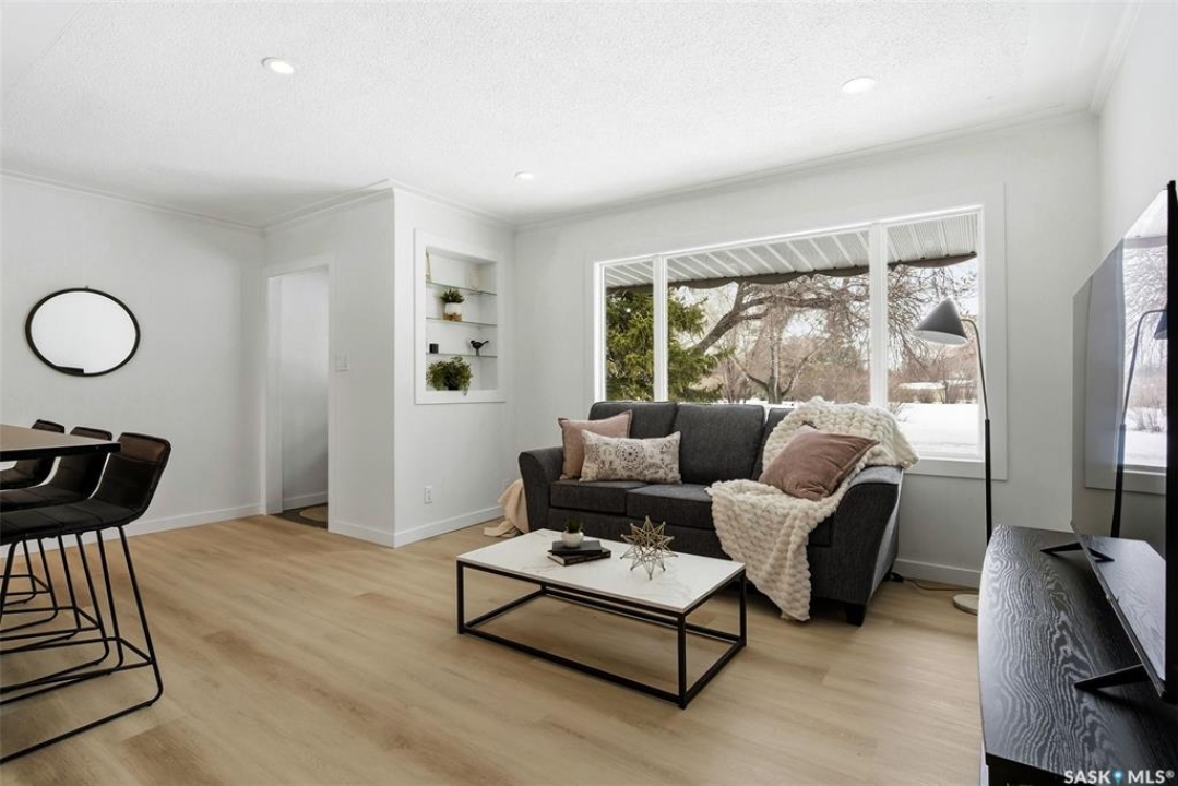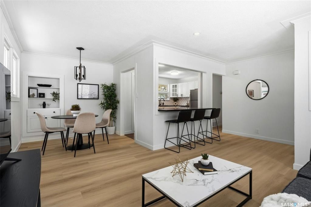 Welcome to this beautifully fully renovated bungalow located in the established and family-friendly Rosemont neighbourhood of Regina, ideally fronting onto green space and a park area for an open, private feel with no direct neighbours in front. Offering 960 sq. ft. on the main level, this move-in-ready home features a bright, functional layout with three well-sized bedrooms, a refreshed 4-piece bathroom, and durable vinyl plank flooring flowing throughout the main living areas and bedrooms. The updated kitchen is finished with tile flooring, modern cabinetry, stylish backsplash, and stainless steel appliances, and opens seamlessly to the dining and living spaces, making it perfect for everyday living and entertaining. The fully developed basement adds exceptional additional living space, including a spacious recreation room, an additional bedroom, and a 3-piece bathroom—ideal for guests, a home office, or growing families. Outside, enjoy a fully fenced yard with deck and patio areas, perfect for summer entertaining, along with a detached double garage providing convenient off-street parking and storage. With its extensive renovations, park-facing location, and close proximity to schools, parks, and amenities, this home is a fantastic opportunity in a mature, sought-after neighbourhood.