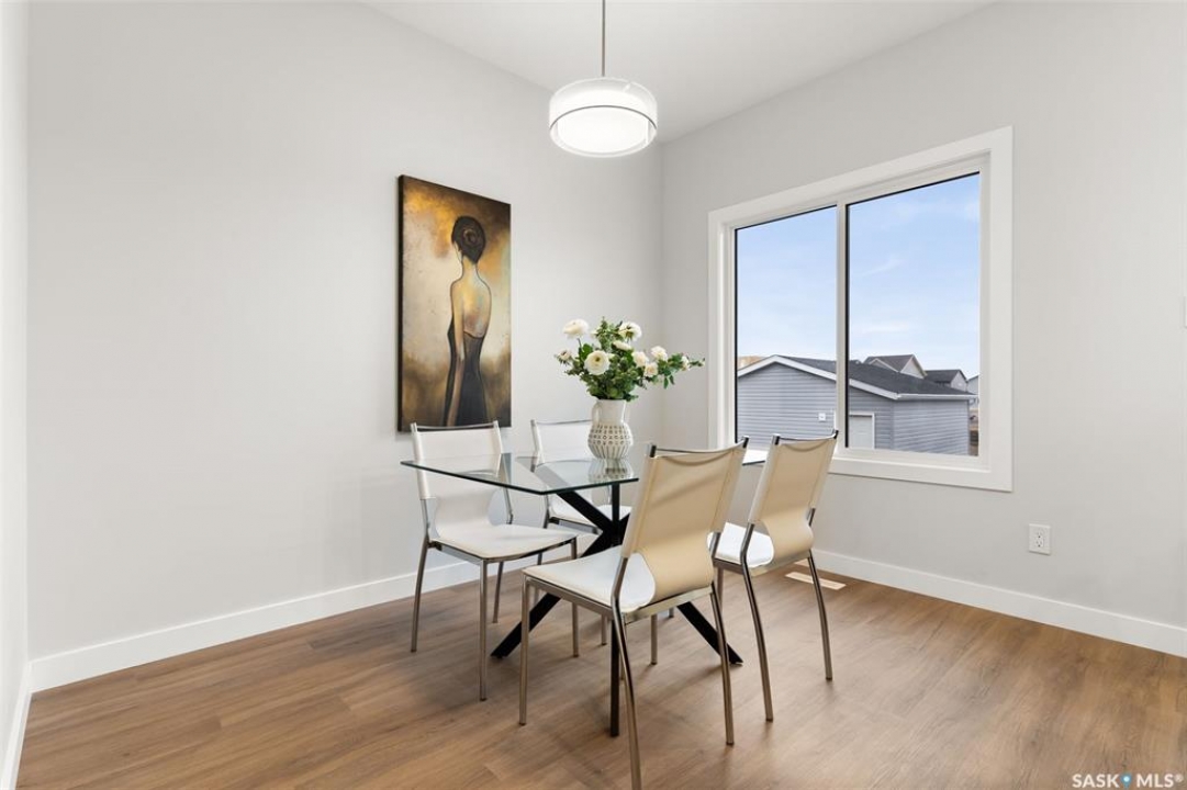 Welcome to “The Ashwood” by premier builder Ehrenburg Homes, located in the desirable Eastbrook community. This thoughtfully designed two-storey home offers 1,404 sq. ft. of above-grade living space and showcases quality craftsmanship with modern finishes throughout. The main floor features an open-concept layout ideal for entertaining and everyday living, finished with vinyl plank flooring. A welcoming living room greets you with a stylish electric fireplace as a focal point. The contemporary kitchen is designed for functionality and flow, featuring a central island with eating bar, ample cabinetry, and a seamless connection to the dining area—perfect for family gatherings. A convenient 2-piece bathroom completes the main level. Upstairs, the primary bedroom includes a walk-in closet and a private 4-piece ensuite. Two additional well-sized bedrooms are complemented by a full 4-piece bathroom, while a comfortable bonus room provides flexible space for a family lounge, playroom, or home office. The second-floor laundry adds everyday convenience for busy households. The basement is unfinished, offering excellent potential for future development such as a recreation room, gym, or additional bedroom. The home is built with wood-frame construction, a forced-air natural gas furnace, and a gas water heater, ensuring efficiency and comfort. Outside, enjoy a double detached garage, underground sprinkler system, and a manageable lot—perfect for low-maintenance living. The home is currently under construction, with possession to be determined upon completion. Backed by the Saskatchewan New Home Warranty and Ehrenburg Homes' reputation for quality, The Ashwood delivers a perfect blend of style, function, and peace of mind. PST & GST are included in the purchase price.