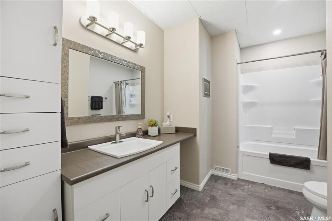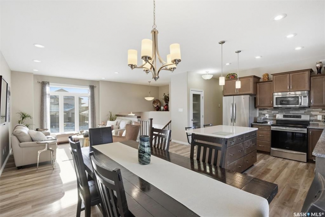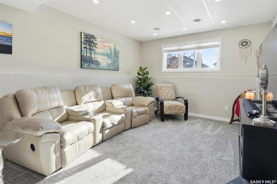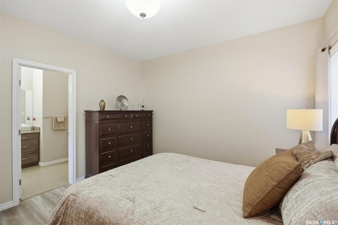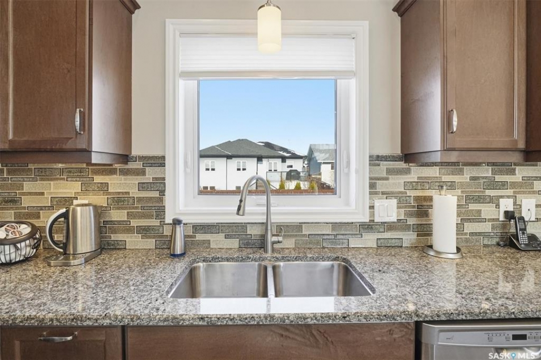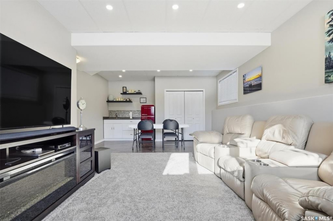 Welcome to this beautifully maintained, 1169sqft fully developed bungalow located at 404 Lyle Crescent in Warman. This home was custom-built by Warman homes with high-quality features like Stucco and stone exterior. Offering 4 bedrooms and 3 bathrooms, with 2 bedrooms up and 2 down, this home is perfect for downsizing or families looking for a move-in-ready property with thoughtful upgrades throughout. The spacious primary bedroom includes a 4-piece ensuite with an oversized soaker tub, creating a relaxing private retreat. The kitchen is both stylish and functional, featuring quartz countertops, a tile backsplash, and a pantry. The main floor boasts new luxury vinyl plank and tile flooring (2023), while the basement was completed with new carpet in 2023. Downstairs, you'll find a cozy family room, games area with wet bar, two additional bedrooms, a full bathroom, and a laundry/utility room—ideal for entertaining or everyday living. The exterior is designed for low maintenance and enjoyment, with a fully zeroscaped yard featuring artificial turf front and back. The backyard is an entertainer's dream with a Trex deck (2024), patio with gazebo (2024), natural gas BBQ hookup, and a stunning fountain with an illuminated waterfall feature. There is also massive RV parking off the alley, perfect for trailers or toys. The 26' x 22' detached garage is fully insulated, boarded, and heated with a 220V electric heater, and includes a subpanel, making it ideal for hobbyists or year-round use. Additional features include central air conditioning, central vacuum, Govee permanent exterior lighting with pot lights, and excellent curb appeal. This home shows exceptionally well and is ideally located close to schools, parks, and all amenities. A fantastic opportunity to own a beautifully upgraded bungalow in one of Warman's most desirable neighbourhoods.