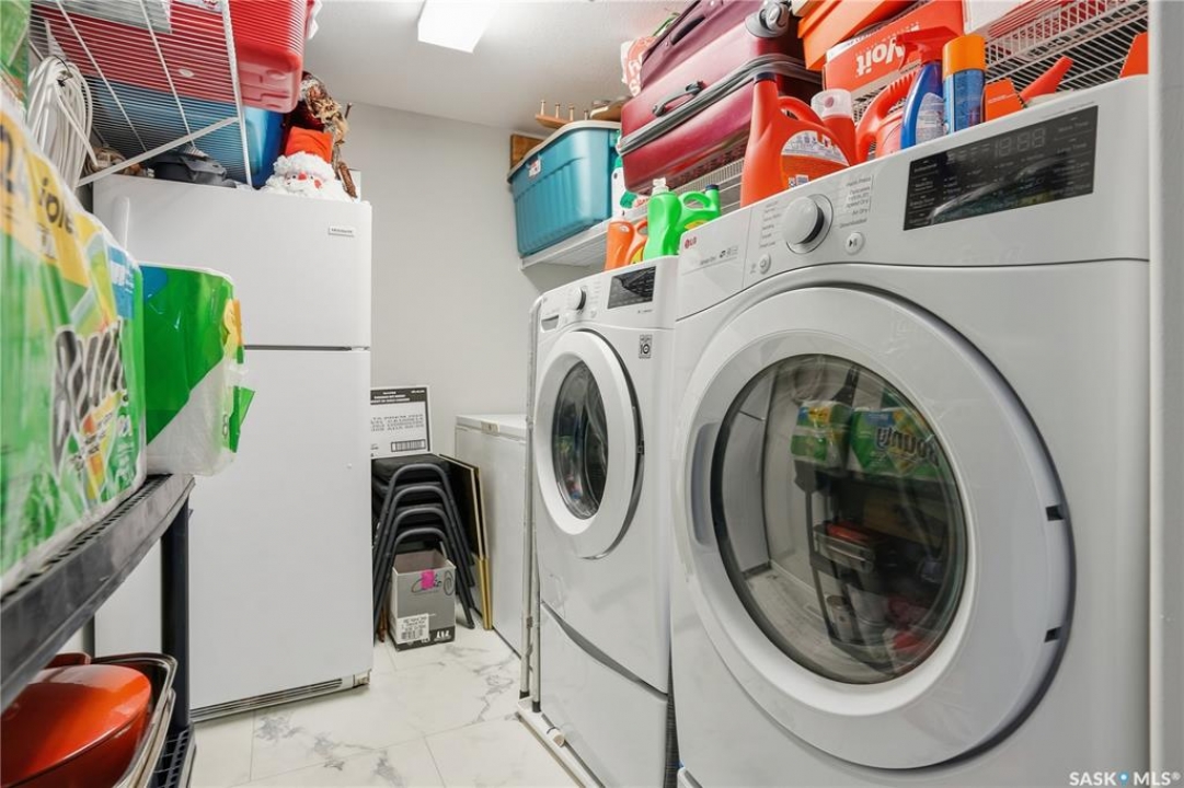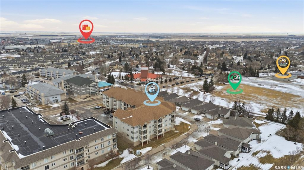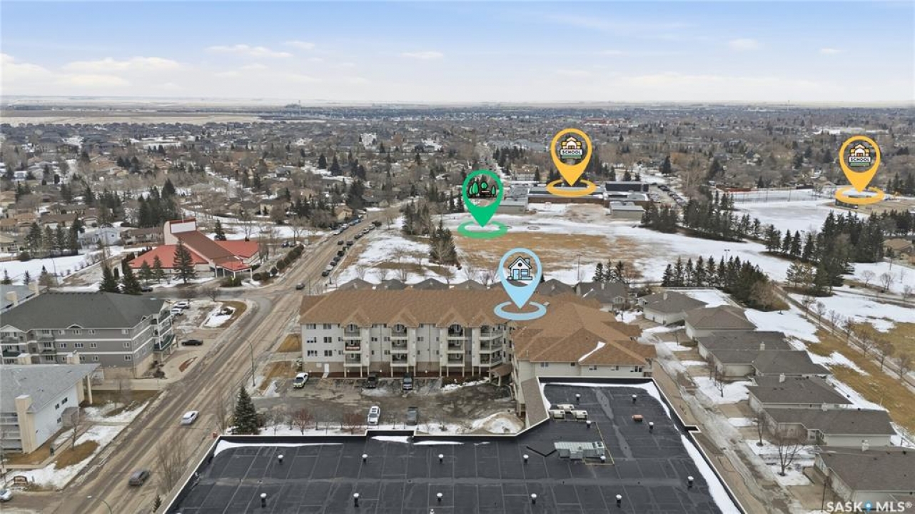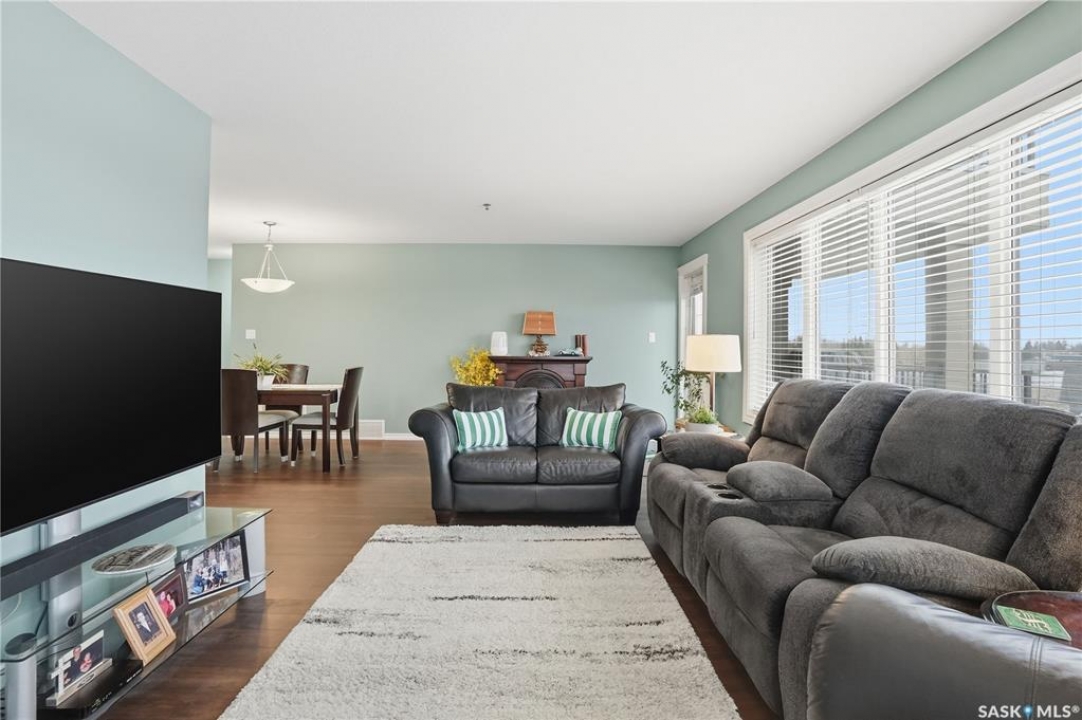Schools, recreation, leisure and services surround Meadow Park Place in Regina's east end. If you're looking for a secure, well-cared-for home that offers a lifestyle of ease, this 3rd-floor condo is a must-see. It's open-concept, move-in ready, and designed for comfortable living. The modern kitchen is a standout, featuring plenty of counter and cupboard space, updated appliances, a built-in pantry, and a large sit-up island. The living and dining areas flow seamlessly with modern flooring, leading out to a covered, southeast facing balcony through a garden door. In the primary bedroom, you'll find a convenient walk-through closet leading to a 3-piece ensuite with a sit-down shower. The unit also includes a second good-sized bedroom, a 4-piece main bathroom, and a laundry/storage room. You'll love the convenience of your own parking stall in the underground parking garage. The building offers a common room with a kitchen, pool table, and shuffleboard that is rentable for gatherings. Condo Fees include common area insurance, maintenance, garbage, lawn care, snow removal, water, sewer, and reserve fund. This might be the right home for you, call your agent today to view.