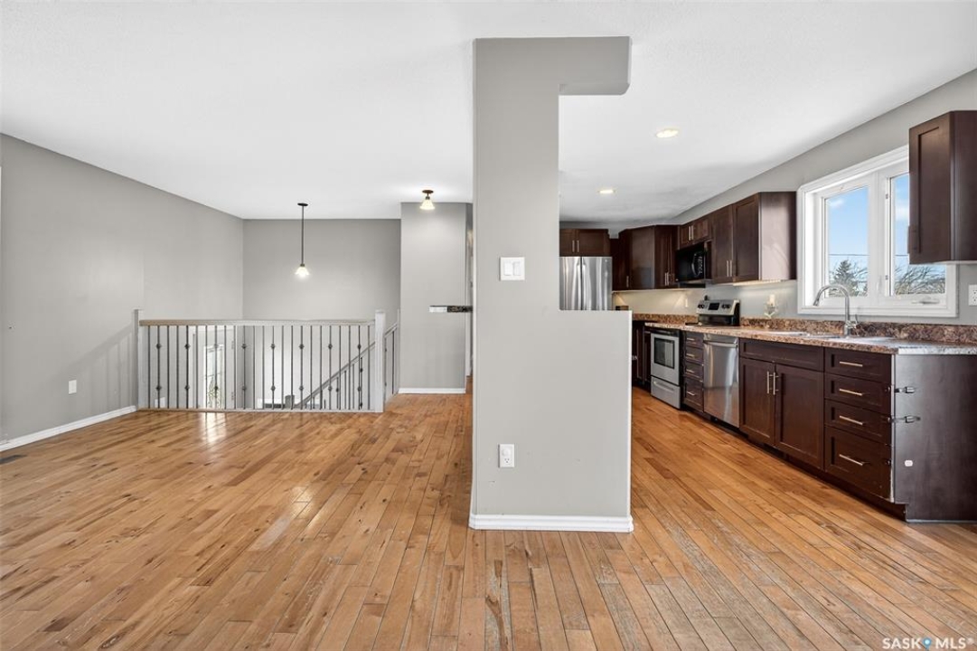 You won't want to miss this one! This 5 bed, 2 bath bi-level showcases more than 1,000 sq.ft. of living space complete with a walk-out basement suite. This home shows well as you walk-up and you are sure to love the location where you back a park! Heading inside you find we are greeted with a spacious open concept living area boasting hardwood running throughout the main floor! The large living room has a large west facing window providing lots of natural light! The kitchen is sure to be a hit - lots of counter and cabinets, a newer stainless steal appliance package and an island with an eat-up breakfast bar. Next we have the dining space with patio doors leading to your huge deck - very relaxing and nice views of the green space behind you! Down the hall we find a spacious 4 piece bath along with 3 bedrooms on the main floor! Heading to our walk-out basement we find our second suite. There is a spacious living room and open concept kitchen and dining area. Down the hall we find 2 bedrooms, a second 4 piece bath and a good size laundry / mudroom by the walk-out door. There is also a utility and a storage space. Heading outside - the large backyard is fully fenced with lots of space for a future garage. Out front we have 2 off-street parking spots. Lots of updates to the home over the years. Rare to find an 80's bi-level with a walk-out basement and a suite down there. Reach out today to book your showing!