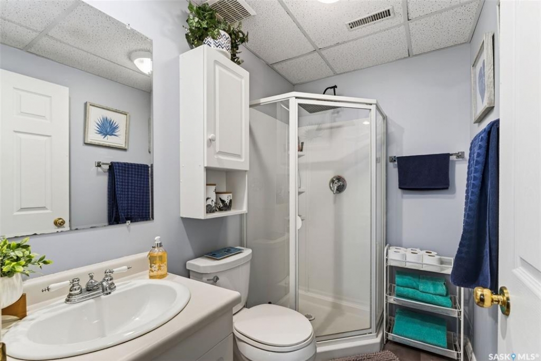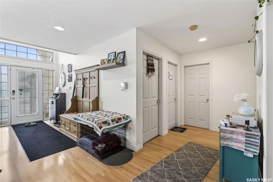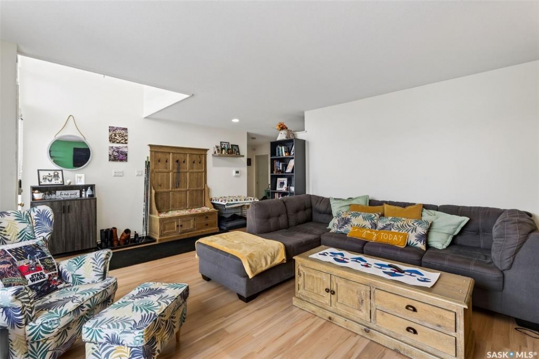Exceptional family home in Crescent Acres offering 4 bedrooms, 3 bathrooms and a fantastic location. With charming curb appeal highlighted by a grand arched front entry and mature landscaping, this home makes a lasting first impression from the moment you arrive. Step inside to a spacious foyer that opens into a bright south facing living room filled with natural light and anchored by a cozy gas fireplace. The eat-in kitchen is both stylish and functional and features a large island with a butcher block counter top, crisp white cabinetry, white tile backsplash, stainless steel appliances and patio doors leading directly to the back deck. A generous primary bedroom complete with a walk-in closet and 3 piece ensuite, two additional spacious bedrooms and convenient main floor laundry complete the main floor. The fully developed lower level expands your living space with a large family room, an additional bedroom, a versatile den ideal for a home office or gym, a 3 piece bathroom and a utility room with a substantial crawl space providing excellent storage options. Additional features include central air conditioning, central vacuum and a double attached insulated garage. The fully fenced and beautifully landscaped yard features mature trees and shrubs, along with a large deck finished with metal railings and tempered glass. Ideally located across the street from the Rotary Trail, Crescent Acres Park, St. Francis School and Vickers School, this exceptional home offers space, functionality and a prime location. Schedule a viewing today!