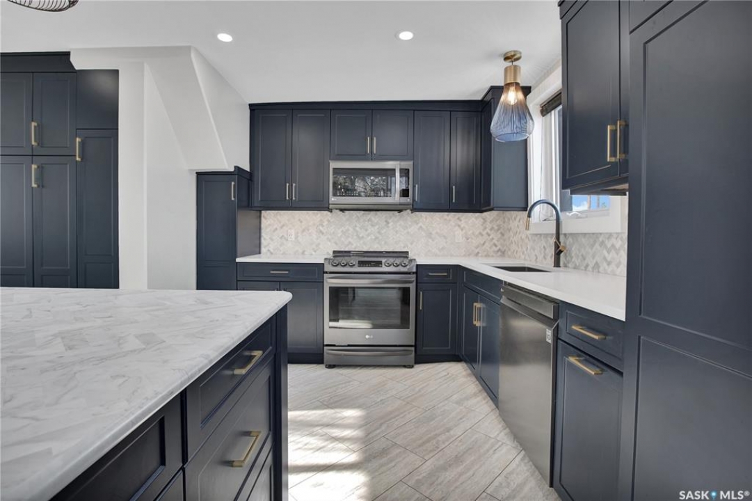 Wow — check out this extensively renovated, move-in-ready home in Hudson Bay Park. There is truly nothing left to do here but move in & enjoy. Set on a corner lot backing a park & dog park, this property offers privacy, functionality, & a level of finish that's hard to come by. Your huge dream kitchen awaits, designed for both everyday living & entertaining. It features designer cabinetry w full ceiling-height uppers, tile backsplash, built-in pantry, high-end appliances, & tons of counter space. The eat-up island flows into a spacious dining or lounging area, ideal for hosting family & friends. This approx. 900 sq. ft. 1.5-storey, 2 bedroom, 1 bath home is incredibly unique & tastefully updated throughout. Upstairs is a loft-style primary bedroom filled w natural light. The main floor also offers a second bedroom w large closet & custom built-in shelving. The renovated 4-pce bath features a granite countertop & 12x24 tile tub surround. Downstairs you'll find a great family or theatre space plus a dedicated laundry area. The home is set up for summer entertaining w patio doors leading to a large composite side deck & pergola. Man-cavers & mechanics will love the 24x24 heated garage w 10' ceilings. An additional heated flex building adds even more versatility — ideal as a home office, studio, or nail/salon space w vaulted ceilings & its own private deck. Extensive upgrades over the last 3-8 years include: 2” foam acrylic stucco, air conditioning, shingles, new garage, full kitchen reno w Superior Cabinets, updated electrical, insulation, drywall, plumbing & flooring on main level, renovated bathroom w Superior Cabinets, vinyl fencing, new driveway, heated flex building, composite deck, & newer doors & windows (excluding front bay window). You won't find many homes offering this level of quality & extensive renovations at this price point. Located close to parks, schools, & everyday amenities, this is a fantastic turn-key opportunity in an established neighbourhood.
