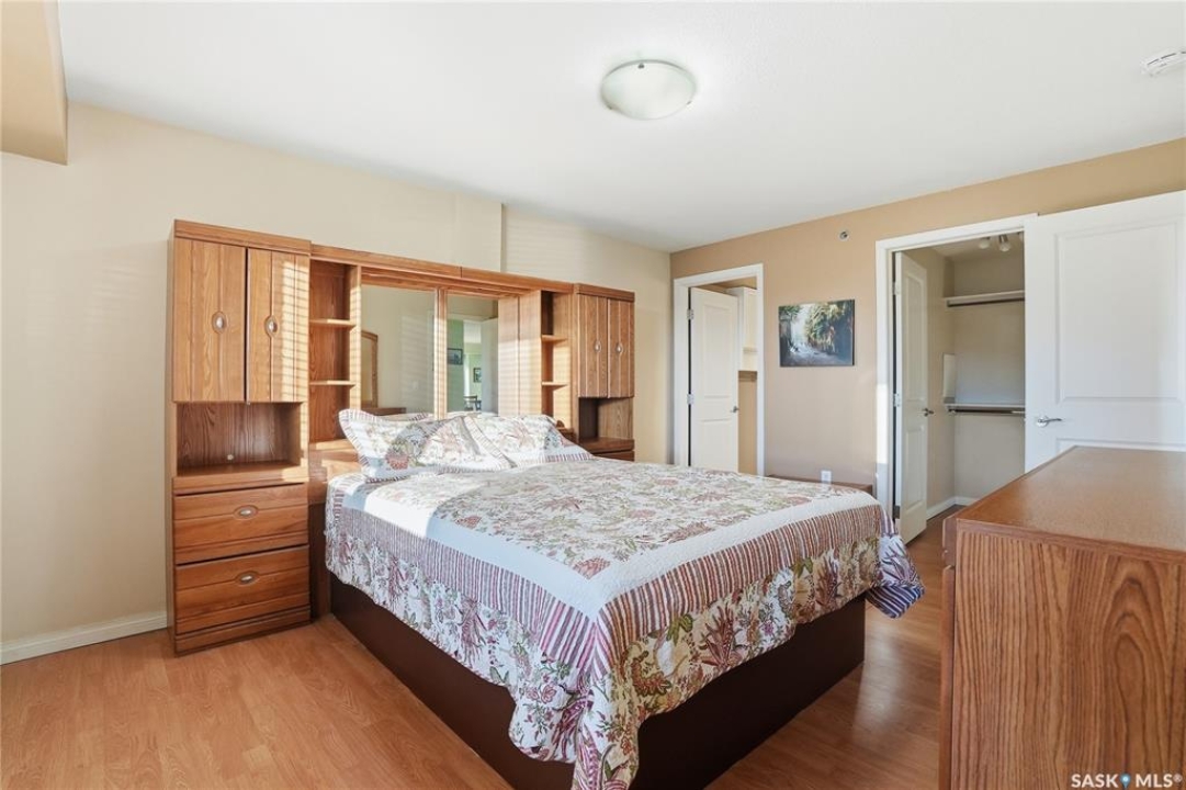 Welcome to #501 – 2221 Adelaide Street East, located in the sought-after Fremai Tower, ideally situated across from Market Mall in the vibrant Nutana Suburban Centre. This bright and spacious southwest-facing corner unit offers 2 bedrooms and 2 bathrooms with an open-concept layout designed for comfortable living and entertaining. The large kitchen features an island and flows seamlessly into the dining and living areas, creating an inviting and functional space filled with natural light. The primary bedroom includes a generous walk-in closet, while the second bedroom offers flexibility for guests, an office, or additional living space. You'll also appreciate the convenience of in-suite laundry and extra storage just off the kitchen. This unit includes one underground parking stall and a separate storage room, adding even more practicality and value. Enjoy comfort, convenience, and beautiful southwest views in this well-appointed condo. This is a Presentation of Offers listing — contact your REALTOR � today for additional details or to book a private showing.